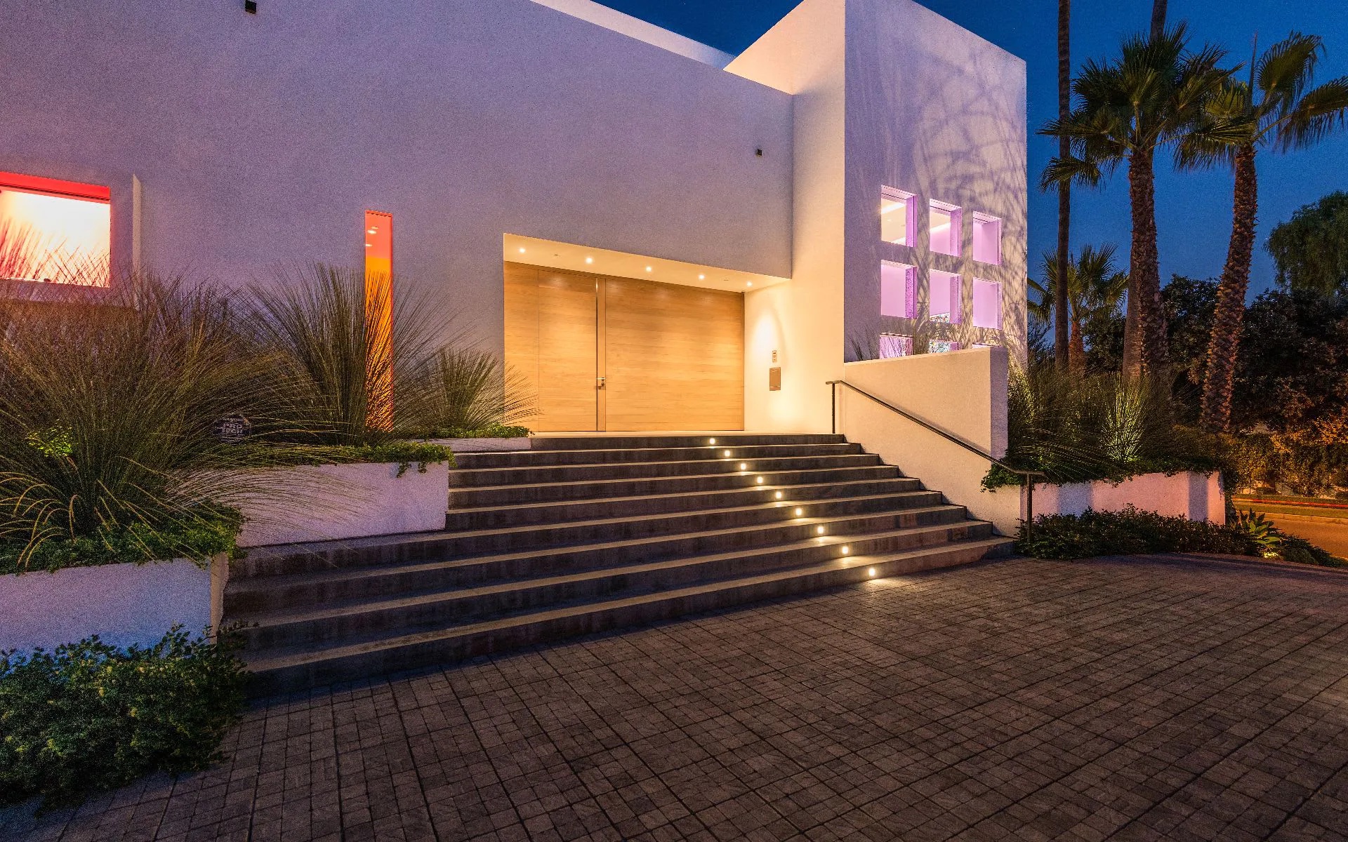 This Dynamic Modern Estate is one of the last single-family homes designed by famed architect Ricardo Legorreta. Situated on a large over 22,000 sq.ft. corner lot in the prime Beverly Hills Flats, this extraordinary home features Legorreta's signature vibrant colors, voluminous rooms, & clean lines with walls of glass throughout. Enter through the impressive front door to the dramatic foyer with soaring ceiling & reflection pool. Spacious open living room & dining area. State-of-the-art chef's kitchen with adjoining family room. The tremendous master suite is on the main level & features a private patio with spa & exceptional bath. The main level also offers a large office & the upper floor is complete with a gym & guest bedroom suite. Lower level theater, workshop, 1300 bottle wine cellar, & 4-car garage. The backyard offers a resort-style setting & great space for entertaining with outdoor covered living room w/fireplace & apx. 66 ft. long pool. Detached guest suite w/kitchenette.