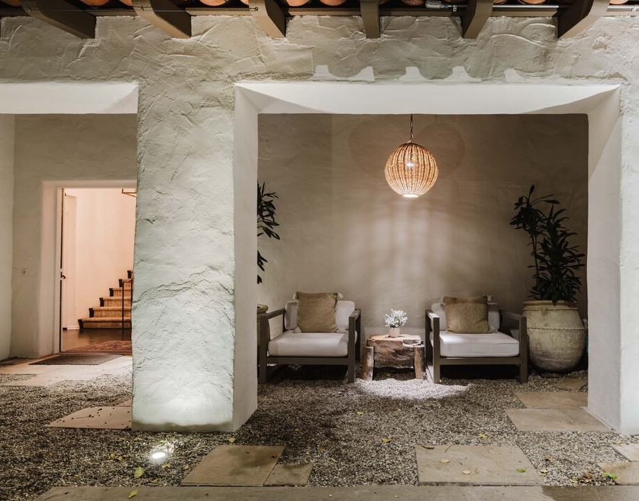Continually chosen by various celebrity owners, this chic courtyard Spanish is an original and coveted Charles Toberman (1928) discreetly positioned on La Presa Drive in the tony enclave known as Outpost Estates. While the major views are the initial draw, the impeccably designed and thoughtfully redesigned home offers 3 bedrooms & 3.5 bathrooms w/ private courtyards and epic vistas of all the Los Angeles landmarks; Griffith Observatory, Capital Records building, & DTLA. The Primary suite framed by a collection of French windows has been created from a former 2 bed/2bath configuration - establishing a lavish environment & walk-in dressing room, rarely experienced in true 1920's Andalusian architecture. Eat-in kitchen, Sub Zero and La Cornue appliances, stunning oversized white apron sink, designer concrete tiles and a custom French range. The Living Room is lined with French doors which open to a secluded courtyard and romantic vine-covered dining pavilion. Third bedroom suite functions as separate guest space or has also been used in combination as a recording studio. Original large two car garage. Private and gated without view from public, embodying the elegance and exclusivity for which Outpost Estates is famously renowned.