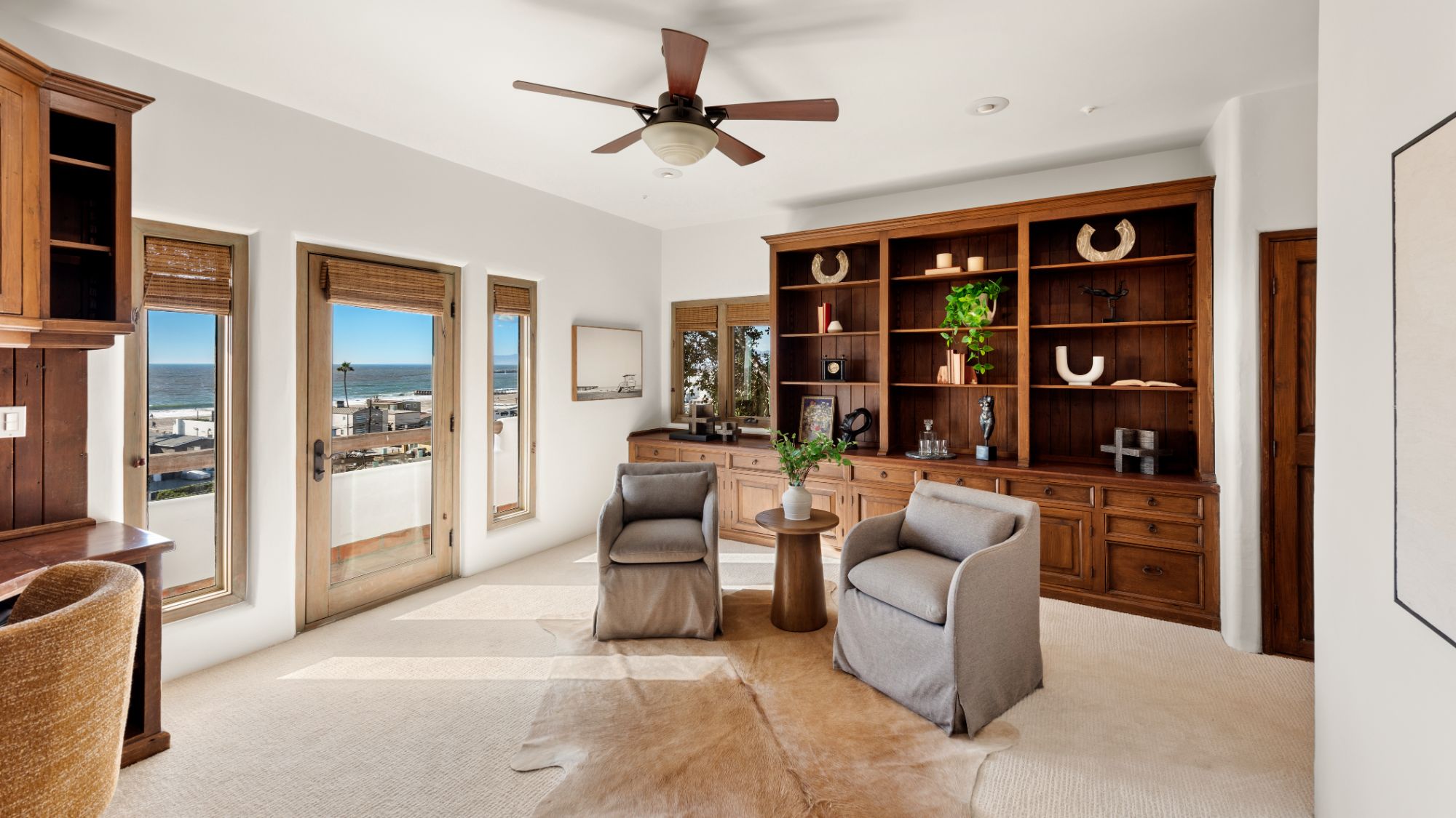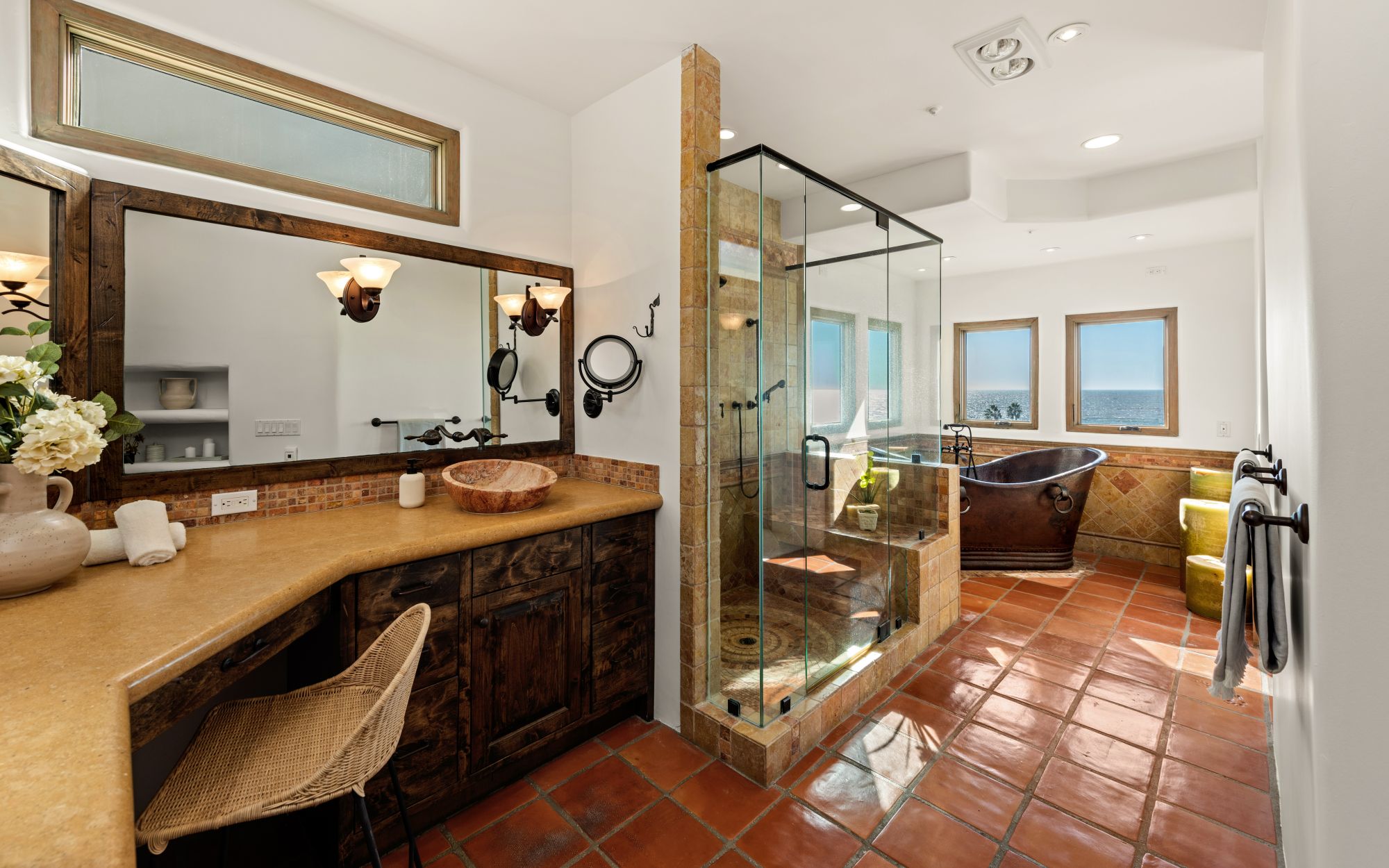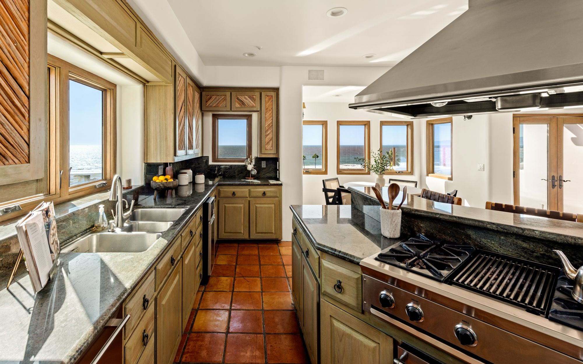 Experience the allure of Santorini on the California coast with this Spanish Mediterranean-inspired oasis in Playa Del Rey. Perched atop the Playa Del Rey Palisades, just a block from the beach, this architectural masterpiece designed by world-renowned Aceituna architects offers breathtaking 180-degree ocean views of the Southern California coastline. Set on the second-largest lot on Vista del Mar Lane, featuring six spacious bedrooms, each with ensuite bathrooms and generous closets, a private office with custom built-ins, a gym, and a 1,200-bottle wine cellar. Entertain in style in the expansive den with a built-in entertainment center, and an open gourmet kitchen with a large island and breath taking views. Enjoy ocean breezes and stunning sunsets from any of the five balconies, each offering panoramic views, or from your private master suite, which includes a hand-hammered copper jacuzzi tub, Saltillo tile floors, a grand walk-in closet, and its own sweeping views of the sea out to Catalina island. Separate entrances on every level allow upmost privacy, this property balances luxury and functionality to perfection. Whether you're savoring the ambiance of a getaway or hosting friends in true California style, this one-of-a-kind home is a pristine retreat by the ocean and one of Playa Del Rey's finest residences.