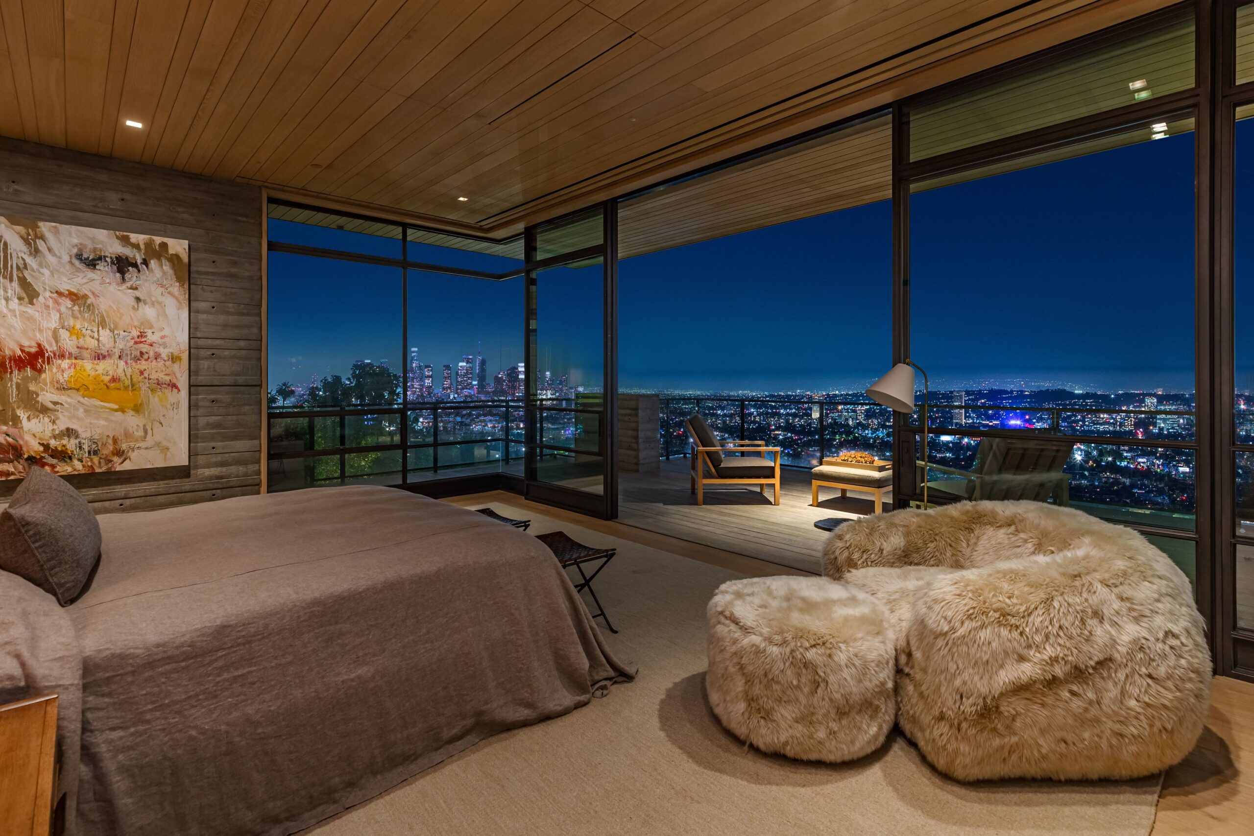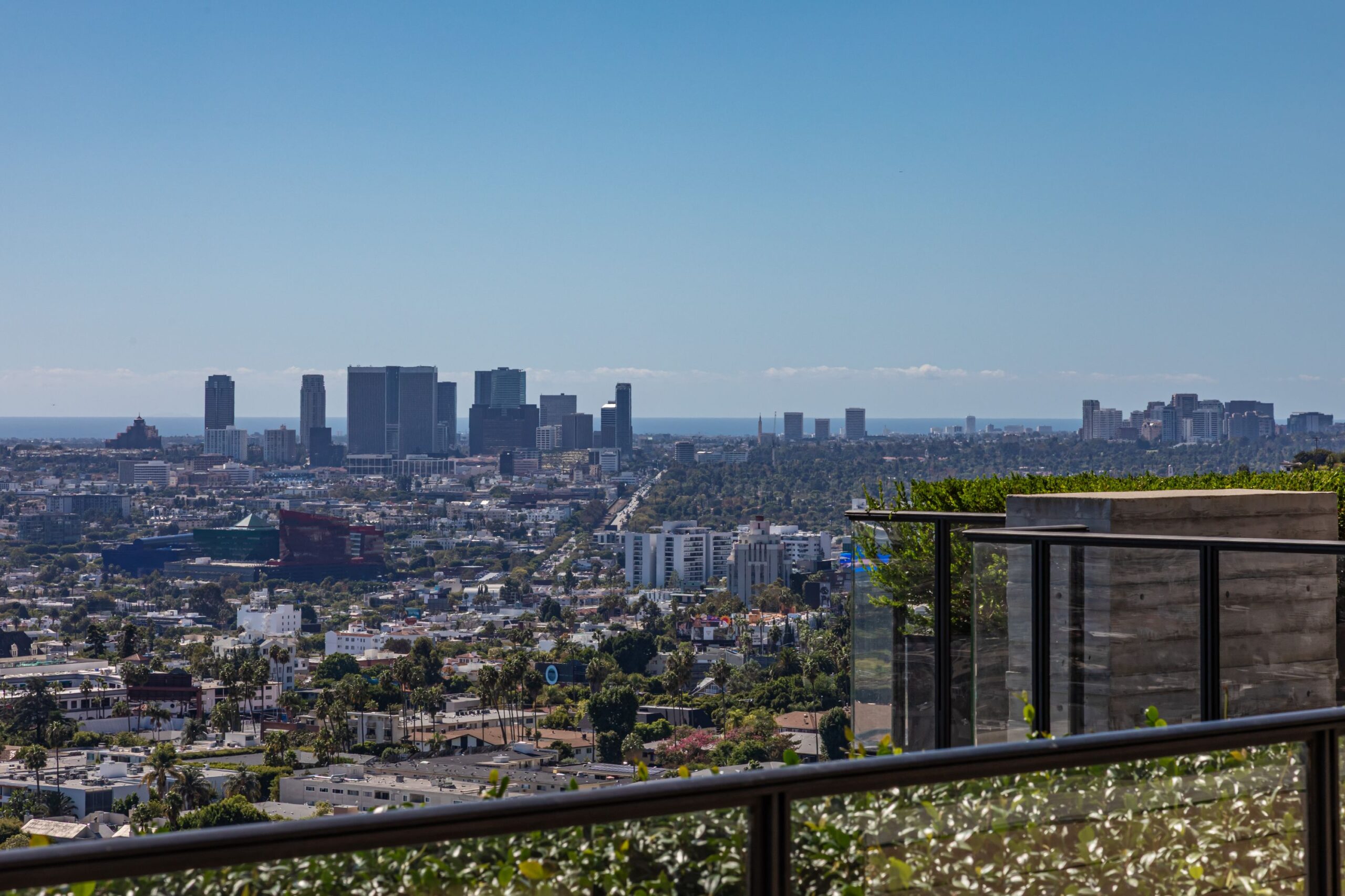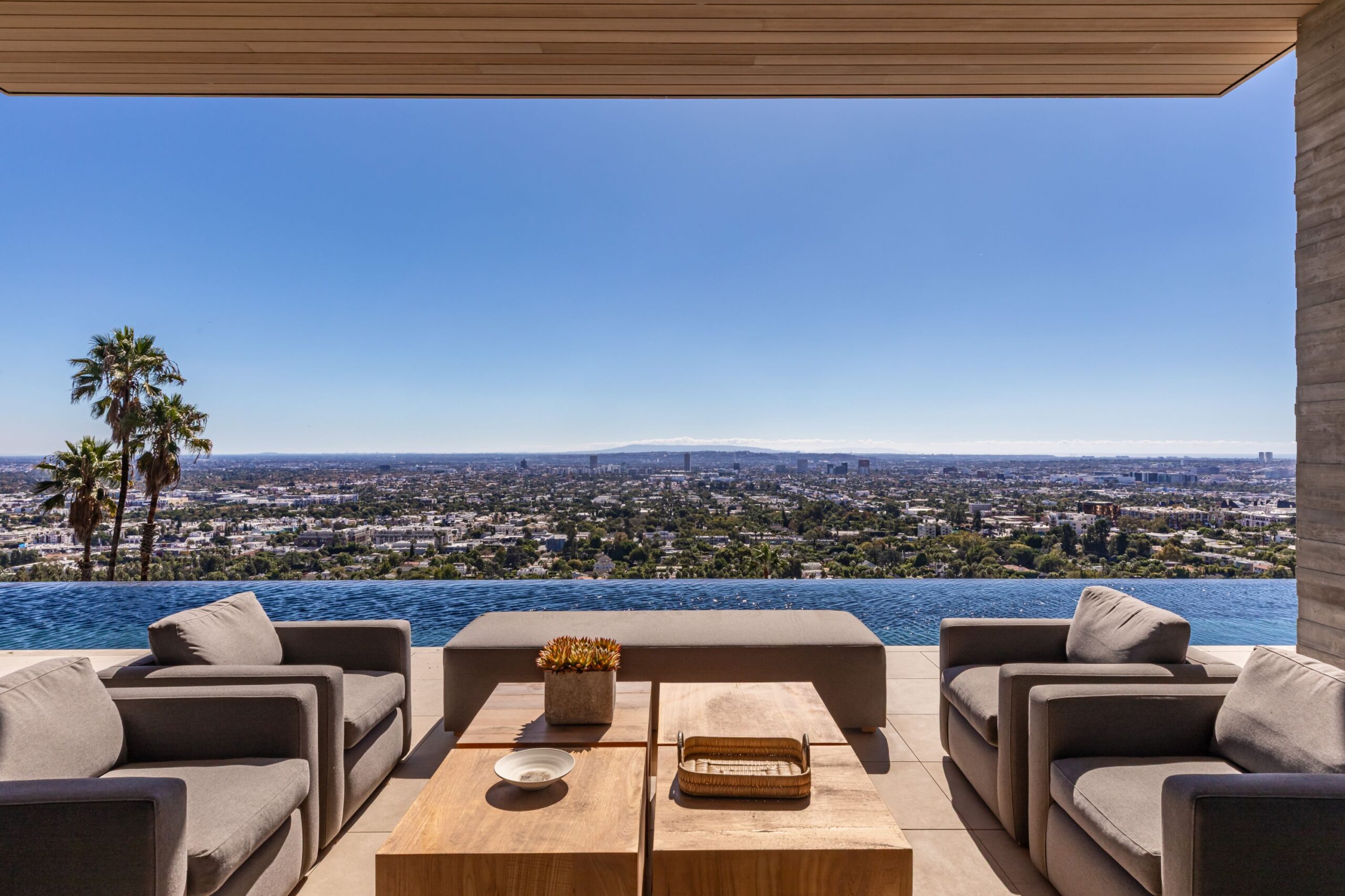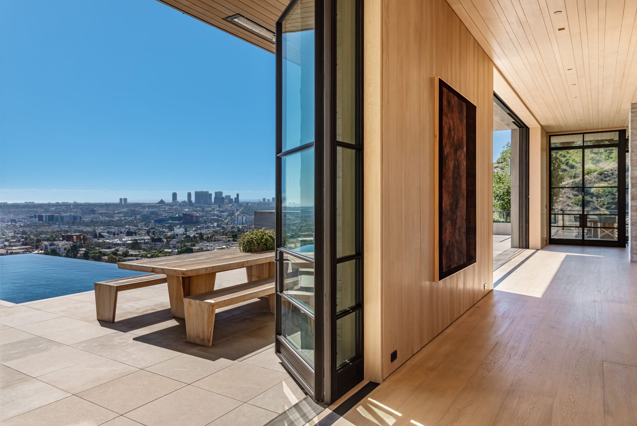 This property is set on Los Angeles's most iconic promontory, formerly owned by Howard Hughes, that extends over one acre with no neighbors on either side and 270 views of the entire city. Set at the 50-yard line of legendary hot spots Chateau Marmont, Tower Bar, and the Hollywood Bowl, the energy of the city can be seen and felt from the estate’s peaceful privacy. Additionally, the property borders state land so no building can be constructed behind it, and it has private access to hiking in the famous Runyon Canyon.