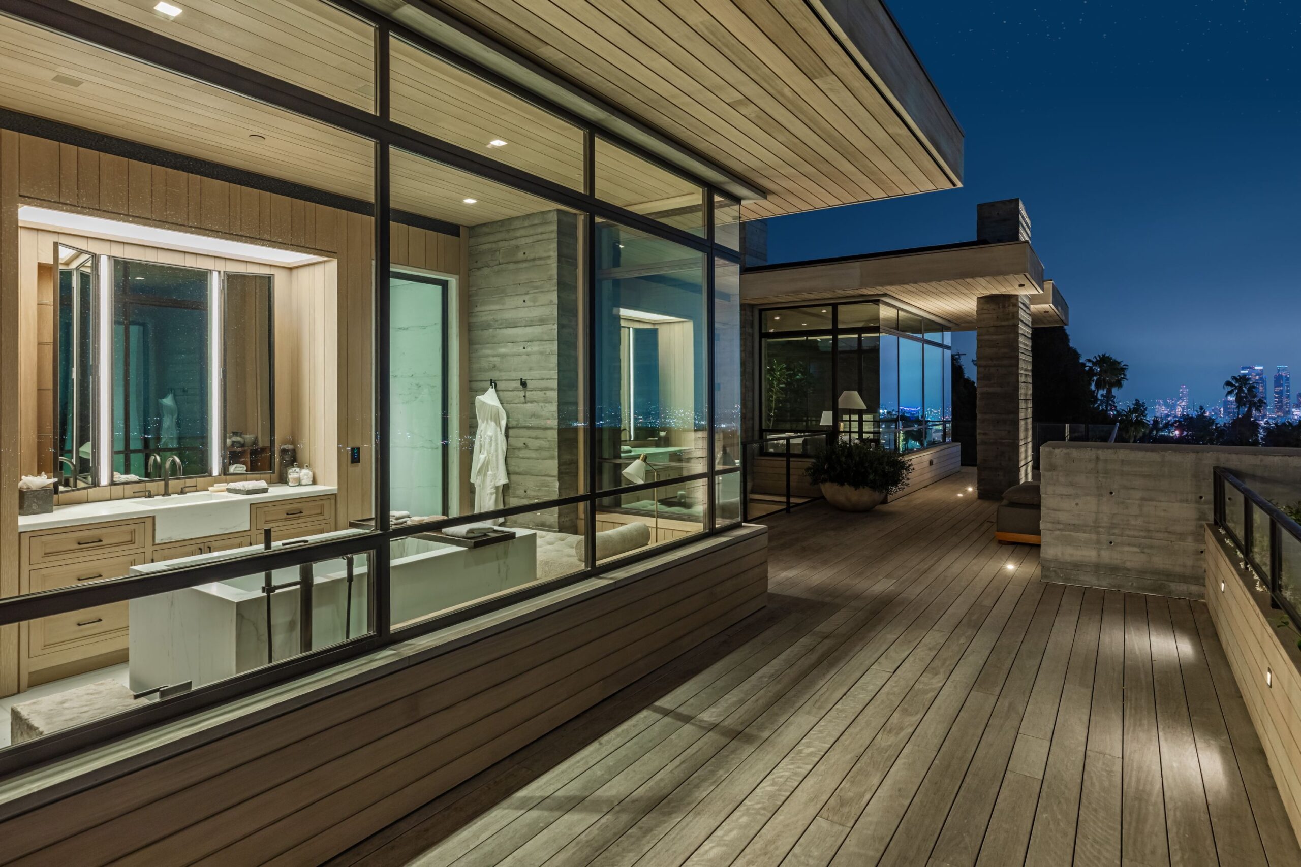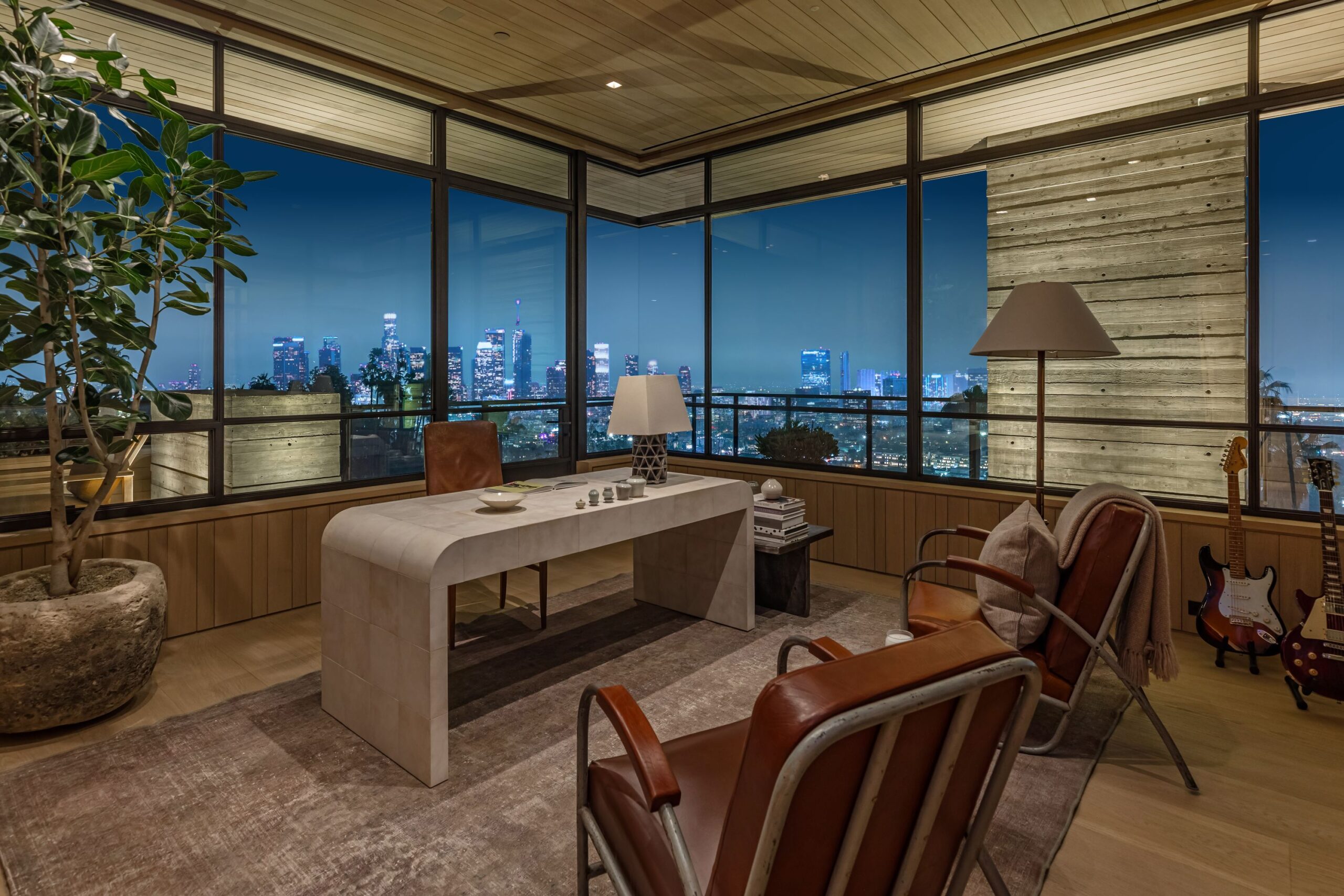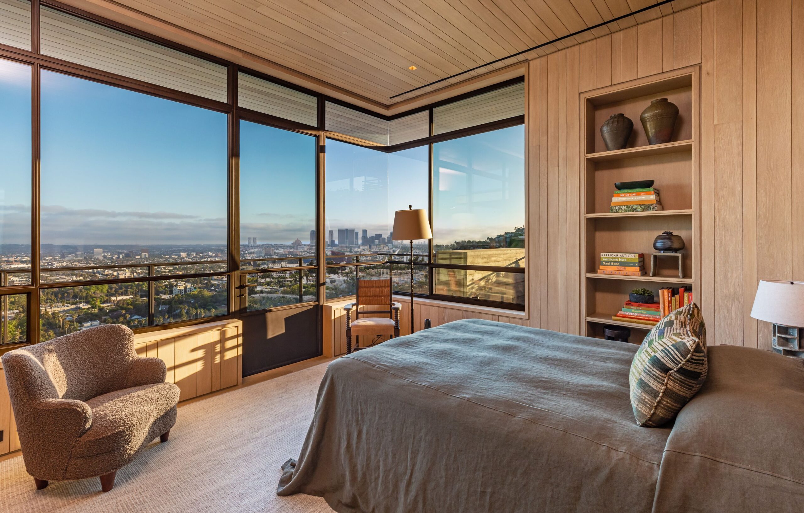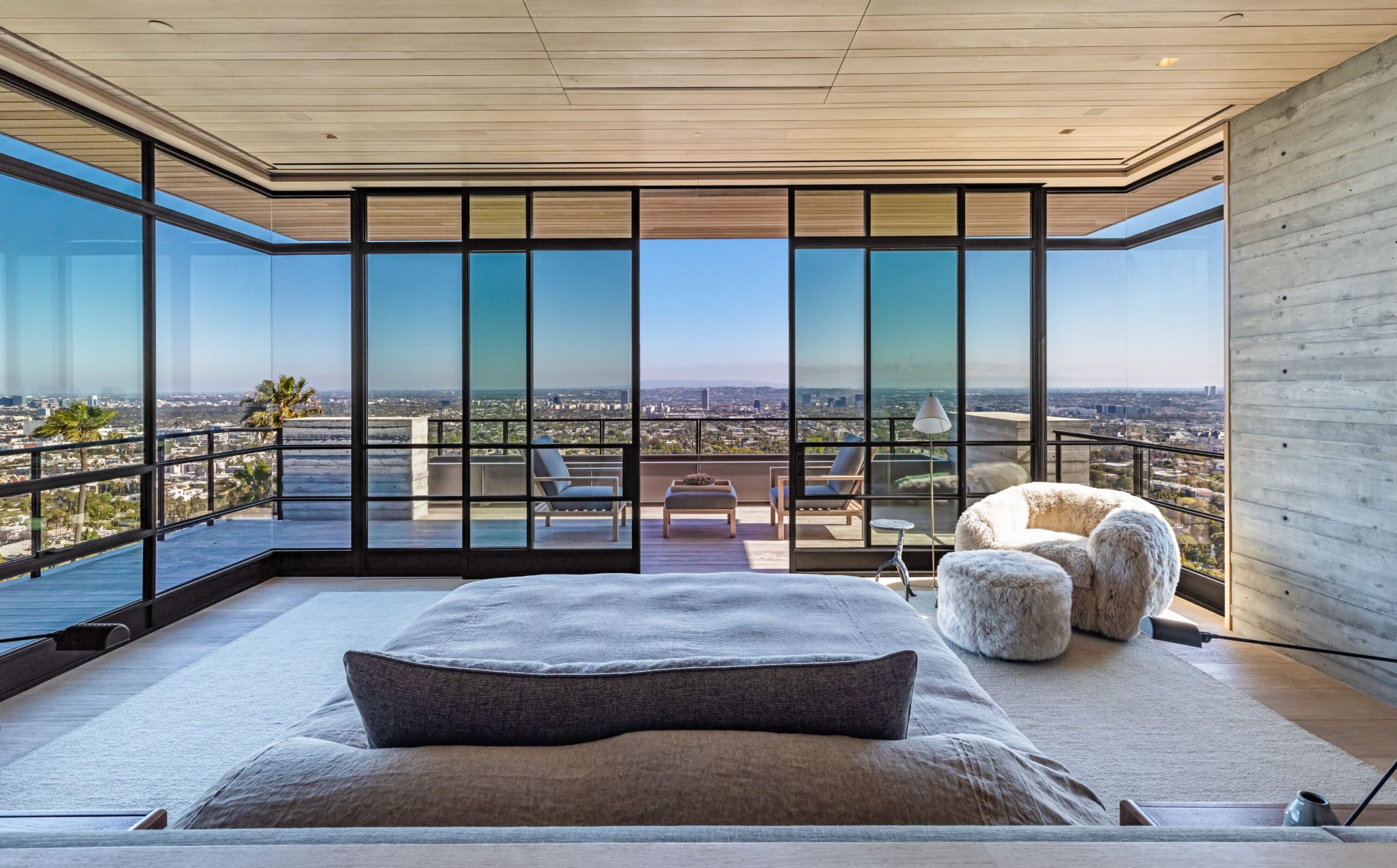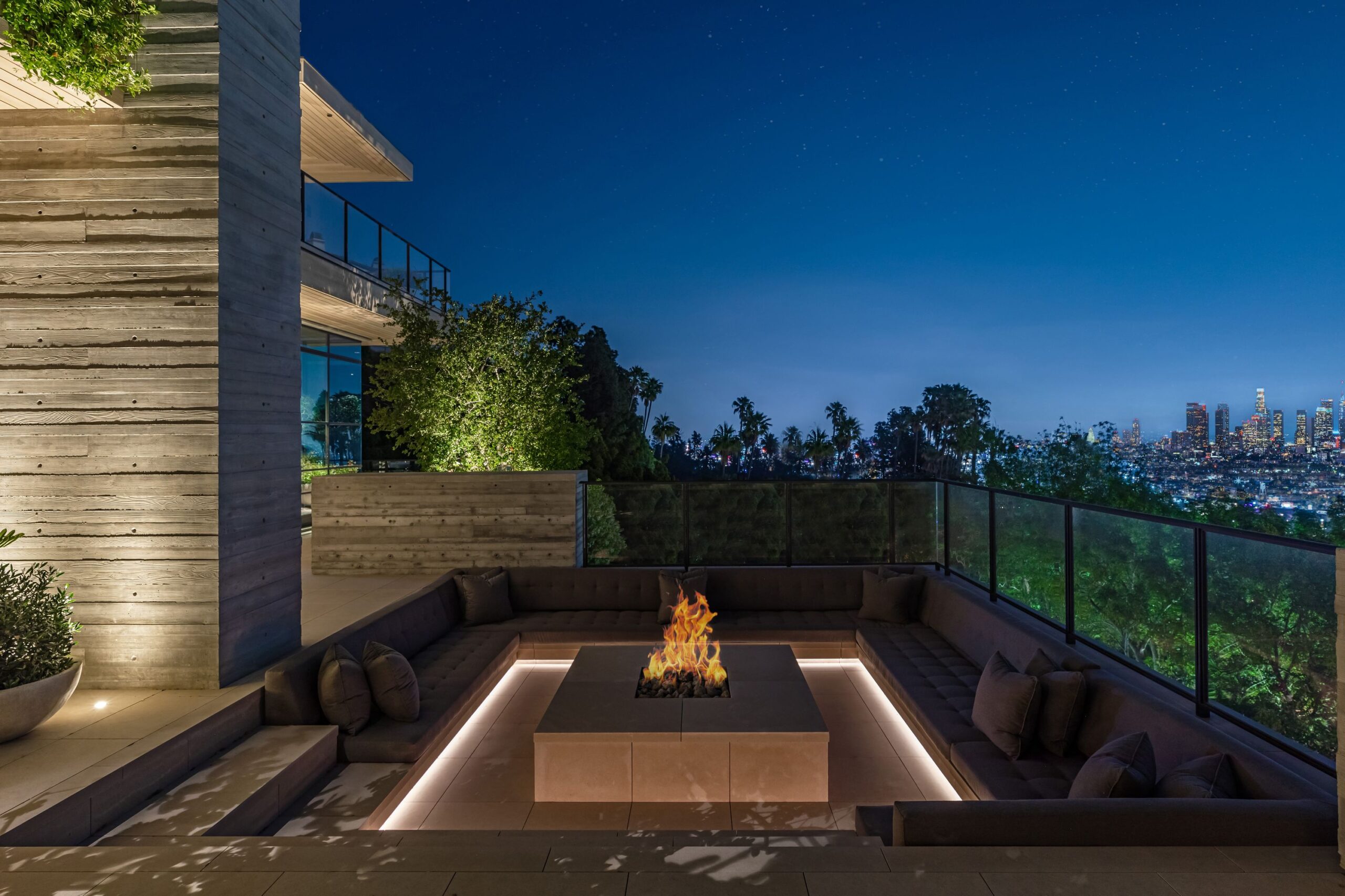 This property is set on Los Angeles's most iconic promontory, formerly owned by Howard Hughes, that extends over one acre with no neighbors on either side and 270 views of the entire city. Set at the 50-yard line of legendary hot spots Chateau Marmont, Tower Bar, and the Hollywood Bowl, the energy of the city can be seen and felt from the estate’s peaceful privacy. Additionally, the property borders state land so no building can be constructed behind it, and it has private access to hiking in the famous Runyon Canyon.