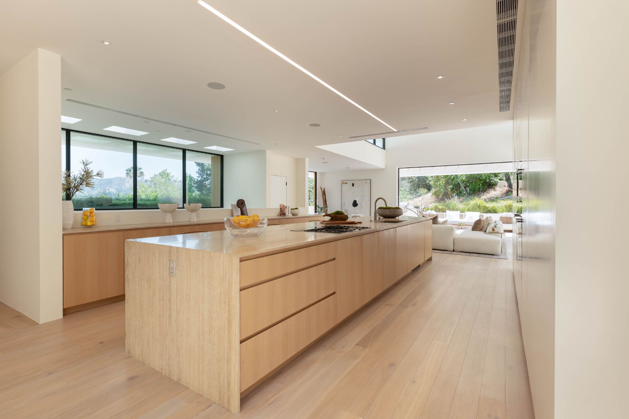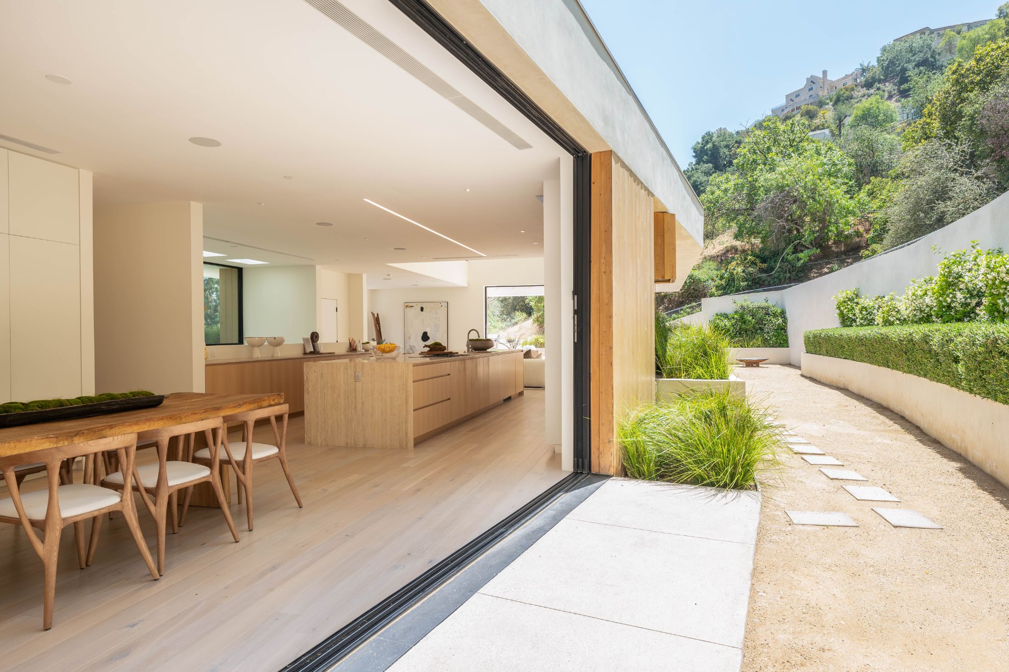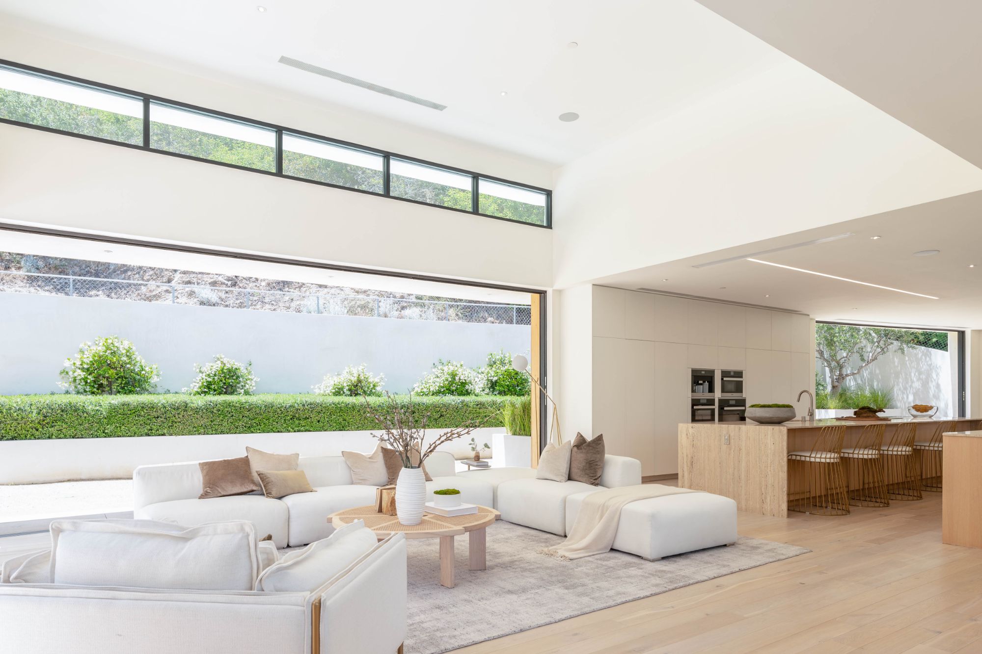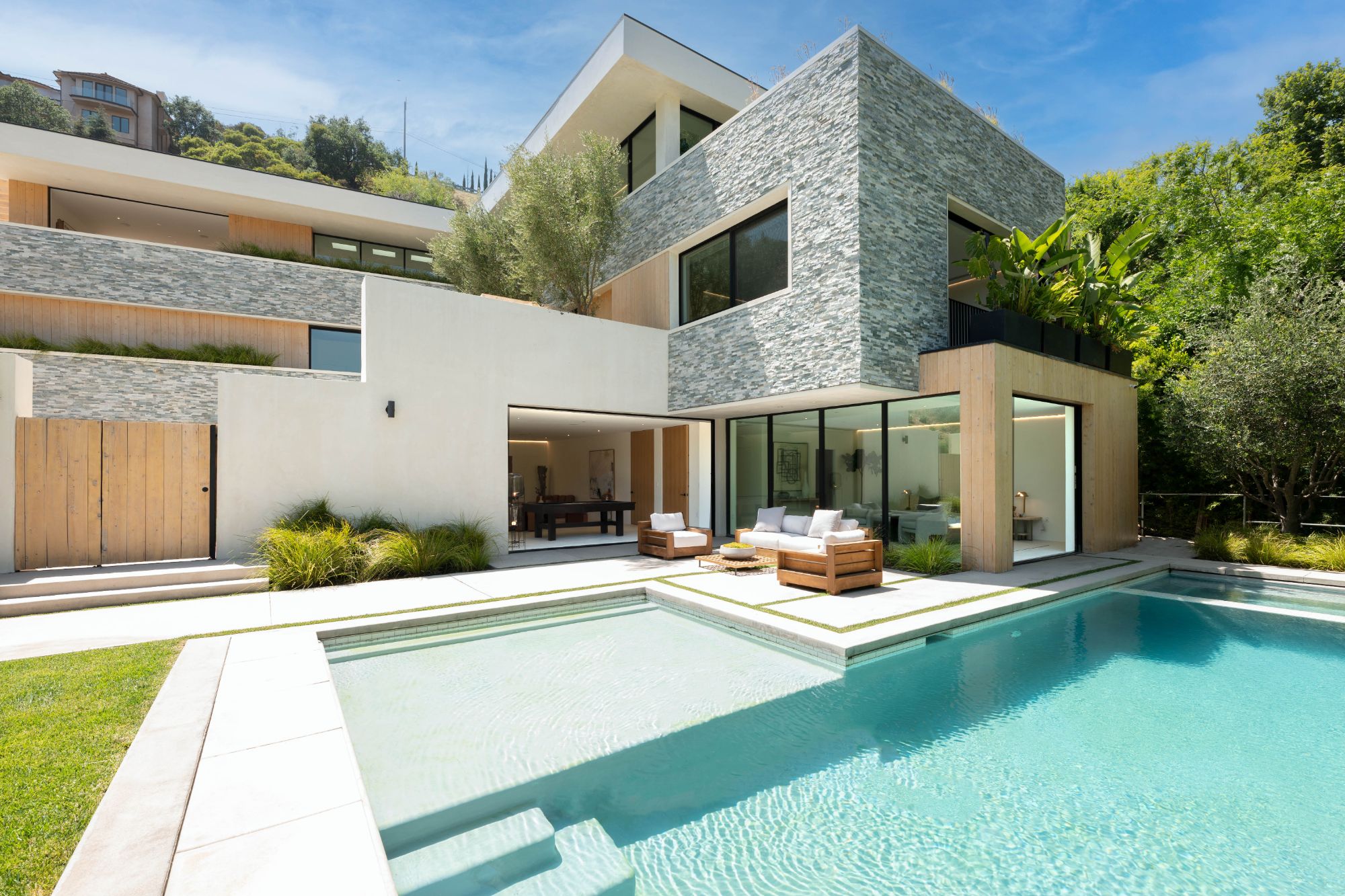 Right in the heart of the magical Nichols Canyon, this modern masterpiece offers everything one could dream of. From the sauna to the sprawling suites, every facet was hand-curated for the ultimate in Hollywood Hills living. Featuring a luxurious private driveway and motor court, enter through the grand entryway to meticulously designed interiors with striking modern lines and graceful warm touches. An elegant indoor-outdoor living room, complete with both formal and al fresco dining spaces, lies just off the sleek gourmet kitchen, finished with a sumptuous stone counter and bar top. Each suite offers the lap of luxury, with graciously appointed bathrooms and closets. The primary suite is an exercise in comfort, from the zen bathroom to the en suite office, look out over your lush gardens and private pool to the serene green top canyon views. The Hollywood Dream is no longer a fantasy, come and experience what you've always desired.