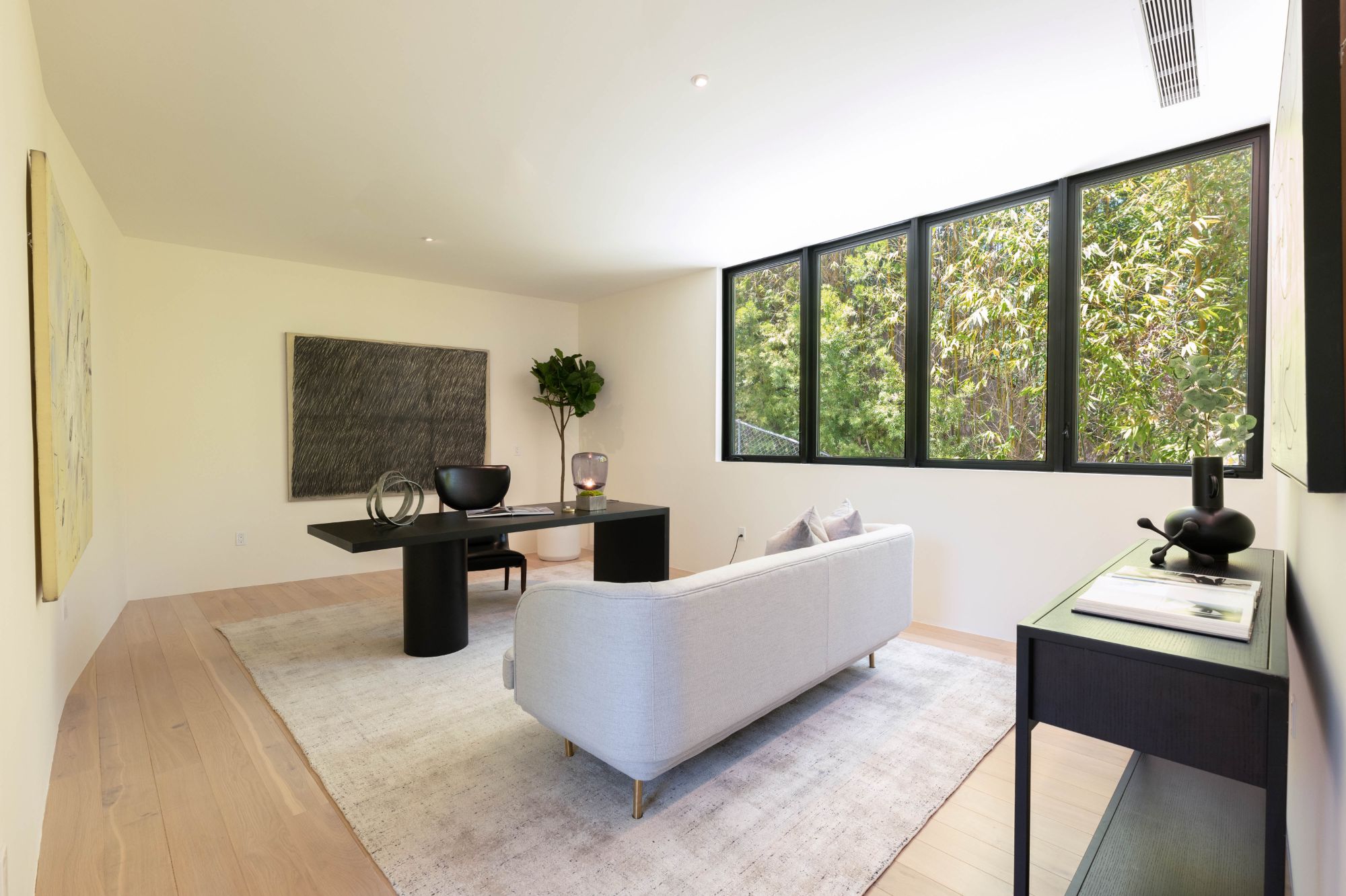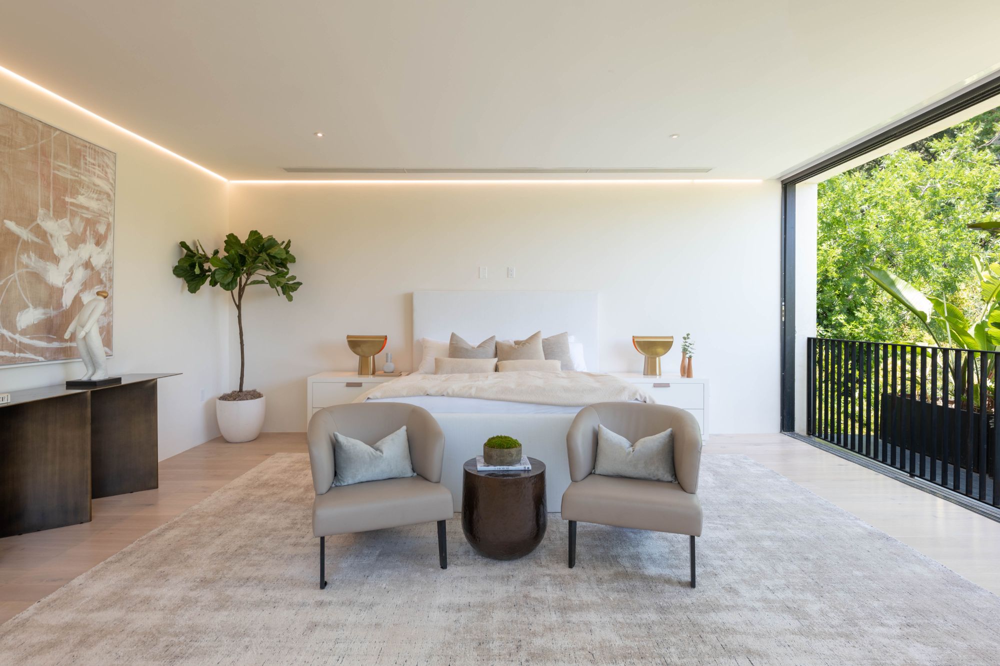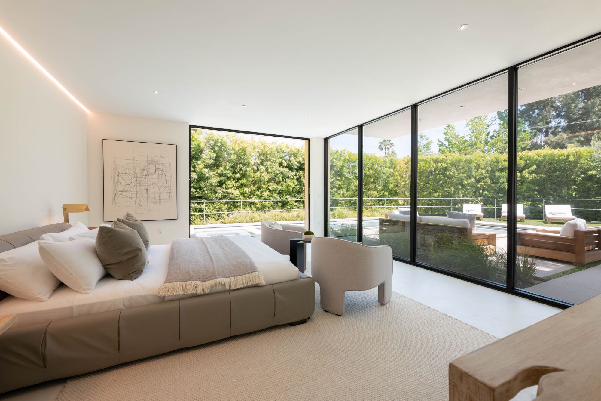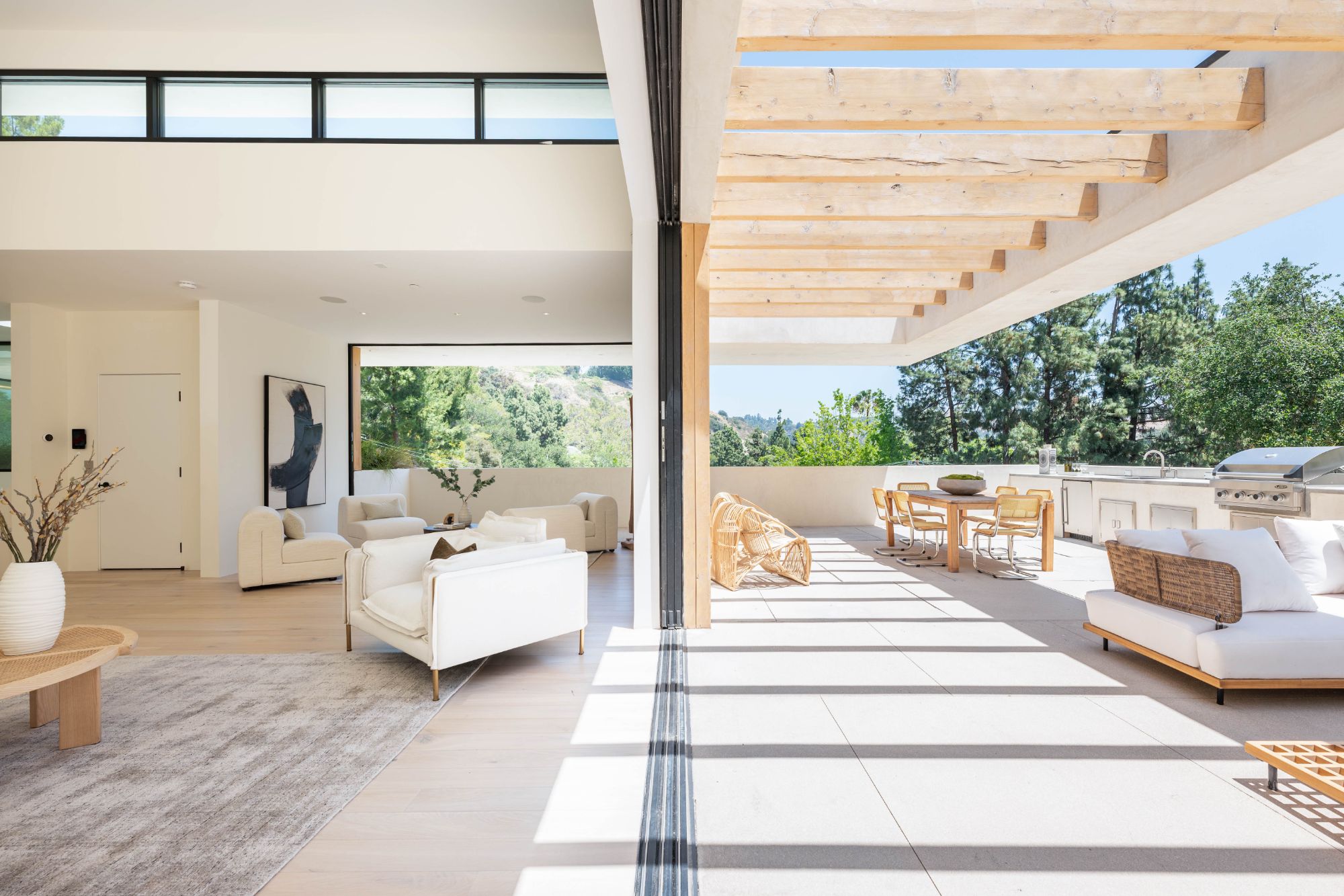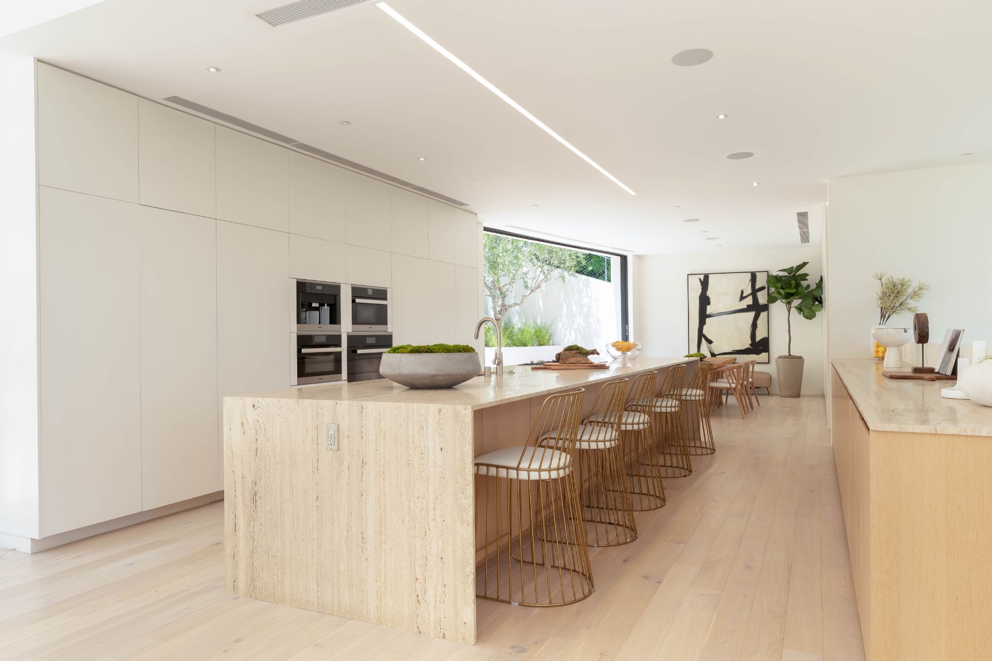 Right in the heart of the magical Nichols Canyon, this modern masterpiece offers everything one could dream of. From the sauna to the sprawling suites, every facet was hand-curated for the ultimate in Hollywood Hills living. Featuring a luxurious private driveway and motor court, enter through the grand entryway to meticulously designed interiors with striking modern lines and graceful warm touches. An elegant indoor-outdoor living room, complete with both formal and al fresco dining spaces, lies just off the sleek gourmet kitchen, finished with a sumptuous stone counter and bar top. Each suite offers the lap of luxury, with graciously appointed bathrooms and closets. The primary suite is an exercise in comfort, from the zen bathroom to the en suite office, look out over your lush gardens and private pool to the serene green top canyon views. The Hollywood Dream is no longer a fantasy, come and experience what you've always desired.