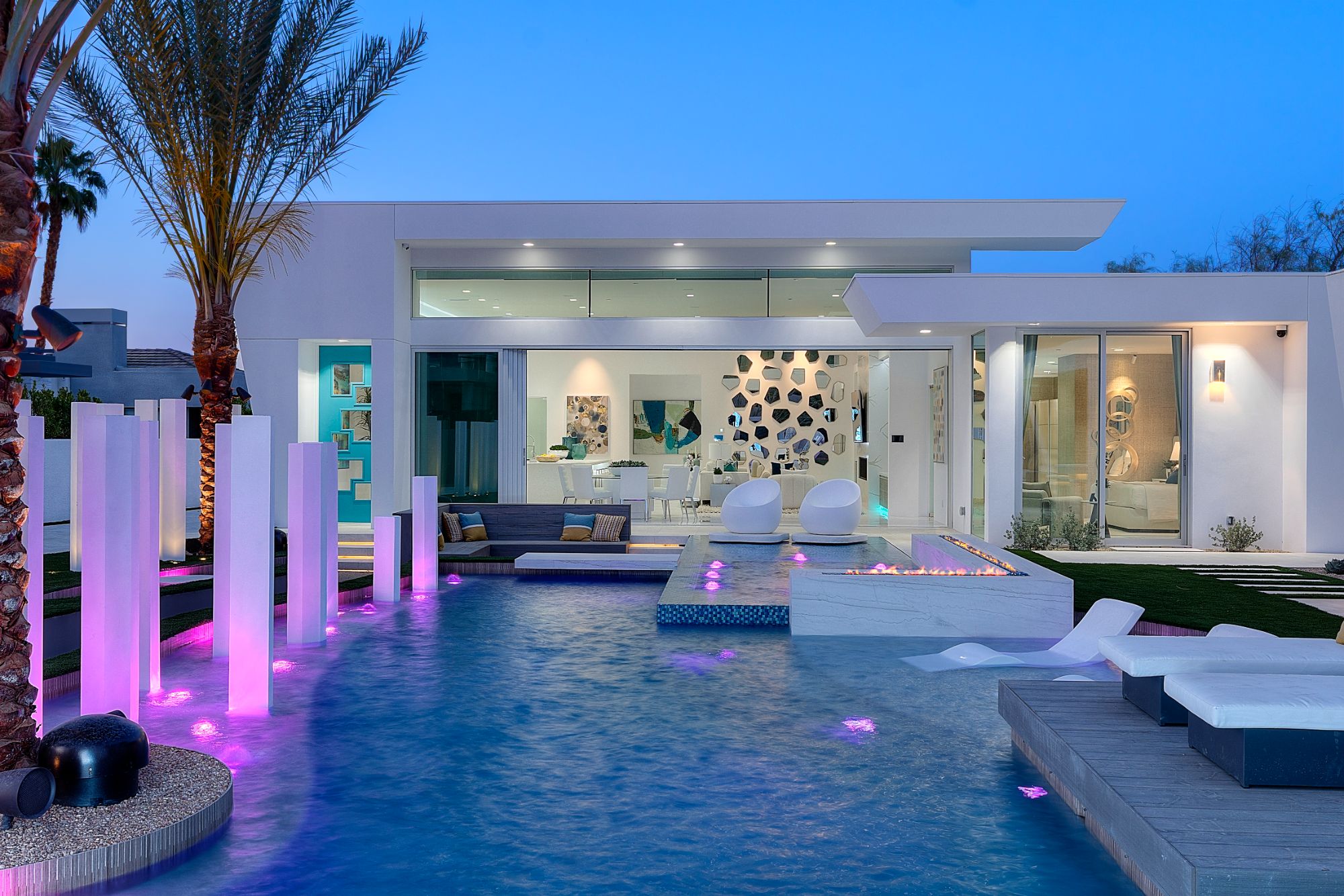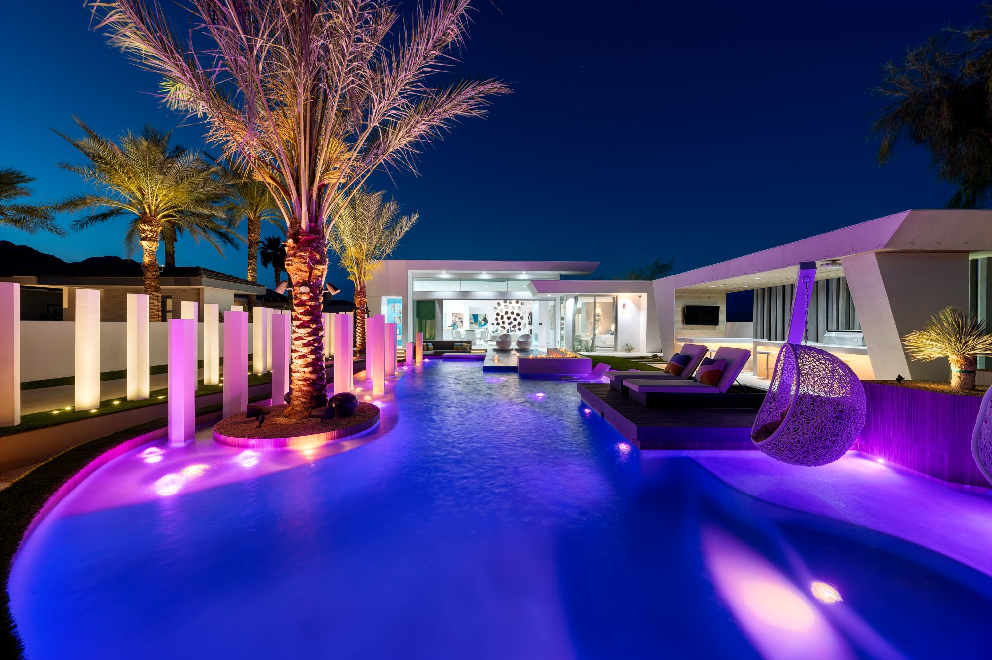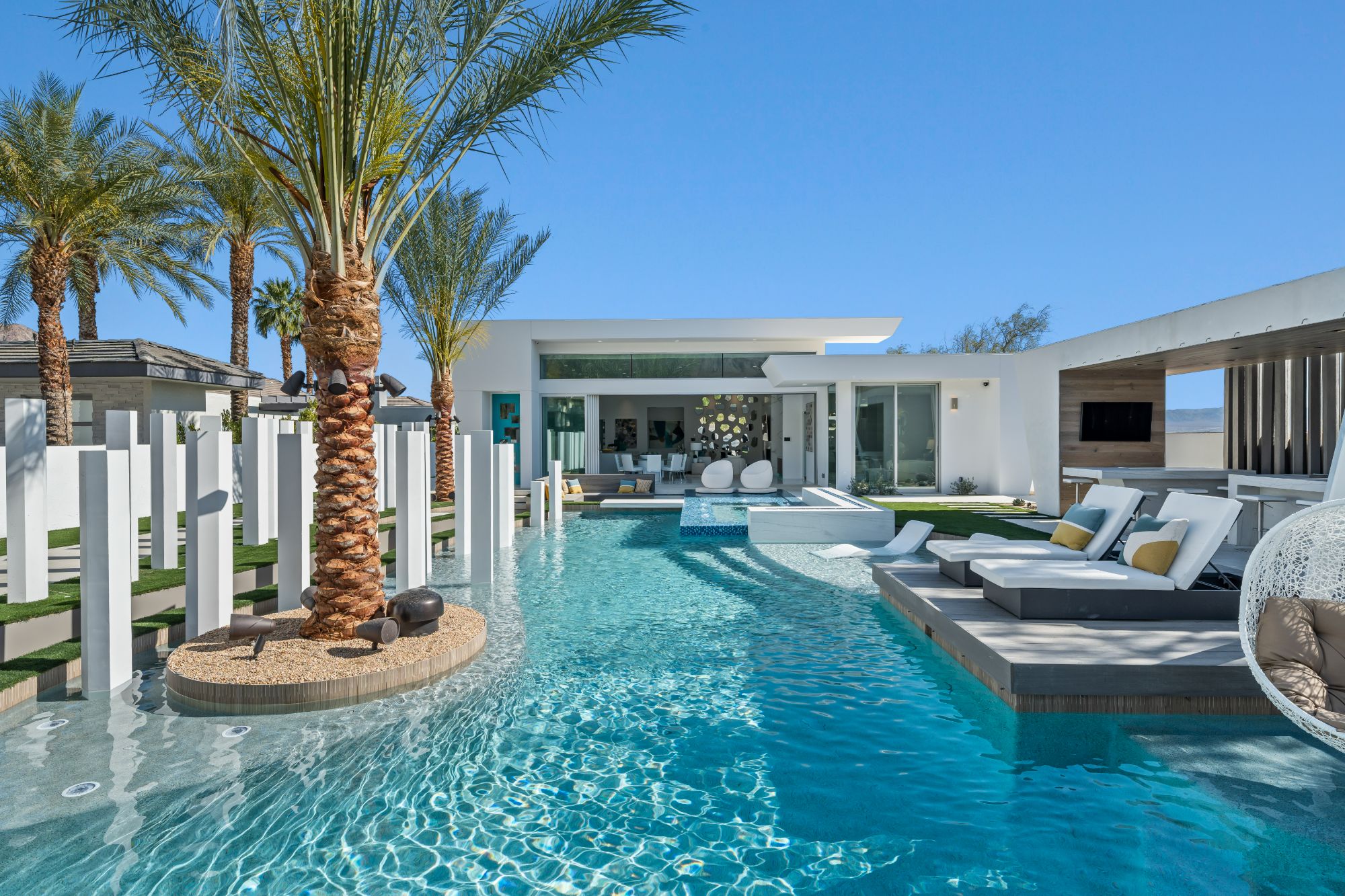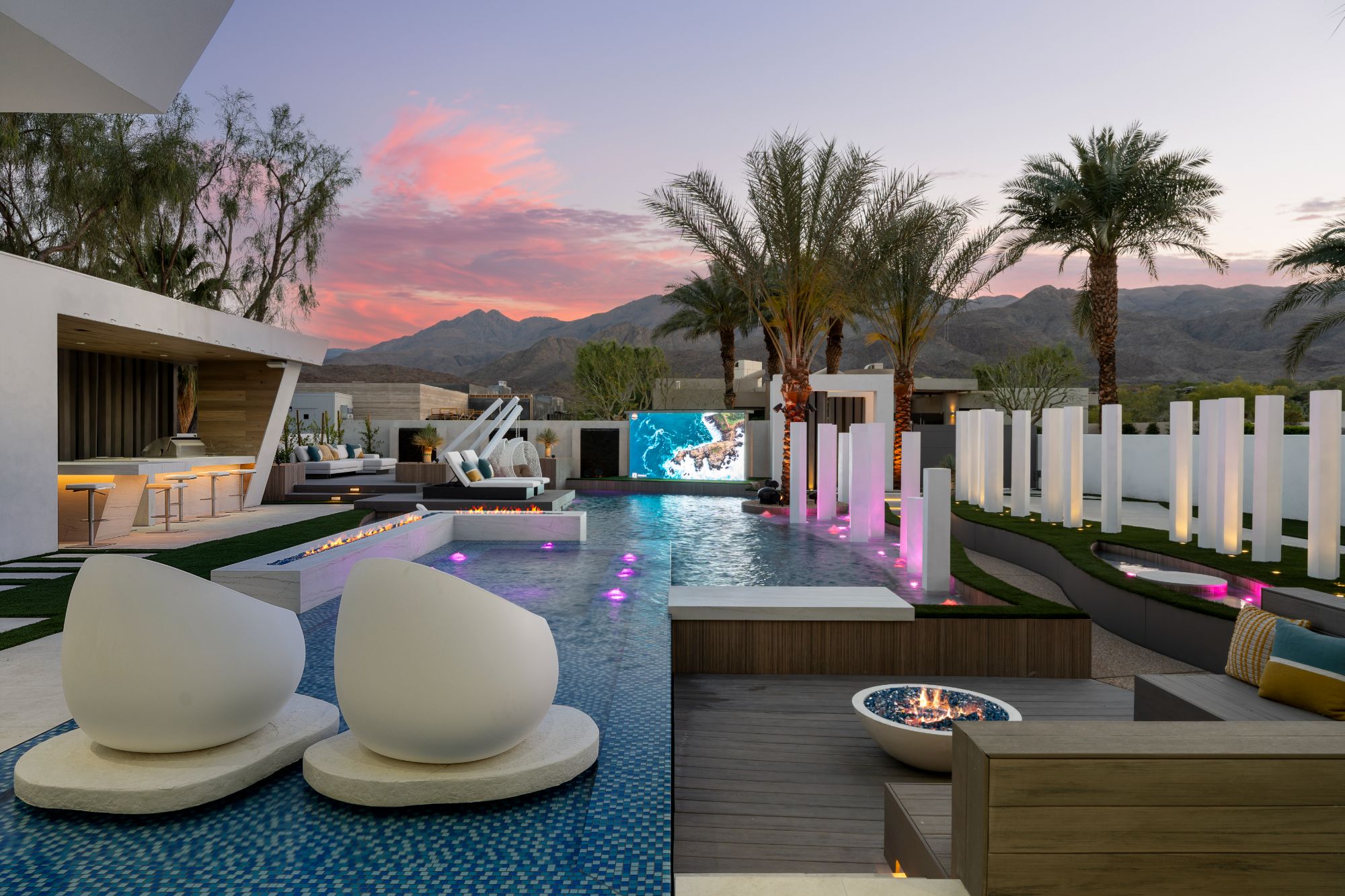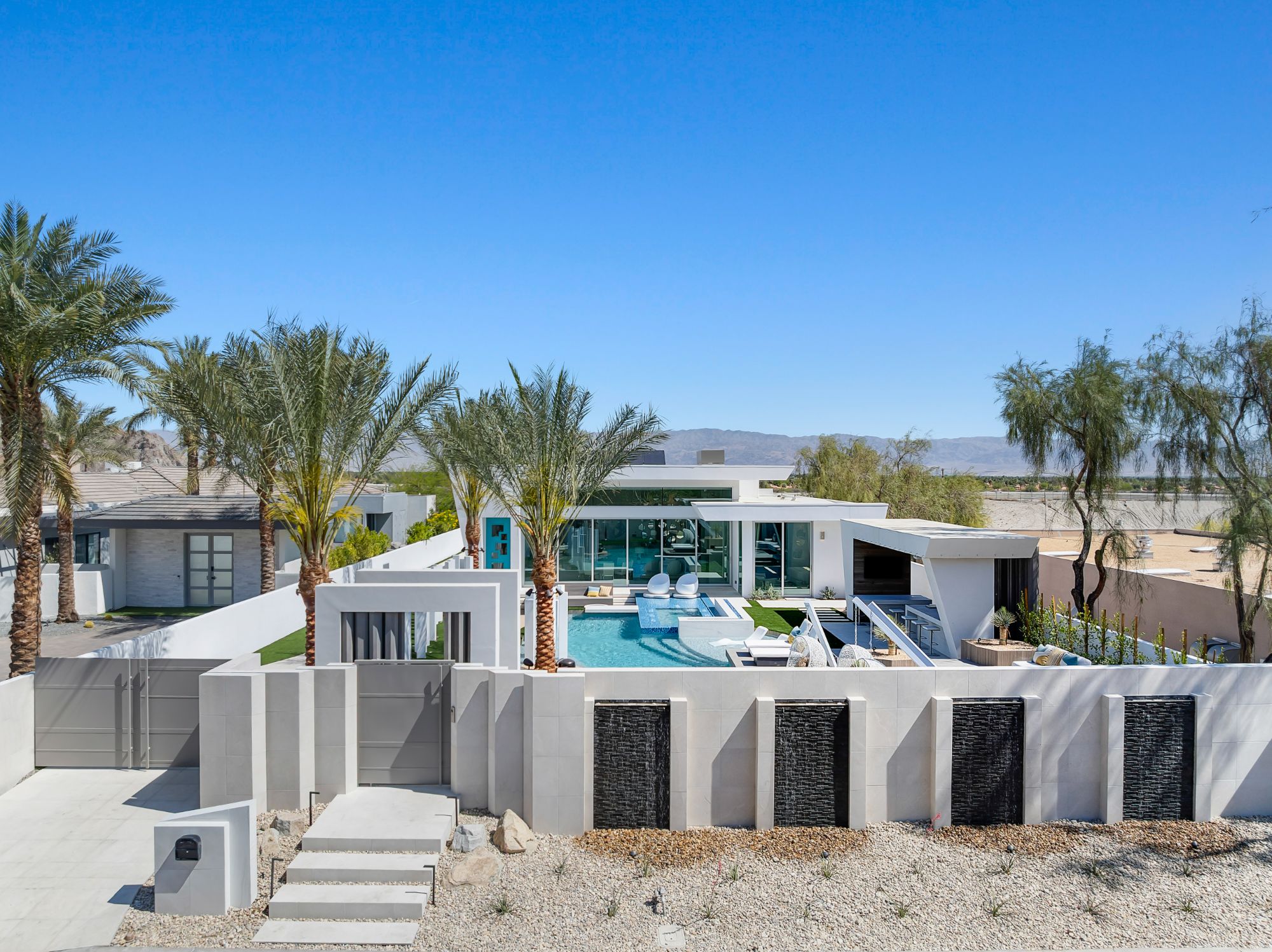 This newly built, state-of-the-art residence in the exclusive and highly coveted golf course gated community, The Quarry at La Quinta, sets a benchmark for modern luxury and wellness living in the desert. A collaboration between renowned architect and designer Brian Foster and landscape architect Foxterra, this masterpiece estate spans over 3,000 square feet. It is powered by Josh AI technology, offering a fully integrated smart home experience. Every detail of this home has been meticulously crafted to provide the ultimate sophistication, technology, and entertainment, making it one of the most exceptional offerings available in Palm Springs. Designed for both relaxation and grand-scale entertaining, the open-concept layout is enhanced by expansive sliding doors that seamlessly blend indoor and outdoor living. At the heart of the home, a cutting-edge private theater delivers an unparalleled cinematic experience, featuring ultra-rare McIntosh subwoofers, high-performance Triad speakers, and a state-of-the-art Sony ultra high-definition 4K projector. With over $1.2 million invested in top-of-the-line audio-visual upgrades and custom design elements, this theater room is one of the most exclusive in Southern California, offering an immersive sound and visual experience unrivaled by commercial theaters. The outdoor space is equally impressive and showstopping, designed as a private oasis with a resort-style front yard pool that creates an inviting and dramatic entrance. An Extreme 156" outdoor TV is perfectly positioned for entertaining, transforming the space into the ultimate lounge for watching sporting events, hosting gatherings, or enjoying serene desert evenings under the stars. The sleek, modern kitchen has high-end appliances, custom cabinetry, and a spacious island, making it functional and visually stunning. Every element of the home has been thoughtfully designed with seamless smart home automation, allowing effortless control over lighting, climate, security, and entertainment through intuitive voice commands via Josh AI. Additionally, the home is equipped with solar panels, circadian rhythm lighting, and a whole-home water filtration system, ensuring an eco-friendly and health-conscious living experience. The Quarry offers unparalleled luxury and privacy in one of the most exclusive gated communities in the greater Palm Springs area. It is home to a world-class Tom Fazio-designed private golf course consistently ranked among the top in the nation for groundskeeping of its pristine greens, with a clubhouse and tennis courts. Just minutes from La Quinta's top restaurants, boutique shopping on El Paseo, and world-class tennis at Indian Wells, this residence combines the best of desert luxury with the most advanced home technology on the market. This exquisite residence is being offered fully furnished and is move-in ready.