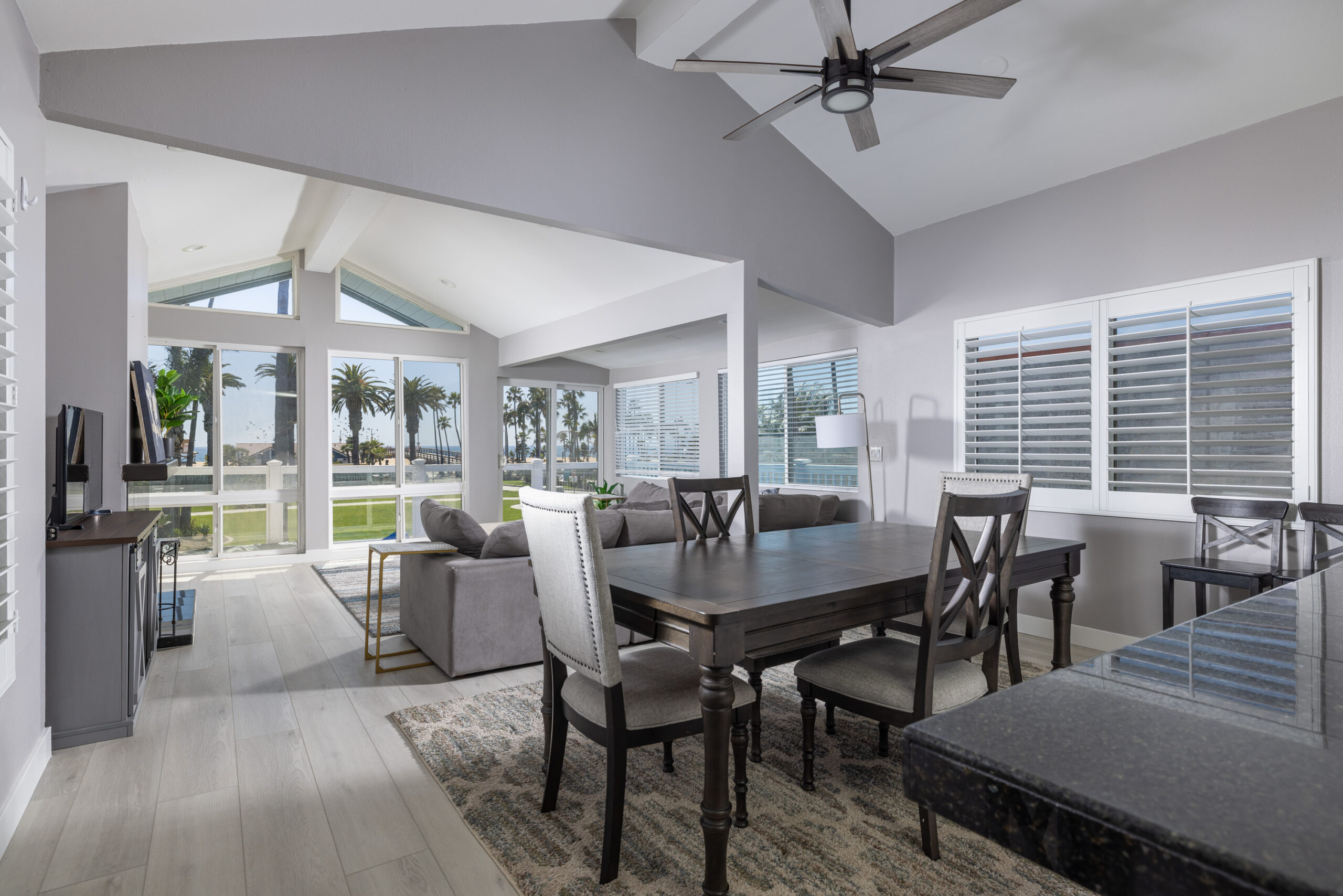 Embrace the epitome of coastal living from this exquisite top-floor residence along Newport Beach's famed boardwalk, boasting breathtaking vistas of the ocean. Just steps away from the Balboa Pier and Peninsula Park, this remarkable abode showcases freshly painted interiors, soaring vaulted ceilings, brand new hardwood floors, elegant plantation shutters, and recessed lighting, evoking an atmosphere of refined tranquility. Centrally anchored by a cozy fireplace in the living room, the open-concept dining area seamlessly flows into a well-appointed kitchen featuring an expansive eat-in island and pristine white cabinetry. Completing this coastal haven is a two-car tandem garage with convenient laundry facilities.Offering seamless access to an array of local amenities, this seaside sanctuary perfectly blends comfort and sophistication, epitomizing the sought-after Newport Beach lifestyle.