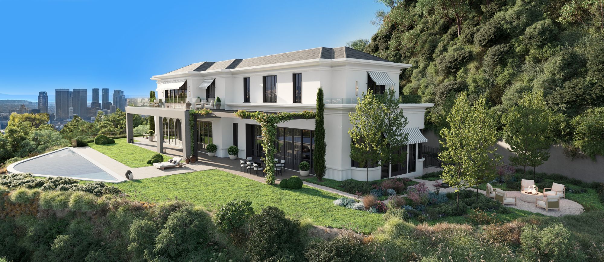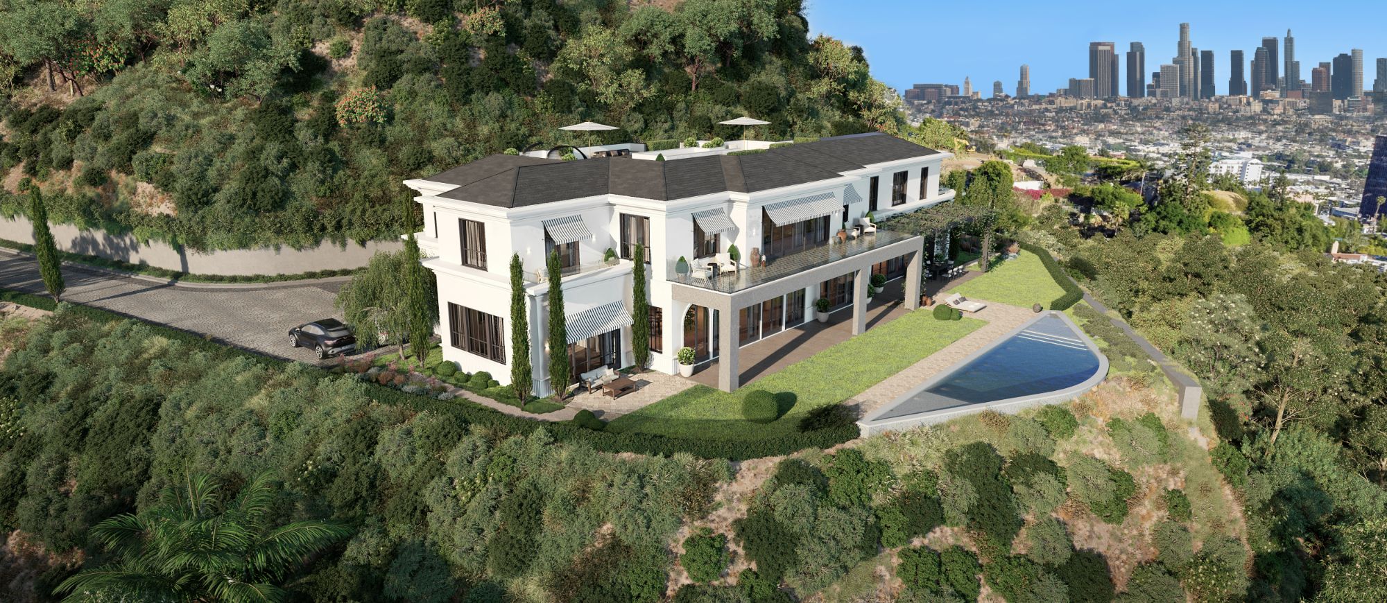 Behind a private gated entry resides one of the last approx. 1-acre promontories hovering above the legendary Chateau Marmont, with the most explosive views the city has to offer. Not only is there the coolest Hollywood Regency home on the property, but there are also plans by esteemed Architect and Design Studio, Tim Campbell, to build a Parisian-transitional paying homage to the greats of Christian Liaigre and Joseph Dirand. Permit ready plans, grandfathered in prior to the extremely restrictive Wildlife Ordinance, for a 14,000 square foot masterpiece by Studio Tim Campbell and Jason Somers of Crest Real Estate. Once complete, "The Hillside Chateau," will be set behind a long, private gated drive with an oversized motor court. Flawlessly thought out with the most exquisite finishes and floorplan. The interior blends classic design elements with modern touches and the best materials to create a truly remarkable space. High ceilings, cased openings, archways, and long dramatic hallways throughout the home. Seamless indoor/outdoor living with a mega view from all 7 bedrooms. The latest and greatest amenities include a theater with lounge, gym with spa, wine cellar, and a gorgeous auto gallery to highlight your collection. Properties like this don't exist anymore. Here is your chance to own a $50+ million property on the Sunset Strip.