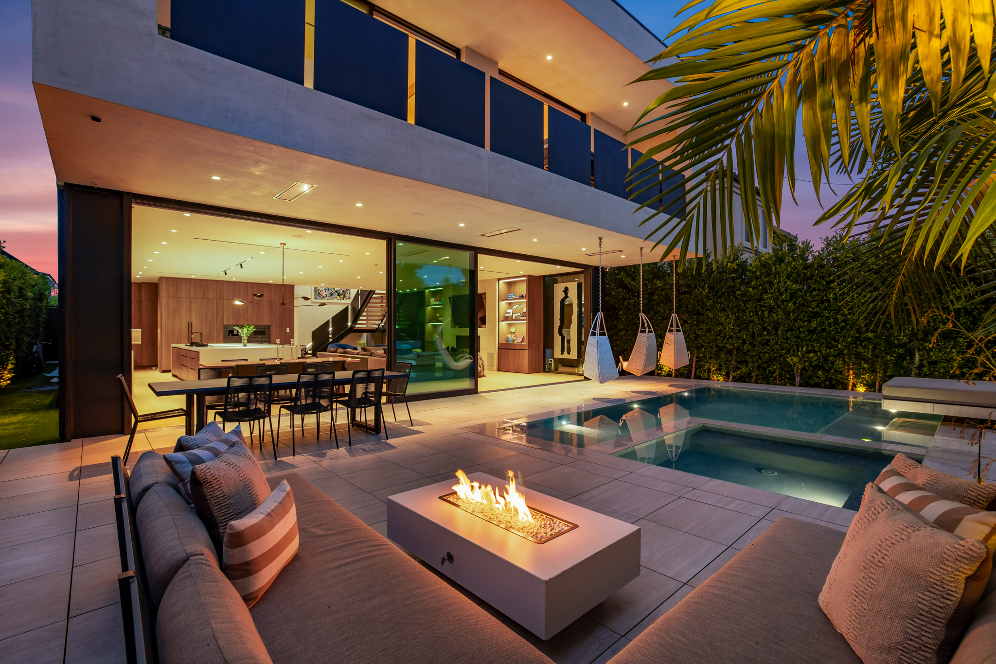 Located on one of the finest streets in Beverly Grove, this newly-constructed architectural masterpiece offers the epitome of luxury living in the heart of Los Angeles unlike any other home in this coveted neighborhood. Constructed as the personal residence for a luxury home developer, this estate features every amenity imaginable and the finest in materials and finishes. Completely gated, and flanked by mature hedges around the entire property, the property transports you to a true oasis, featuring lush landscaping and the ultimate seclusion and privacy. The soaring 12 ft+ ceilings, skylights, and Southern exposure provide an abundance of natural light, while a double-height pivot door opens to a large open-concept floor plan complete with walls of glass and views to the beautifully manicured garden. A seamless flow connects the public spaces, centered around the family room complete with custom built-in bookshelves and Italian tile-clad fireplace. The chef's kitchen is equipped with custom cabinetry, walk-in pantry, dual sinks & dishwashers, state-of-the-art integrated Miele appliances & PITT stove-top, espresso machine, and an enormous 16ft center island - the perfect place for entertaining and hosting on all scales. Additional highlights include a bespoke bar, 1000+ bottle wine cellar with refrigeration, private elevator and home automation system including speaker system, Lutron lighting and automatic shades. Enjoy quintessential indoor-outdoor living, with a wall of multi slide Fleetwood doors that retract to the pool deck - a true engineering masterpiece. The immensely private backyard boasts a zero-edge pool and spa, floating daybed, mid-century hanging chairs, dog run, and large patio equipped with an outdoor kitchen and fire-pit for intimate gatherings or large-scale parties. Akin to the best in hotel-living, the primary suite is a true retreat that boasts Roman clay plaster walls, custom cabinetry, sliding doors that open to a private terrace complete with outdoor shower, and a spa-like ensuite bathroom complete with stone sinks, soaking tub and oversized rainfall steam shower. All 5 guest suites are en-suite, with one adorned with a hidden door/wall making it the perfect upstairs lounge or theater. The enormous roof-deck, is one of the largest found in all of Beverly Grove featuring unobstructed 360 degree views of the City and Hollywood Hills. This exquisitely designed space was thoughtfully curated, and is serviced by an elevator for easy, convenient access and seamless entertaining, and features a custom outdoor kitchen, fire-pit, various seating areas, and steel pergola. A true wellness retreat, it also features a sauna and cold-plunge pool.Meticulously designed, and incredibly rare and unique in its complete privacy, this modern home features the highest level of finishes and design for the most discerning Buyer just moments away from some of the best dining, shops, and nightlife LA has to offer.