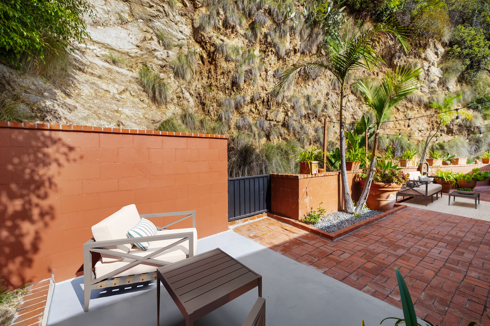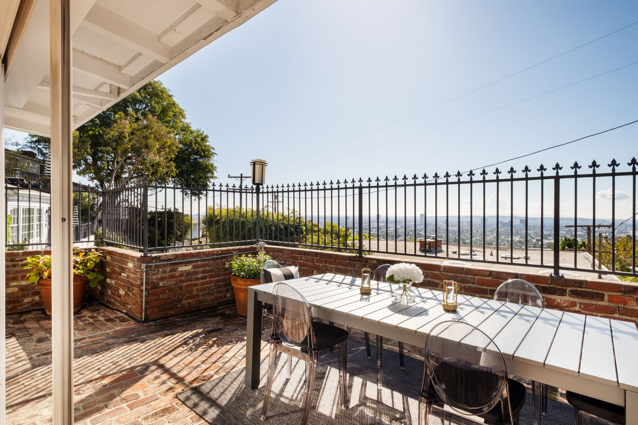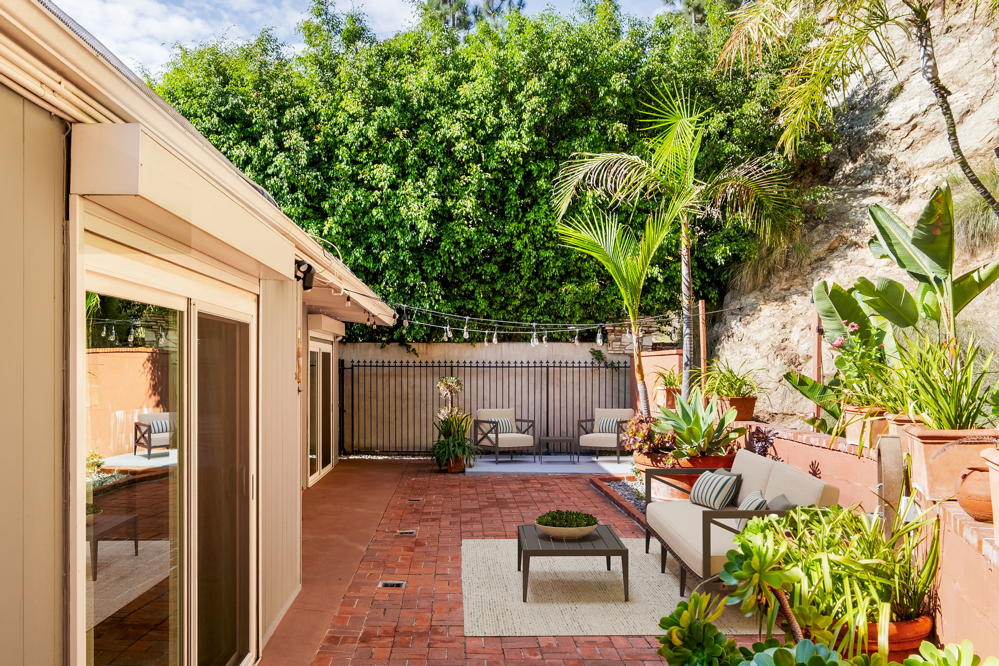 A Mid-Century turnkey gem perched above one of the most desirable blocks in the Hollywood Hills, this residence offers gated entry, elevated privacy, and endless views stretching from Catalina Island to Downtown. Sunlit interiors, timeless design, and a seamless connection to the outdoors create an atmosphere that is both warm and sophisticated. Expansive floor-to-ceiling windows and airy, front-facing brick patios showcase sweeping city vistas and, on clear days, the ocean beyond. Outdoor spaces wrap the property, providing a variety of settings for entertaining. Exterior board-and-batten siding and a hand-carved mid-century front door set an inviting tone. Inside, the effortless floor plan is bright and welcoming, post and beam ceilings enhance its open, airy feel, complemented by rich wood accents. Three generous bedrooms include a primary suite with both walk-in and sliding-door closets; this suite, along with a second bedroom, opens onto private, secluded patios. A two-car garage and ample street parking complete the offering. Just minutes from The Chateau Marmont, The Sunset Tower Hotel and Sunset Plaza, this home delivers an authentic and elevated slice of iconic LA living in the Hollywood Hills.