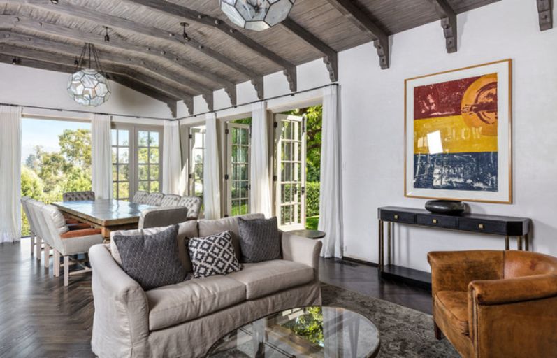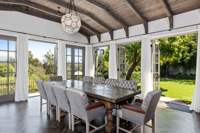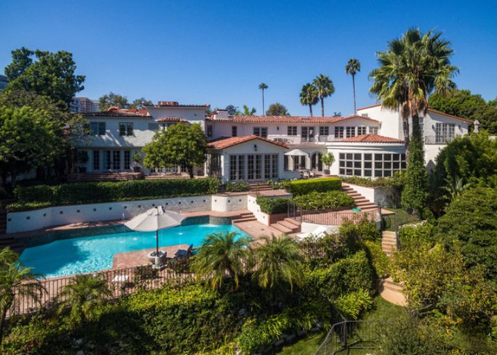 One of the most extraordinary estates in Los Angeles is this nearly 10k sf sophisticated, transitional modern Spanish that sits atop a double lot in Little Holmby. This rare gem features tree-lined views of LA Country Club & downtown. Centrally located, the sleek, high-ceilinged interiors are accented by reclaimed wood beams, gray oak flooring, & slab marble countertops. Formal entry w/beautifully designed stone flooring, fireplace, & built-ins. Natural light flows thru out the 3 story floor plan which hosts a vaulted wood ceiling living room, formal dining room, theatre, arts & crafts room & covered verandas. The master suite includes 2 spa baths, his & hers closets, an infrared sauna, outdoor terrace, & adjoining gym. Spacious grounds are surrounded by lush, breathtaking landscaping that provides optimal privacy. Pool, spa, patio w/built in kitchen & BBQ that's perfect for alfresco dining, large grassy flat pads, half b-ball court, Barbara Butler-designed kids tree house & much more!