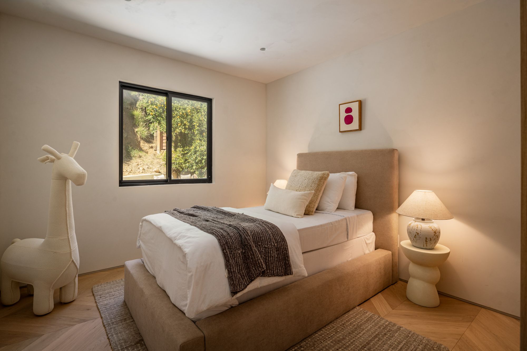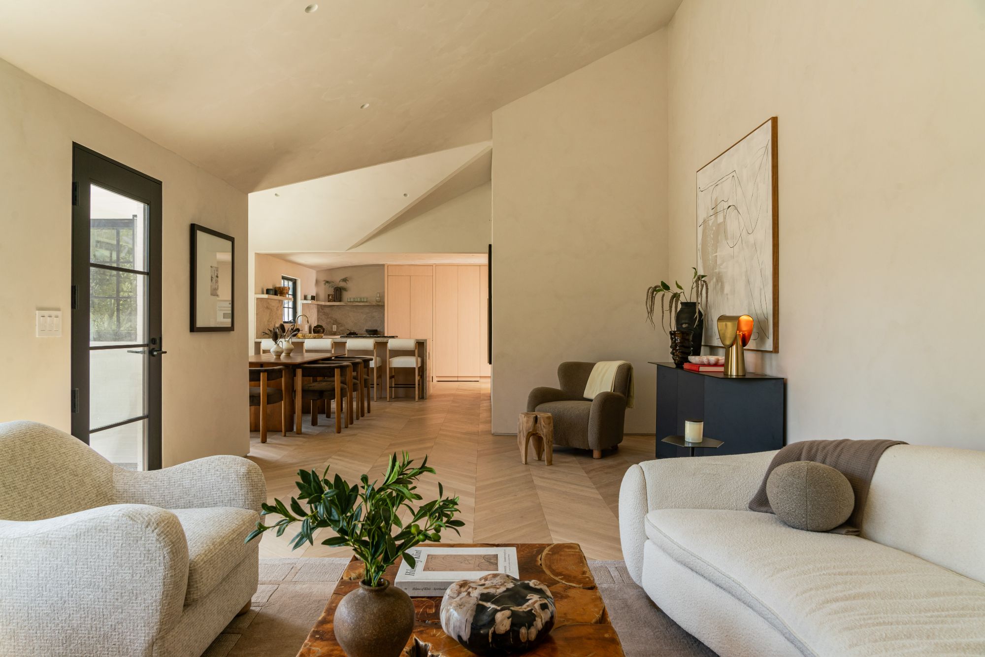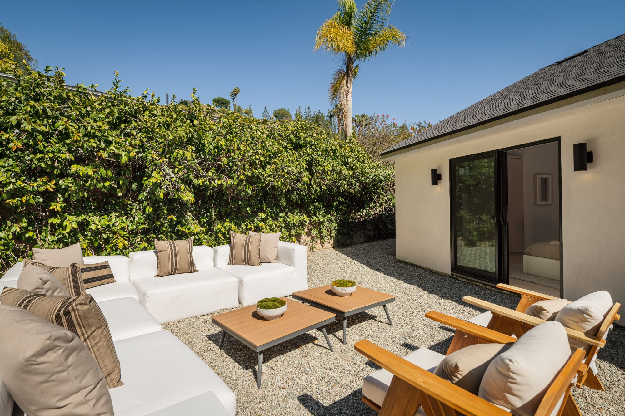 Perched on a serene cul-de-sac above the legendary Sunset Strip and the iconic Chateau Marmont, this extraordinary residence offers more than just a home; it delivers a lifestyle. Bask in breathtaking panoramic views, abundant natural light, refreshing canyon breezes, and the mesmerizing glow of city lights. Step inside the impeccably renovated main house, where elegance and sophistication define every detail. Featuring 3 spacious bedrooms and 2 luxurious bathrooms, the interiors boast soaring ceilings in the living area and primary suite, chevron-patterned hardwood floors, and a stunning Portola lime-washed accent wall that adds timeless character. A custom travertine fireplace serves as the heart of the home, offering warmth and refinement in equal measure. The kitchen is a culinary dream, seamlessly blending form and function. Crafted for both beauty and efficiency, it showcases solid oak cabinetry, top-tier Thermador appliances, and an exquisite Taj Mahal quartzite countertop, creating an inviting space for cooking and entertaining. Adding to the property's versatility is a newly built ADU, perfect as a guest retreat, private office, or creative studio. Driveway parking ensures convenience, a rare find in the Hills. This is a rare opportunity to embrace the quintessential Hollywood Hills lifestyle; a perfect fusion of luxury, comfort, and tranquility. Don't miss your chance to call this exceptional property home.