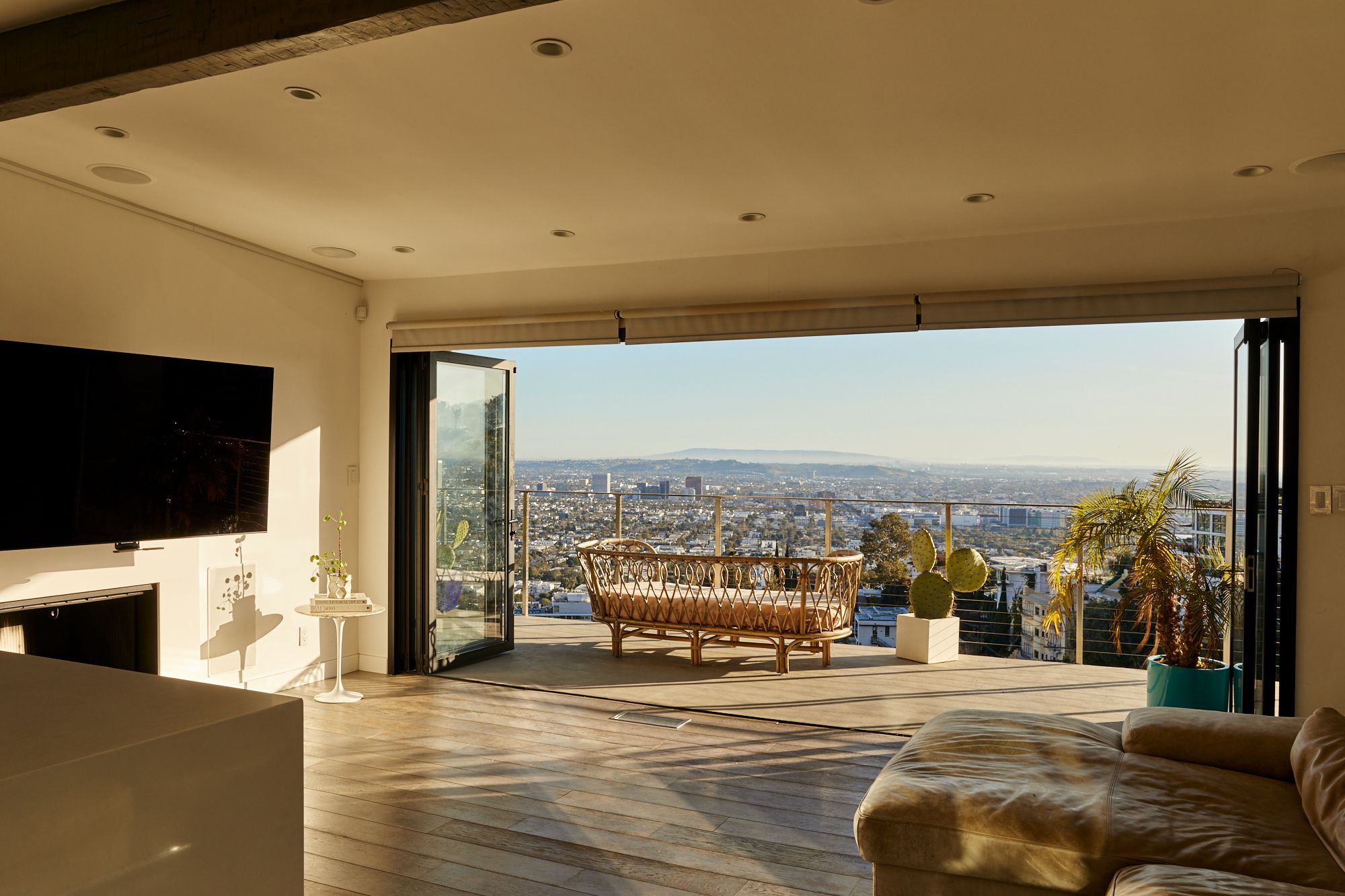 Perched above the famous Sunset Strip, this Hollywood Hills modern is an entertainer's dream that boasts breathtaking views from every floor of the home. The open concept layout features an updated kitchen with stainless steel appliances and ample living space with a sleek fireplace that leads seamlessly to the expansive deck providing the ultimate indoor-outdoor experience. The primary suite is a true private sanctuary with endless city views, complete with a cozy fireplace, and soaking tub for complete relaxation. This property is equipped with Nest thermostat, surround sound, and a security system that can be controlled by phone. With easy access to the finest of restaurants, shopping, and entertainment, this home is perfectly situated for enjoying all that Los Angeles has to offer.