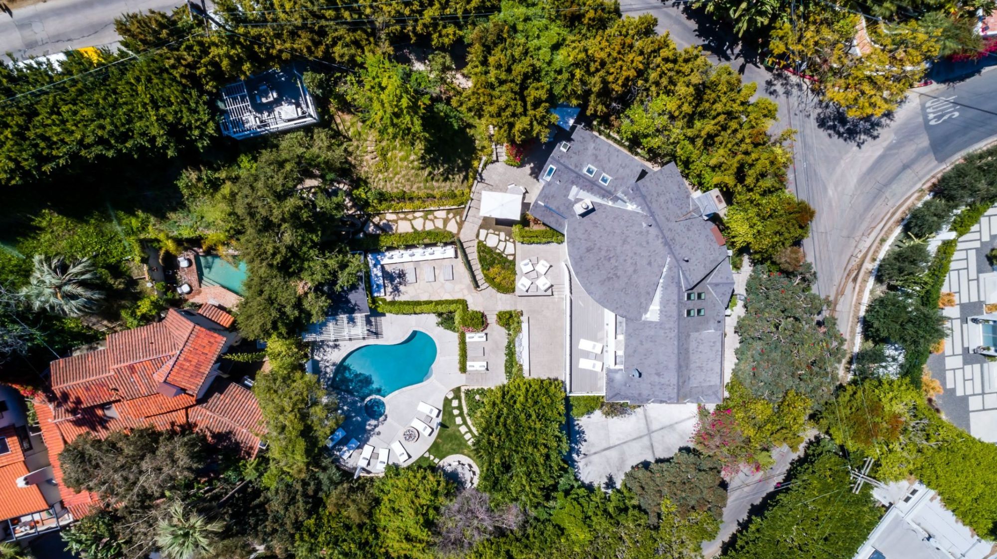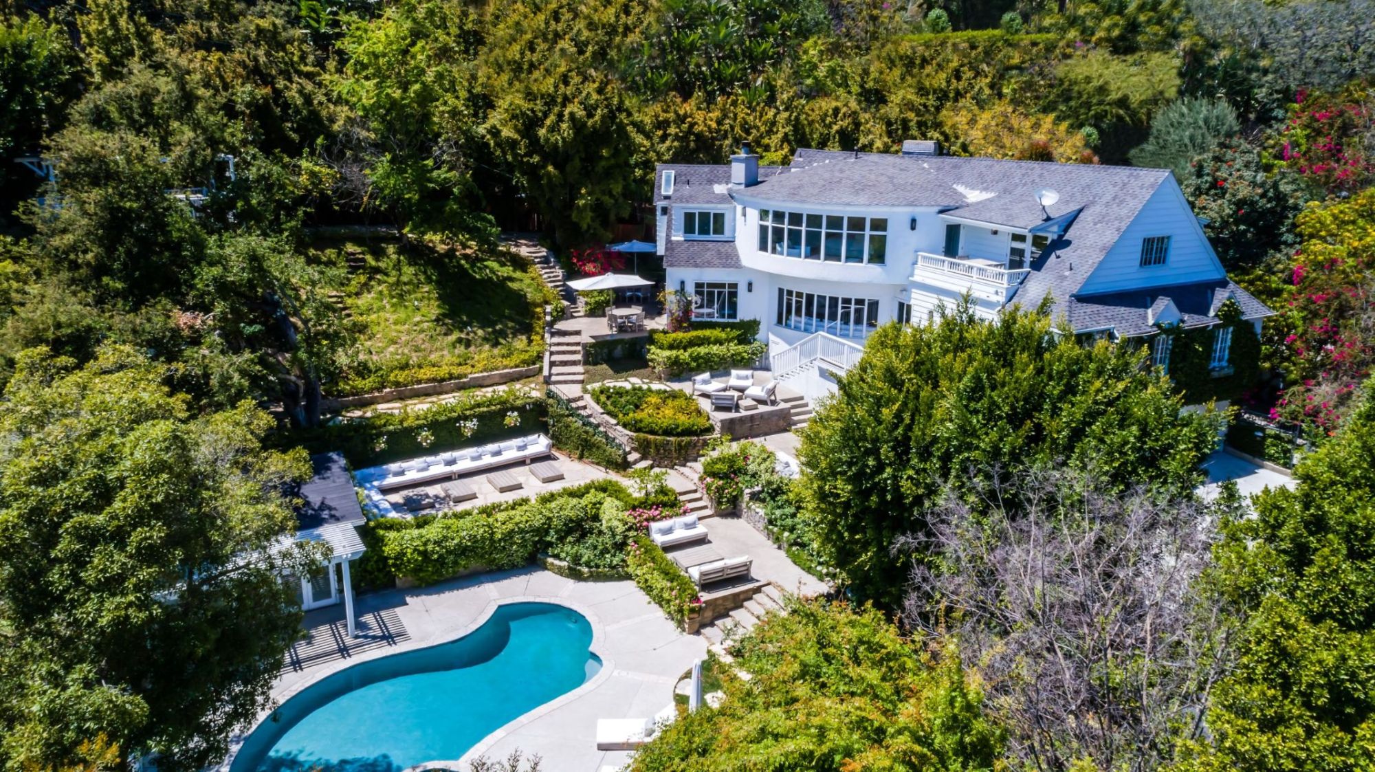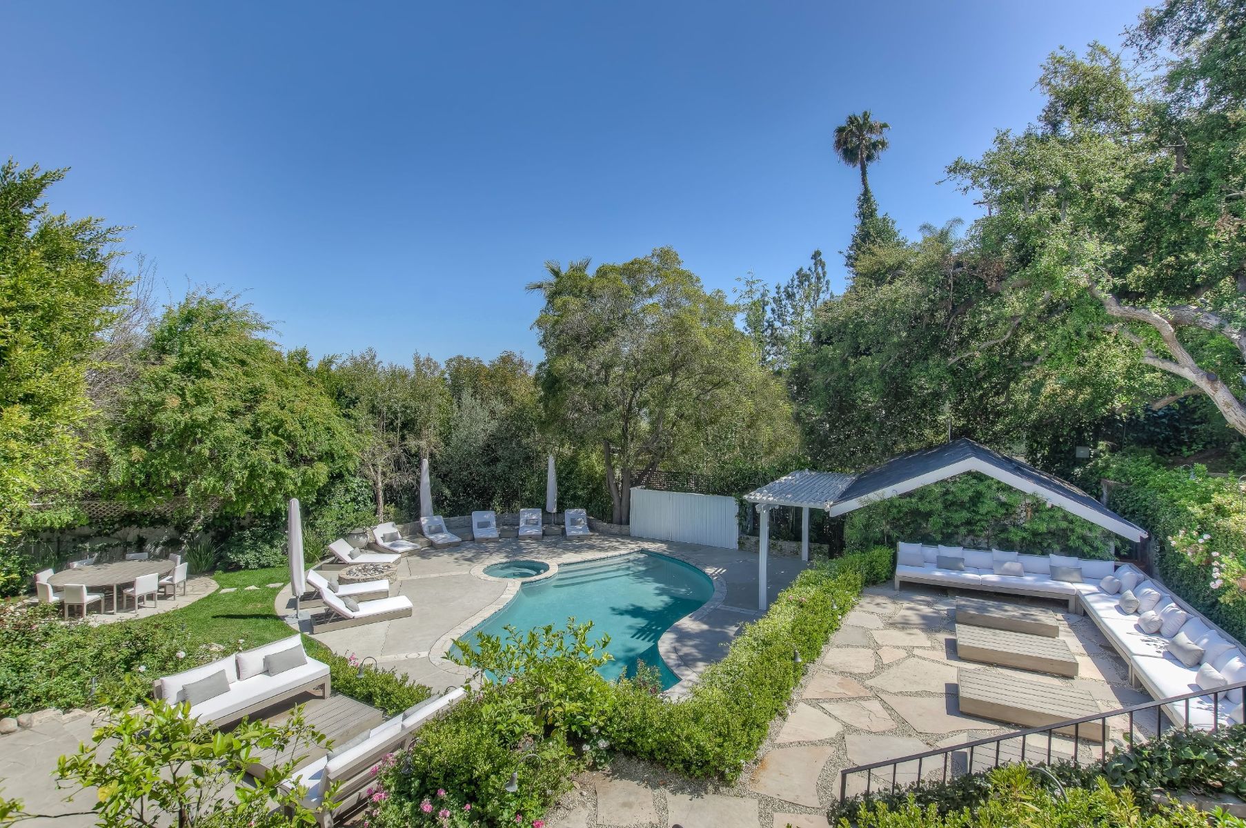 The Kingston Estate is located just above the world famous Sunset Strip, known for the finest entertainment & dining LA has to offer. This once in a lifetime property combines 3 legal lots to form a magical hotel-style residence. You'll feel the magic the second you enter through the gates to an incredible indoor-outdoor floor plan with a rich, fresh vibe that is second to none. Entertain guests with ease in your private backyard paradise, which can seat an excess of 90 people, including pool, spa, BBQ and upper deck view dining. Surrounded by lush landscaping, the guesthouse includes bedroom, kitchenette & full bath. Designed for a fun, relaxed, sophisticated lifestyle; this park-like setting is out of a movie. Complete with its own wine tasting/bar room lounge to service the estate in grand fashion. Features a double-height living room, office, 8+ car motor court/garage and spectacular master suite with views stretching across Downtown LA.