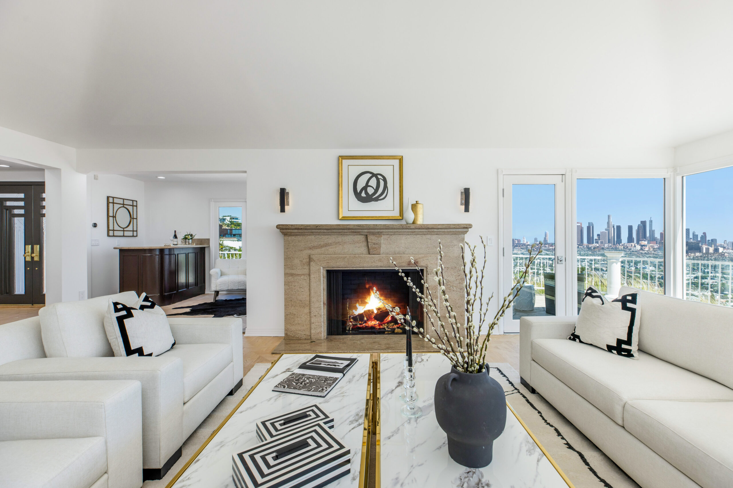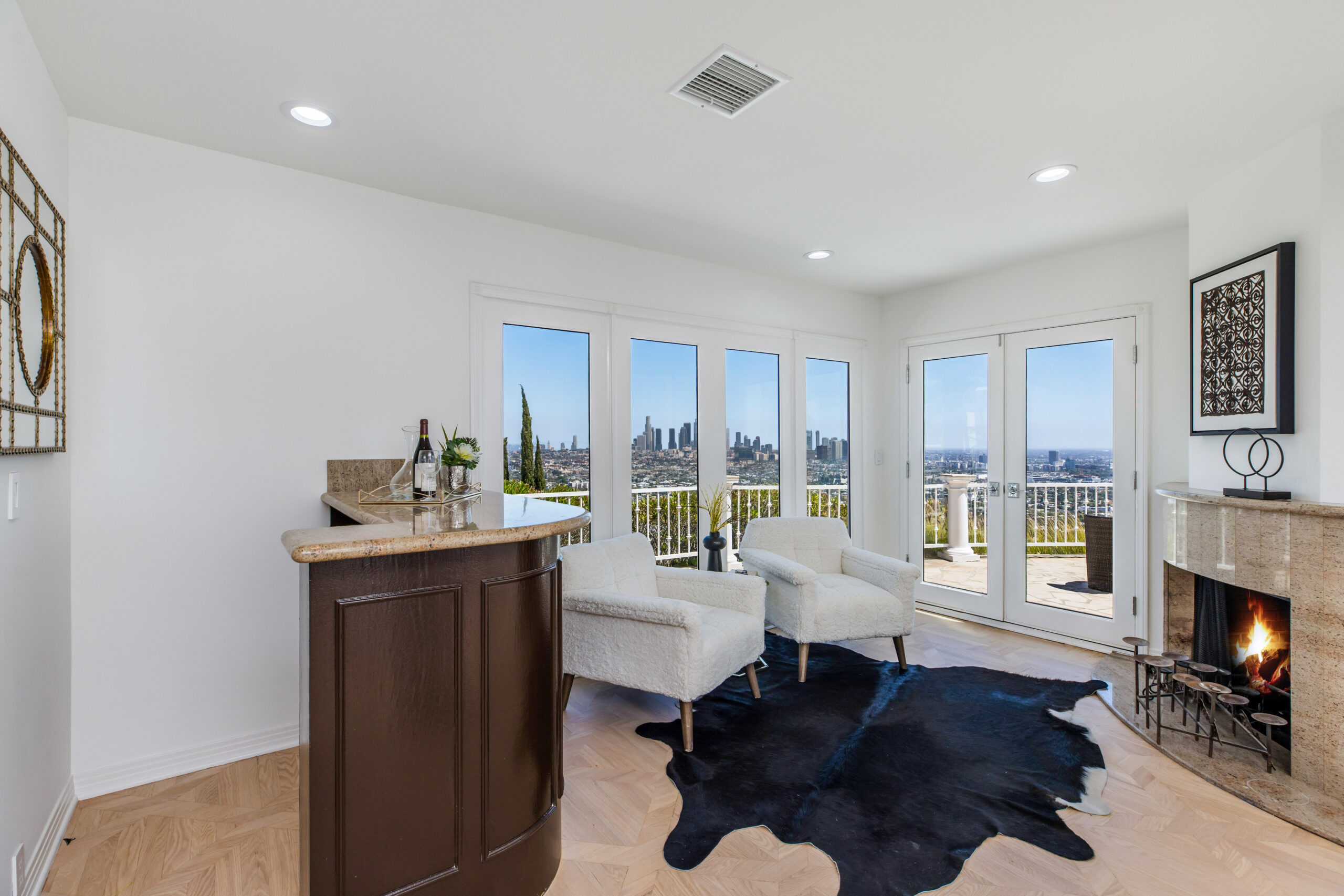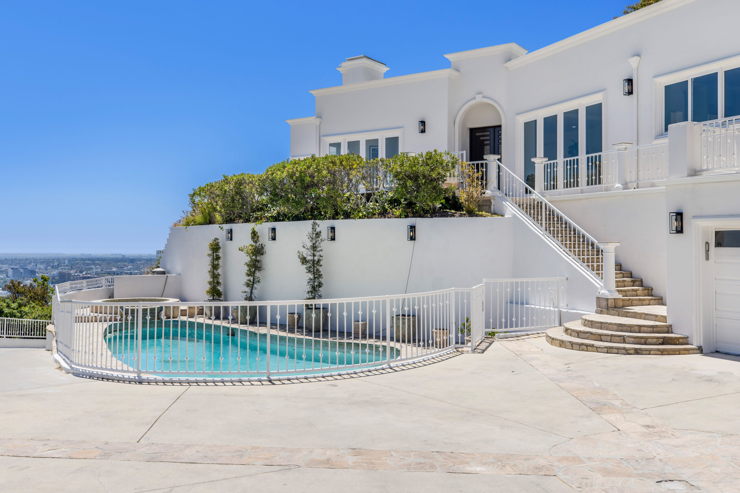 Views, views, views! Welcome to Hedges Way, the ultimate view property. Enter through a long gated private driveway to find this spectacular newly renovated masterpiece, boasting over 5,000 square feet of living space with 6 bedrooms and 6.5 bathrooms on well over half an acre of land. Breathtaking views of Downtown, Century City and the ocean from every room will blow you away. The large living area is perfect for entertaining with beautiful French doors leading out to the extra large patio that looks over the entire city. The huge primary suite with large bathroom and yoga studio/gym is like no other in the city with views from every window. The oversized motor court is one of a kind for the area and can fit over 10 cars. This property is like no other. Don't miss your chance to acquire this one of a kind view estate.