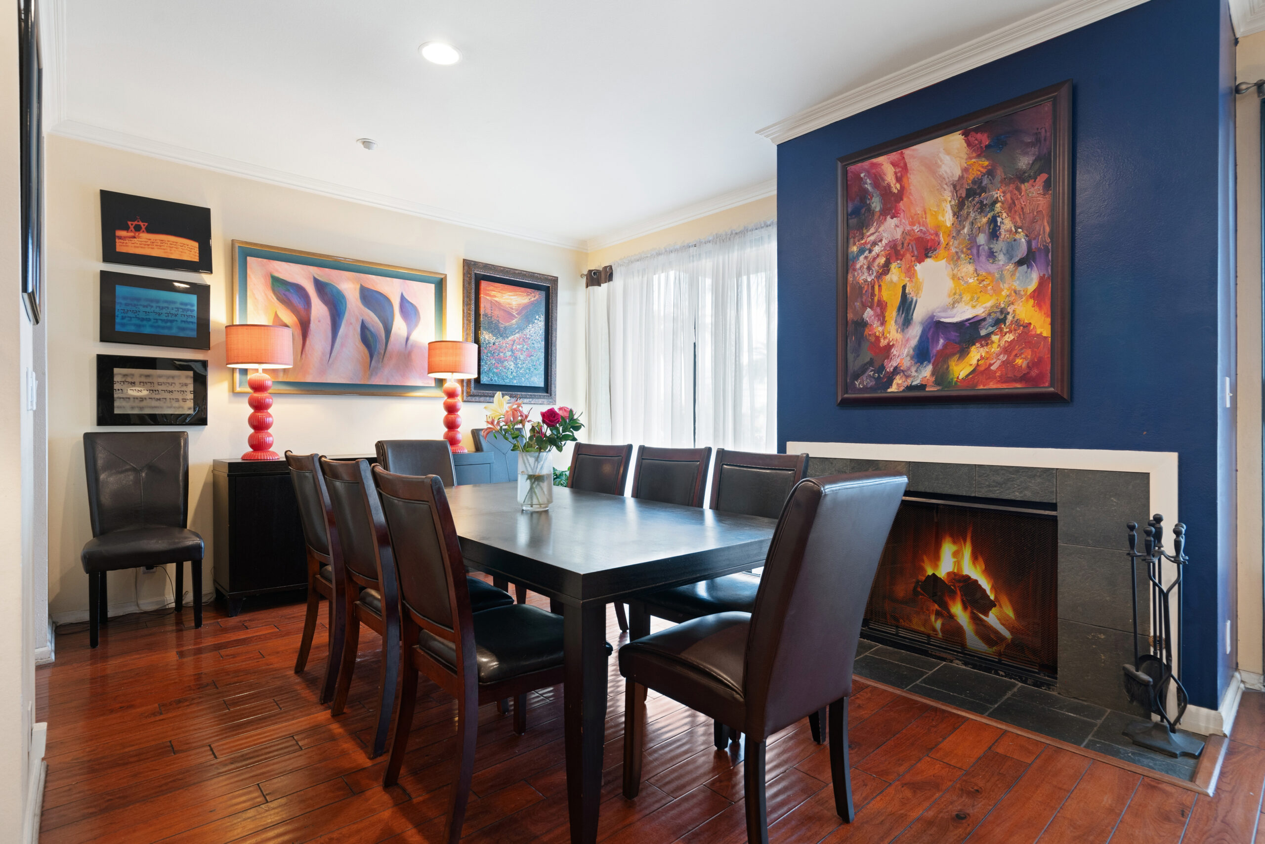 This stunning 2 bed, 2.5 bath condo combines spacious elegance with modern luxury. Upon entry, you'll find a convenient powder room and a chef's dream kitchen, equipped with three electric ovens, two microwaves, two refrigerators, and ample counter space. The kitchen flows effortlessly into the dining area, making it perfect for entertaining. The living room features a cozy gas fireplace and a wet bar, ideal for hosting guests, while the open floor plan ensures a seamless connection between living spaces. Both the primary and guest suites are thoughtfully designed for privacy, each boasting oversized closets. The primary suite takes luxury to the next level with a marble-surrounded soaking tub and versatile space for a home office or lounge. Enjoy the large private patio offering stunning views of the Hollywood Hills. Additional amenities include a gym with Peloton equipment, a dry sauna, and an in-unit stackable washer and dryer. This pet-friendly residence also offers two dedicated parking spaces, extra storage, and an abundance of storage throughout the unit. Situated in a highly desirable location, this home offers the perfect blend of sophistication, comfort, and convenience. Don't miss the chance to experience luxury living at its finest in the heart of Los Angeles!