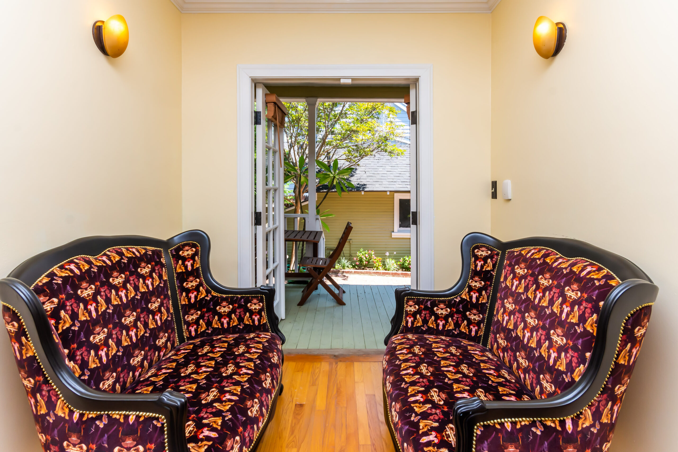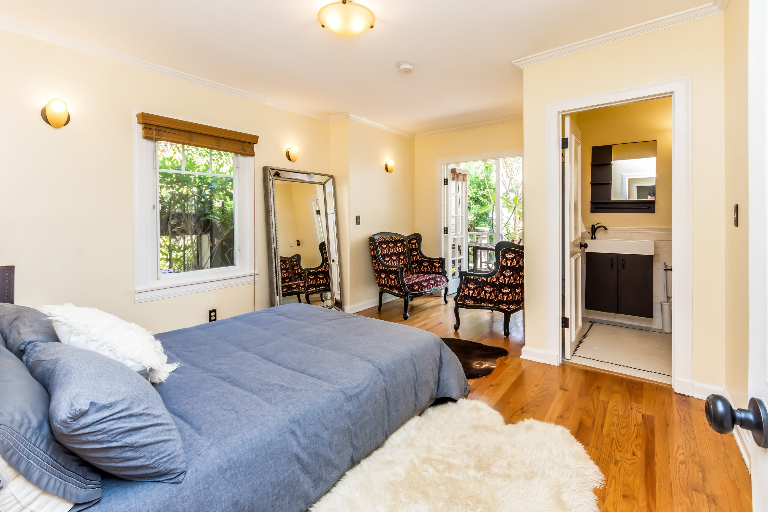 Incredible opportunity to reimagine an original California bungalow in the heart of West Hollywood's coveted Norma Triangle. This charming Cape Cod-style bungalow sits proudly on a corner lot framed by a white picket fence and lush, mature landscaping. Inside, the two-bedroom, one-bath home showcases timeless details vaulted ceilings, crown molding, and gleaming hardwood floors throughout. The spacious kitchen features stainless steel appliances, a breakfast area, and direct access to the backyard. French doors from the primary suite open to a serene deck and a Zen-inspired patio with a fountain surrounded by greenery a perfect setting for morning coffee or an evening glass of wine. Completing the property is a detached one-car garage (with parking for two) and an automatic gated driveway with access from Vista Grande.