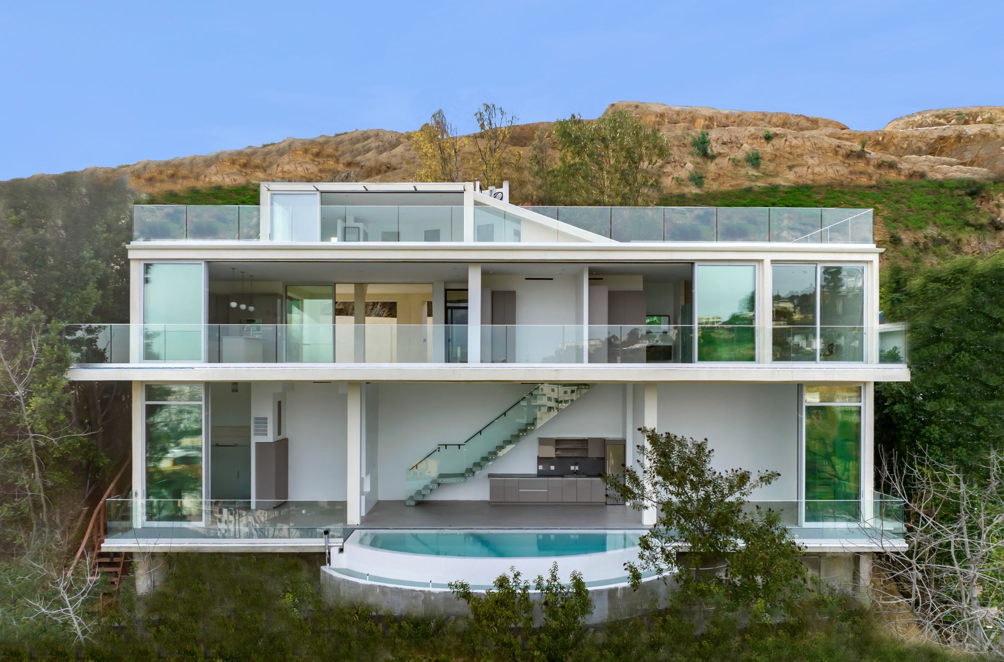A bright and airy modern home with panoramic views set in the Hollywood Hills above the iconic Sunset Strip. This approximately 2,462sqft extensive remodel offers high ceilings and walls of glass on all 3 levels allowing natural light to fill the space and create a warm and inviting atmosphere. Large sliding doors open to multiple deck areas and swimming pool to the enjoy indoor/outdoor living. Unique open floor plan throughout the home is perfect for events and entertaining. The primary suite and open concept bathroom sit on the top level and opens to a massive rooftop deck with sweeping city and canyon views. Additional 2 bedrooms and 3 European-styled bathrooms provide ample space. Just moments from the best shopping and dining that West Hollywood and Beverly Hills have to offer.