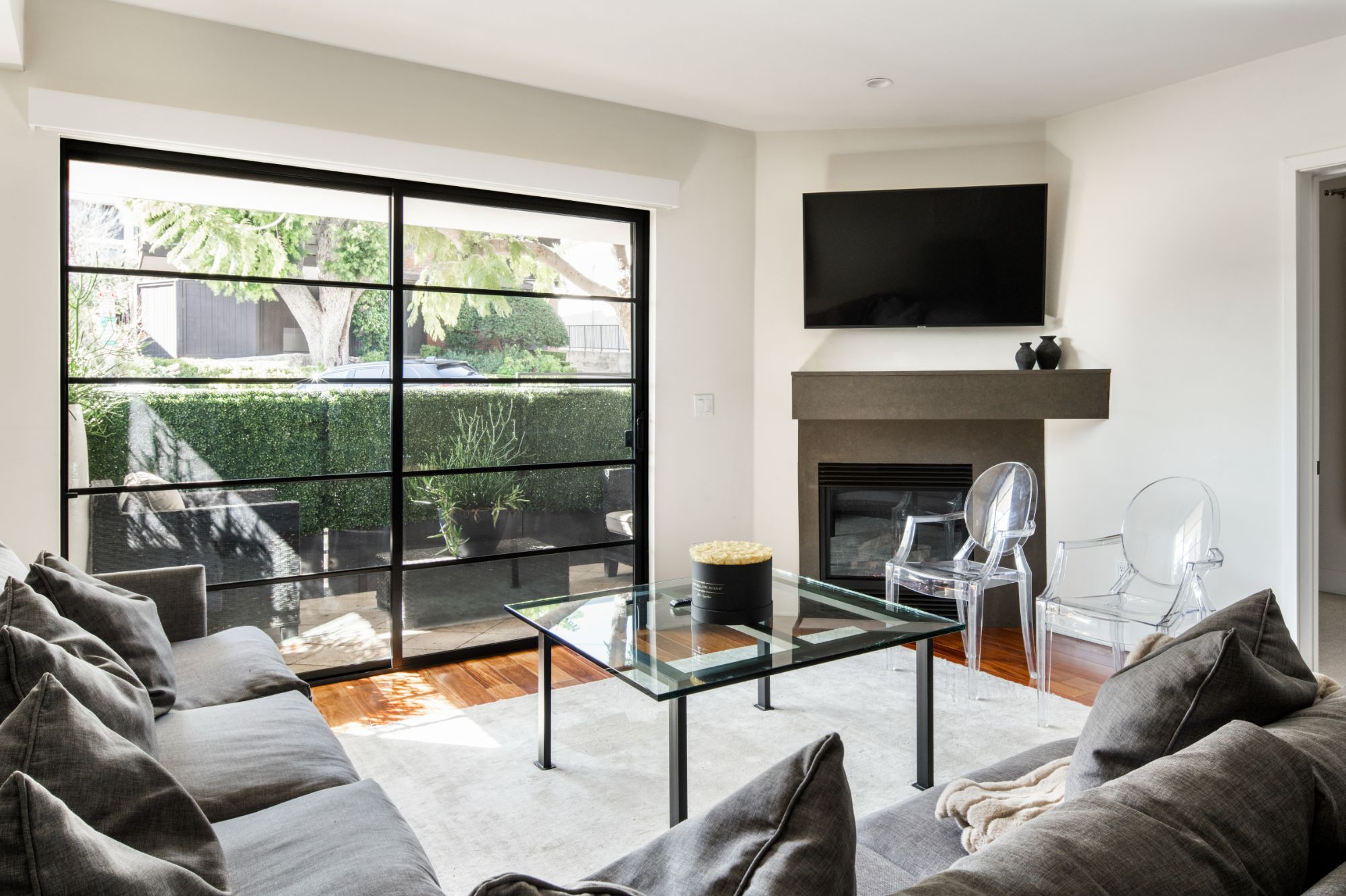 Nestled in the heart of West Hollywood, just above the Sunset Strip, Shoreham Villas is an exclusive collection of 15 residences designed for those who cherish luxury and privacy. A secure entrance and private elevator usher you directly into your foyer, setting the stage for a home that exudes elegance and intimacy. Inside, an expansive open-concept layout is enhanced by rich hardwood floors, while a sleek, oversized kitchen serves as the heart of the space perfect for both entertaining and unwinding. Floor-to-ceiling glass doors open to your private balcony, offering a serene escape before the vibrant city beckons. The primary suite stands as a personal retreat, featuring a custom walk-in closet and a spa-like bathroom designed for ultimate tranquility. Thoughtful details like in-unit laundry and secured side-by-side parking make everyday life seamless. When you're ready to embrace the skyline, the rooftop sundeck offers breathtaking views of the Los Angeles panorama a daily reminder of the extraordinary location you call home. Beyond your front door, the pulsating energy of the Sunset Strip awaits home to world-class dining, designer boutiques, and a dynamic vibe that truly defines this coveted West Hollywood address.