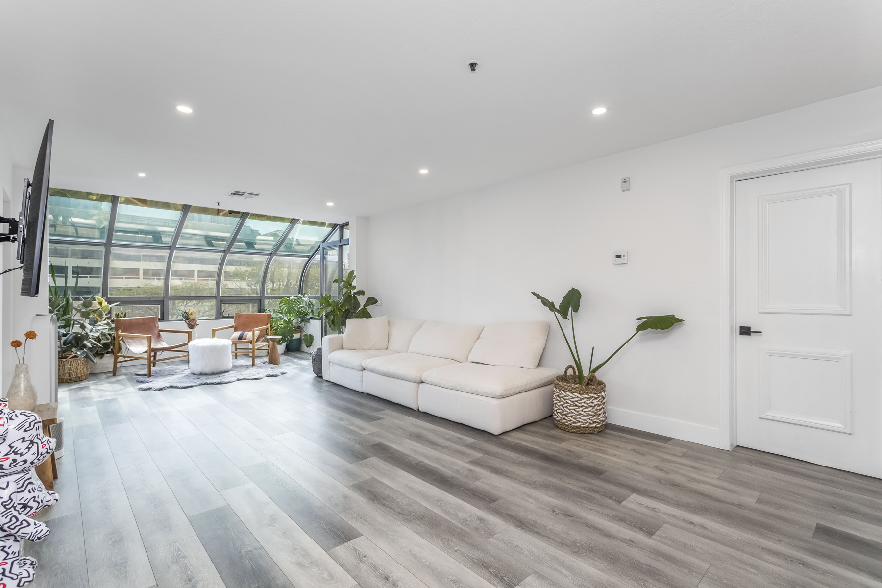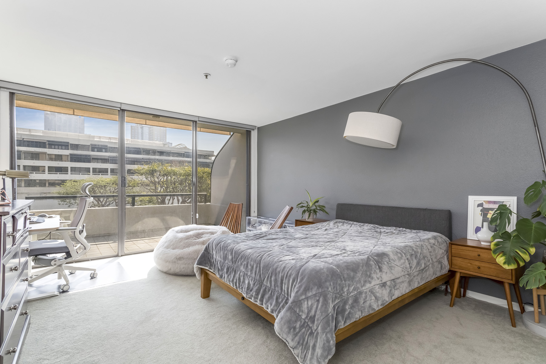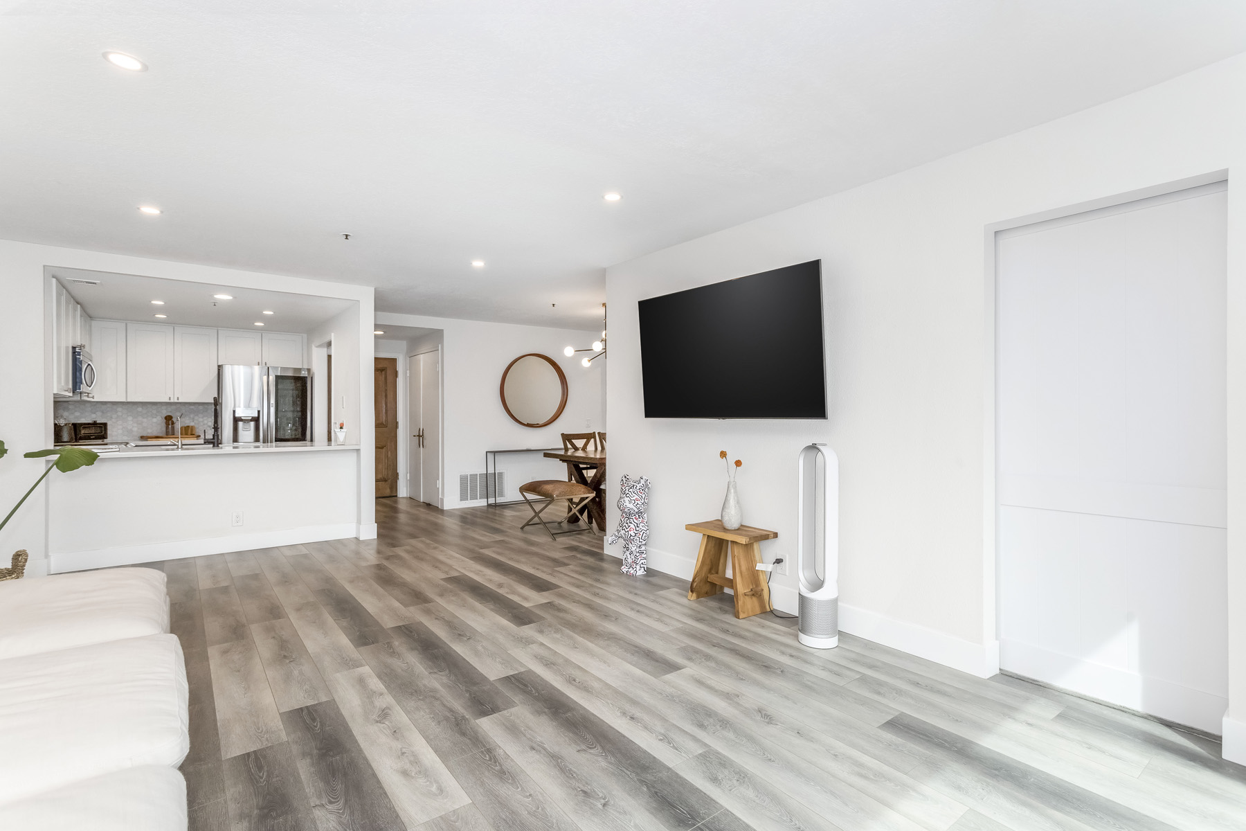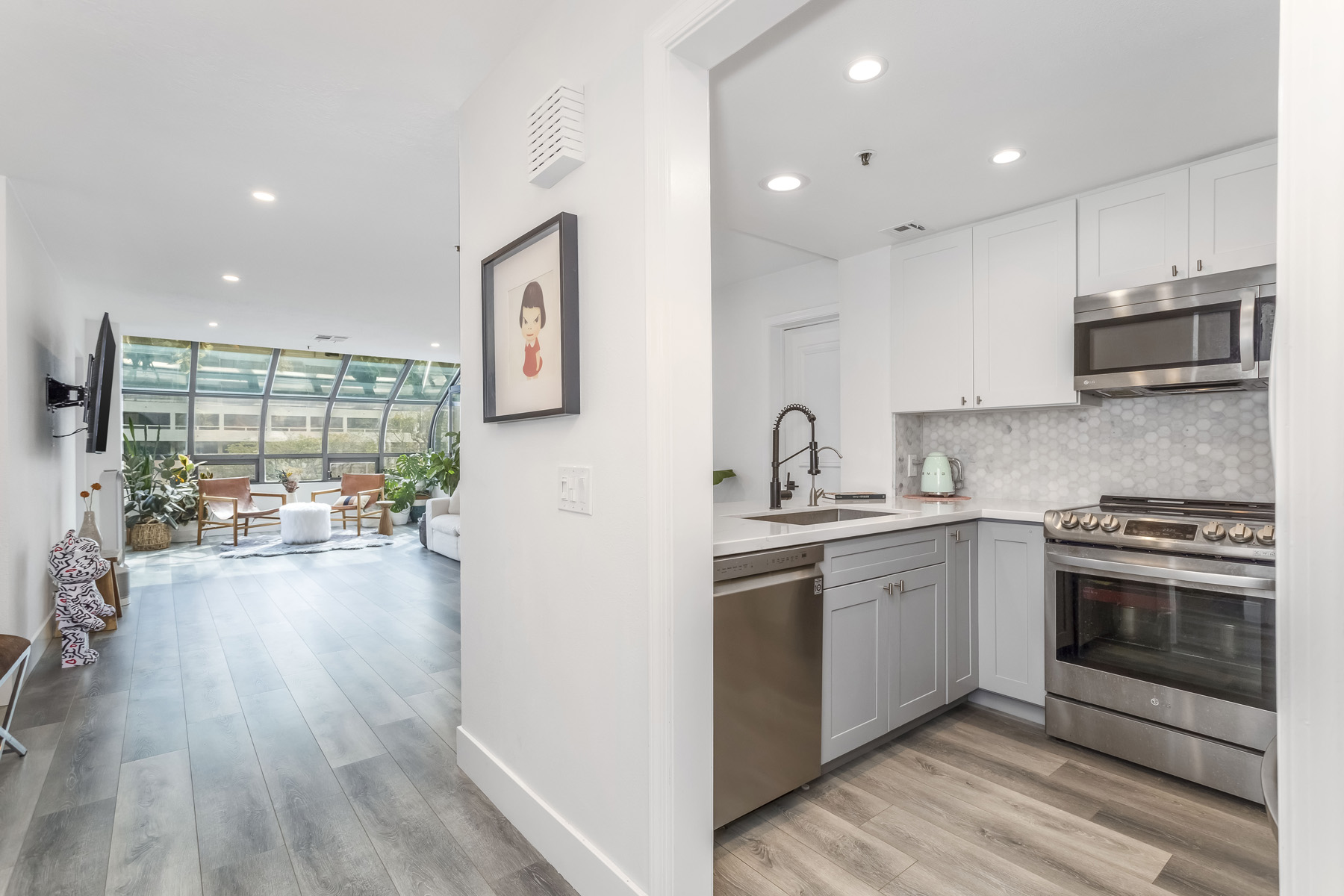 Presenting a rare and fully remodeled two-bedroom, two-bathroom condo at Promenade West in the heart of Bunker Hill. This residence features an open floor plan with waterproof and scratch resistant stone flooring throughout the entry, living, and dining areas, along with beautiful tile floors in the bathrooms. The master bath boasts a double vanity, adding a touch of luxury. The unit showcases a large private balcony emitting abundant sunlight with new retractable awnings, creating a solarium-like space to enjoy the outdoors. Building amenities include 24-hour concierge, heated pool, spa, sauna, fitness area, private dog park, and dry cleaning service. With its attractive pricing per square foot, this condo offers a captivating opportunity for urban living in a vibrant setting. Conveniently located near Downtown LA's Cultural Center, MOCA, Walt Disney Concert Hall, The Broad, and more.