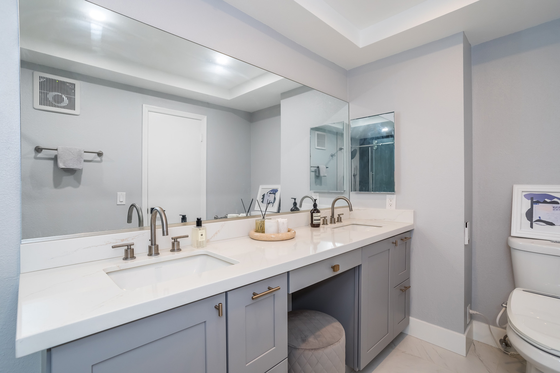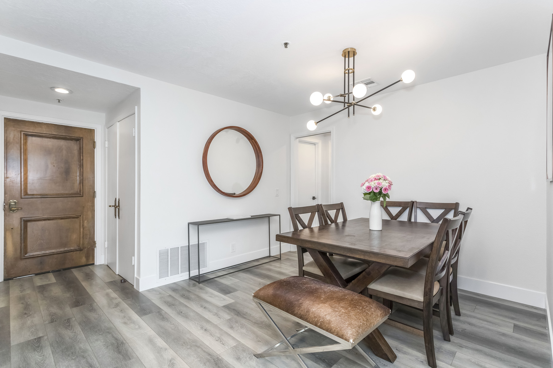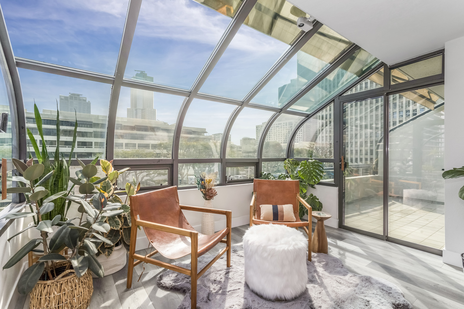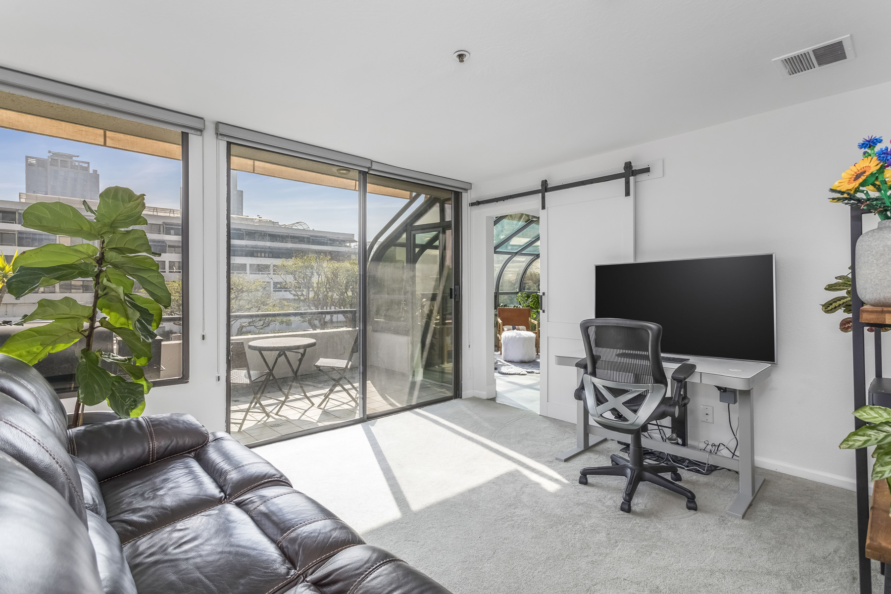 Presenting a rare and fully remodeled two-bedroom, two-bathroom condo at Promenade West in the heart of Bunker Hill. This residence features an open floor plan with waterproof and scratch resistant stone flooring throughout the entry, living, and dining areas, along with beautiful tile floors in the bathrooms. The master bath boasts a double vanity, adding a touch of luxury. The unit showcases a large private balcony emitting abundant sunlight with new retractable awnings, creating a solarium-like space to enjoy the outdoors. Building amenities include 24-hour concierge, heated pool, spa, sauna, fitness area, private dog park, and dry cleaning service. With its attractive pricing per square foot, this condo offers a captivating opportunity for urban living in a vibrant setting. Conveniently located near Downtown LA's Cultural Center, MOCA, Walt Disney Concert Hall, The Broad, and more.