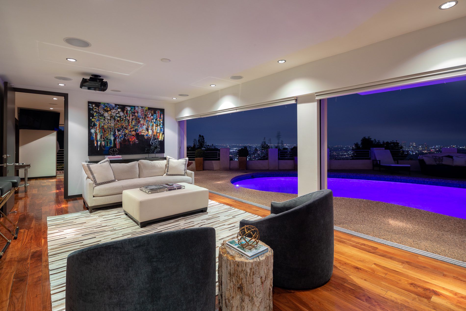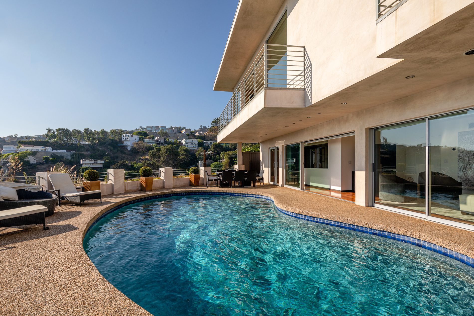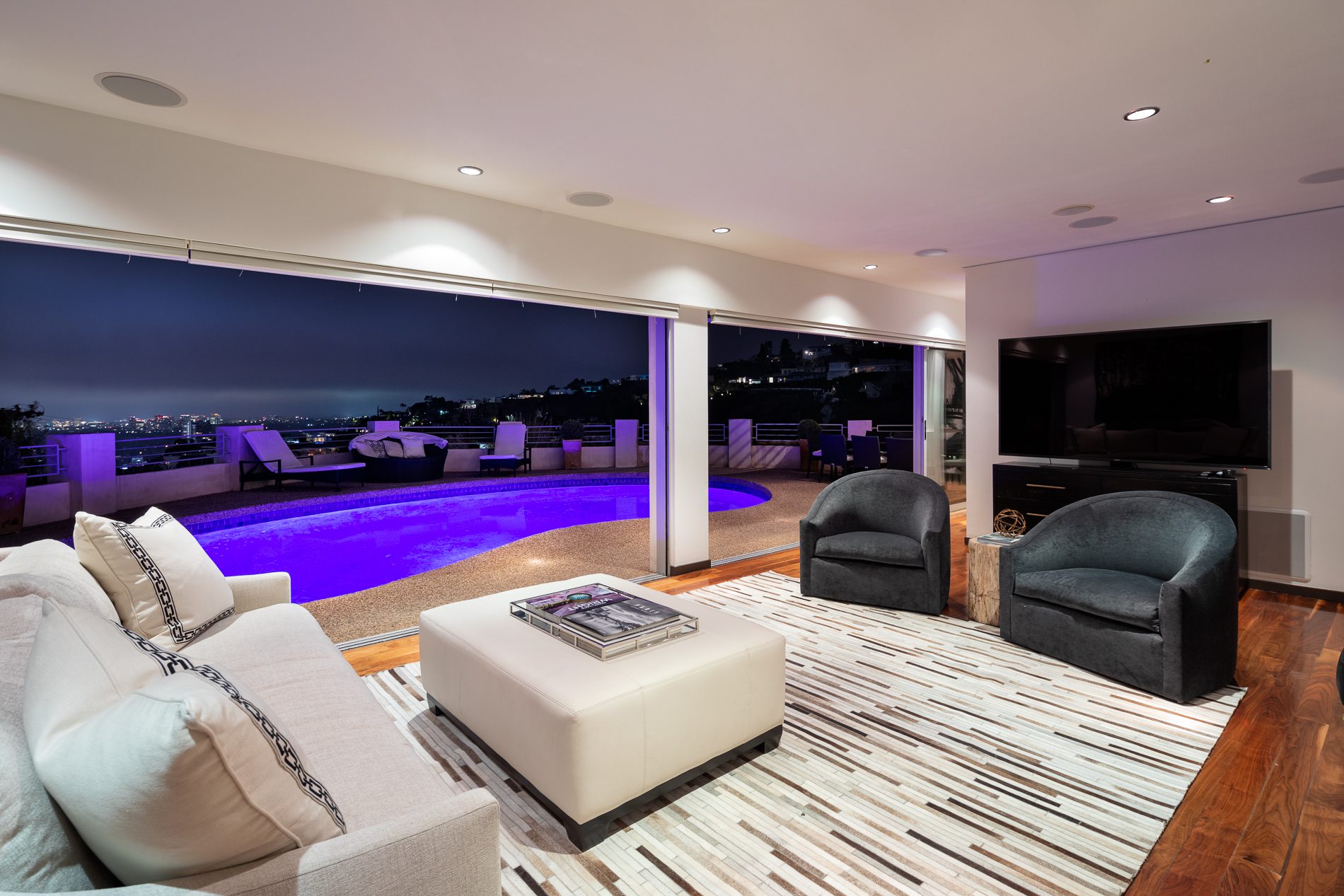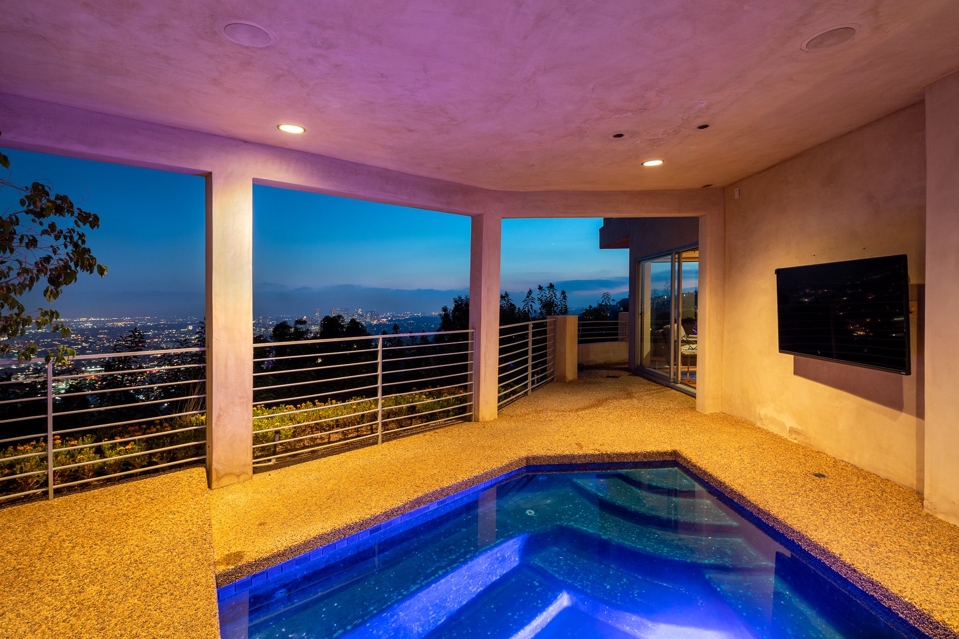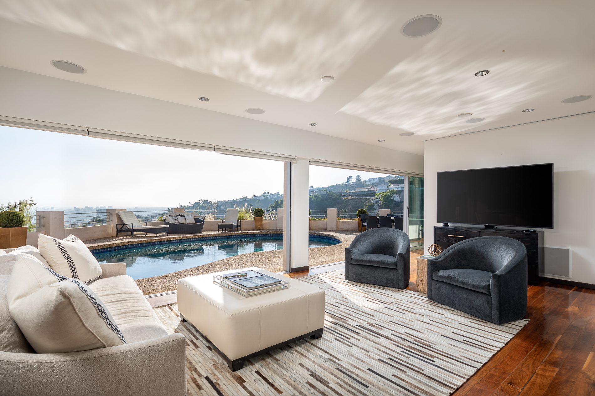 Set minutes above the Sunset Strip, this contemporary residence sits on a raised promontory providing spectacular jetliner views from Century City to the Pacific Ocean. Gated for privacy, with parking for multiple cars, this tasteful 3 bed/3 bath house features a spacious open floor plan with floor to ceiling glass, allowing natural light to pour into the entire house and showcase the views. Other features include a large master suite, with en-suite bathroom and private balcony, Brazilian walnut flooring, speakers throughout, a media room, and large outdoor entertaining area with pool, spa, all perfect entertaining spaces for guests to enjoy the panoramic views. This is California indoor/outdoor living at its finest only minutes away from the excitement of Sunset and Beverly Hills! House is currently Unfurnished. The home can be delivered furnished. Furnished price will be based on clients needs and requires higher security deposit.