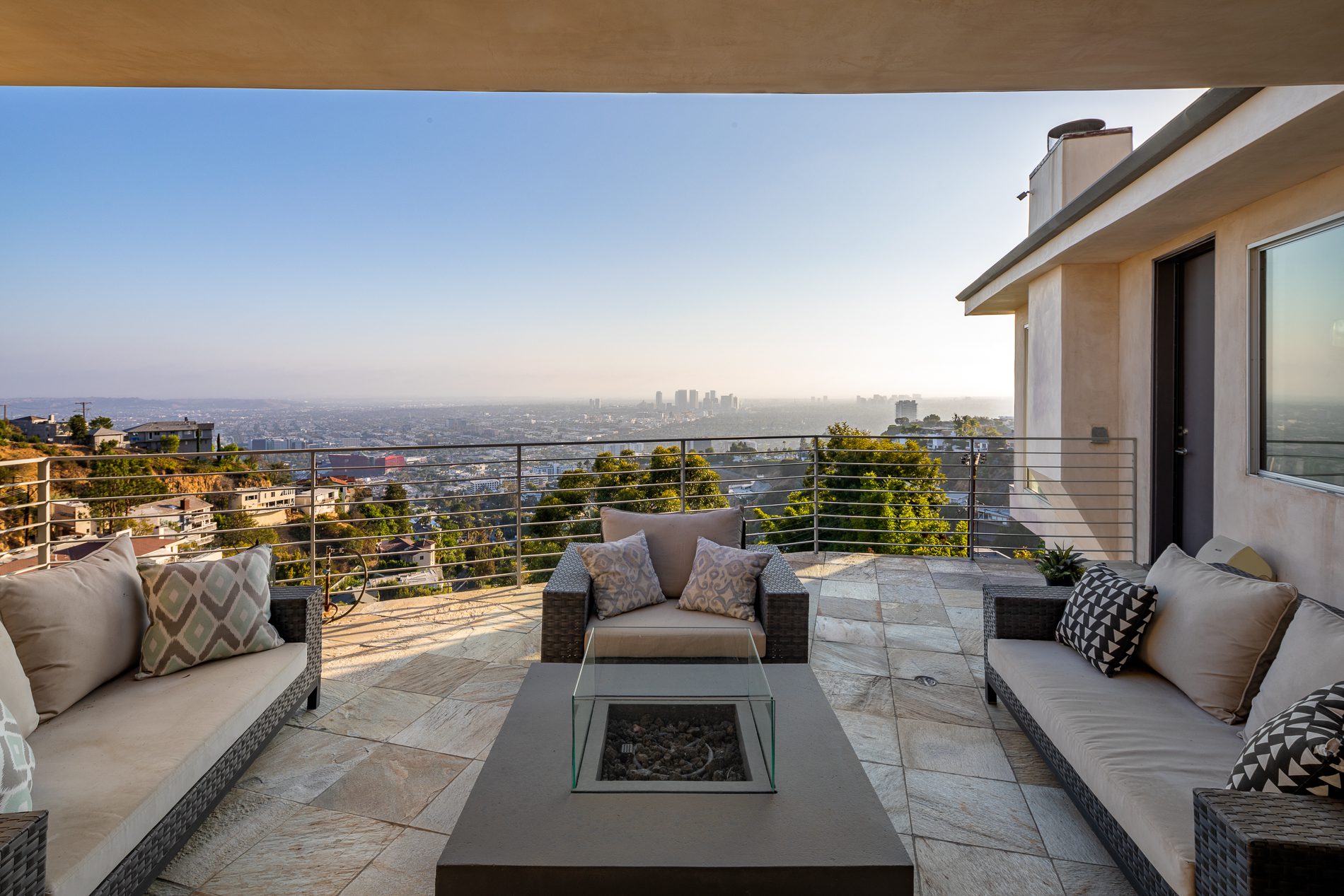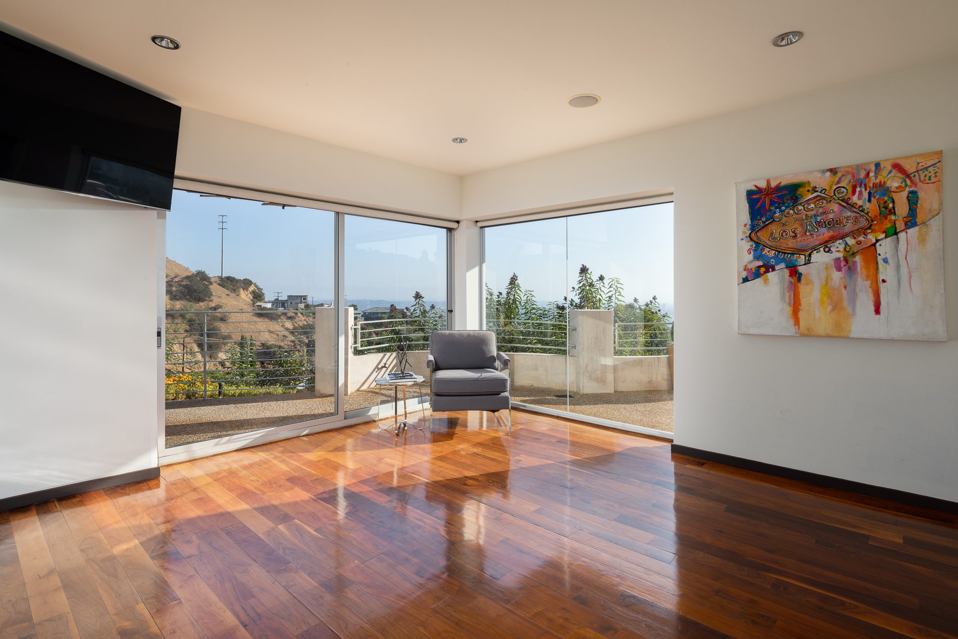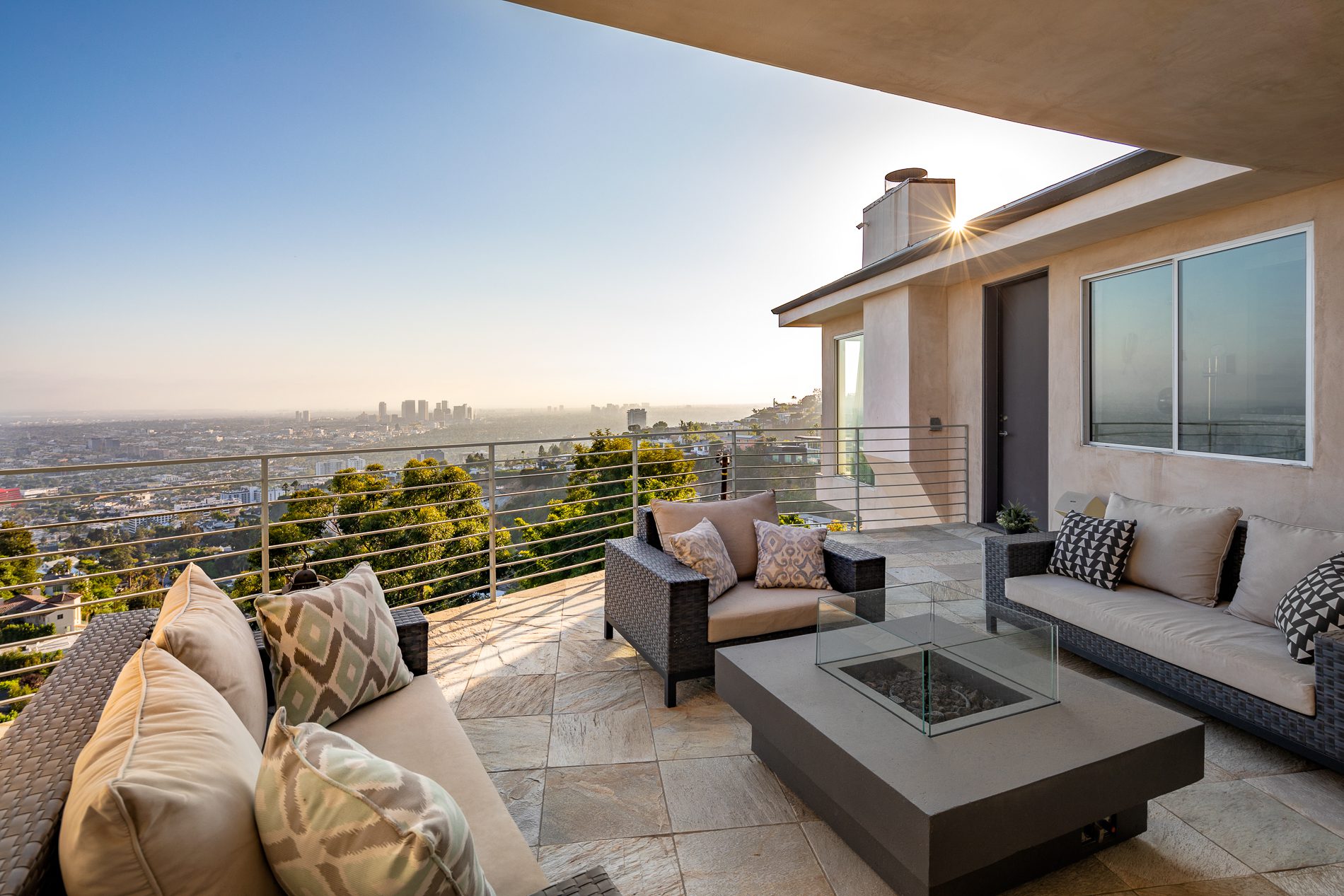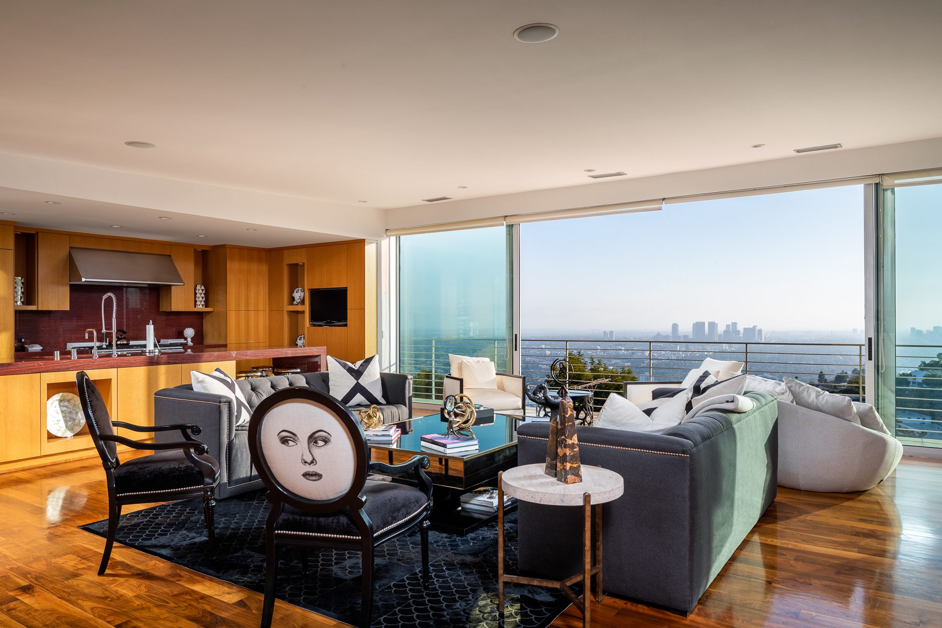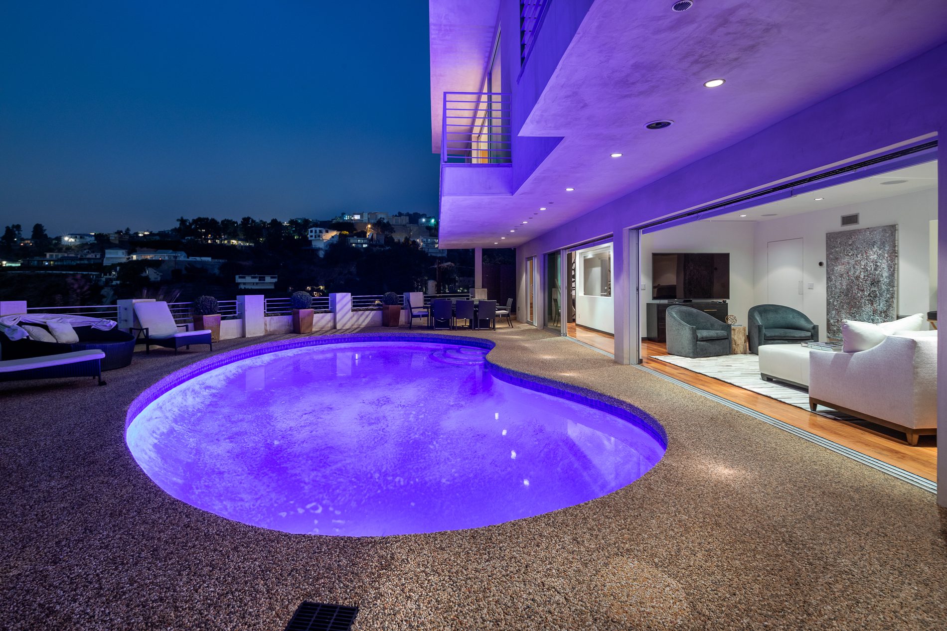 Set minutes above the Sunset Strip, this contemporary residence sits on a raised promontory providing spectacular jetliner views from Century City to the Pacific Ocean. Gated for privacy, with parking for multiple cars, this tasteful 3 bed/3 bath house features a spacious open floor plan with floor to ceiling glass, allowing natural light to pour into the entire house and showcase the views. Other features include a large master suite, with en-suite bathroom and private balcony, Brazilian walnut flooring, speakers throughout, a media room, and large outdoor entertaining area with pool, spa, all perfect entertaining spaces for guests to enjoy the panoramic views. This is California indoor/outdoor living at its finest only minutes away from the excitement of Sunset and Beverly Hills! House is currently Unfurnished. The home can be delivered furnished. Furnished price will be based on clients needs and requires higher security deposit.