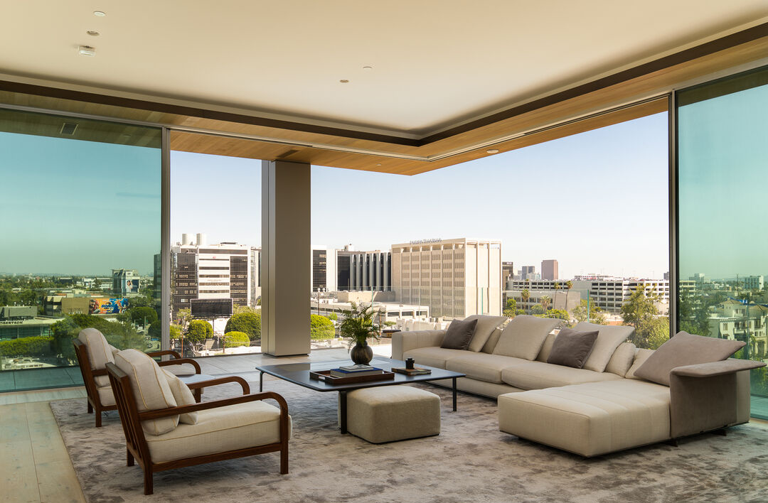 8899 Beverly is world-renown architects Olson Kundig's "Love Letter to Los Angeles". Residence 5D is an architecture lover's dream, encompassing both the new addition to the Tower as well as the mid-century showpiece the city has loved for many years. It is a double-primary suite plan with formal dining room and custom floating mirrors. The AD 100 architect's Leed Gold-certified masterpiece culminates in the finest new development to hit the Los Angeles skyline. The Tower Residences feature expansive views across the Los Angeles horizon and encompass LA's most iconic landmarks. The sliding walls of the extraordinary, Swiss-made, Vitrocsa glass system bring the outdoors into each residence. The finest, hand-selected, materials include travertine throughout the residences and common areas, Sub-Zero, Miele and Gaggenau appliances, Calacatta Gold marble, bronze residence entry surrounds and custom door handles of bronze and hand-stitched leather. Ceiling heights soar up to 11 feet, including the custom recessed and cove lighting. Building amenities include 24-hour lobby staff, concierge, fitness center outfitted by Techno Gym and private studio space. 8899 has an extreme focus on privacy, safety and exclusivity for its residents. Experience over a quarter-acre of outdoor space, lushly landscaped by Coen + Partners with resort-style pool, oversized spa, garden seating with fireplaces and custom outdoor kitchen and dining. Enjoy short walks to premier dining and shopping, including The Ivy, Craig's, Bristol Farms, Chanel and more. Experience the exclusivity and luxury of Olson Kundig in this ultra-prime, walkable, Los Angeles location. 8899 Beverly is a feat never to be accomplished again. Please note that not all photographs represent the listed residence.