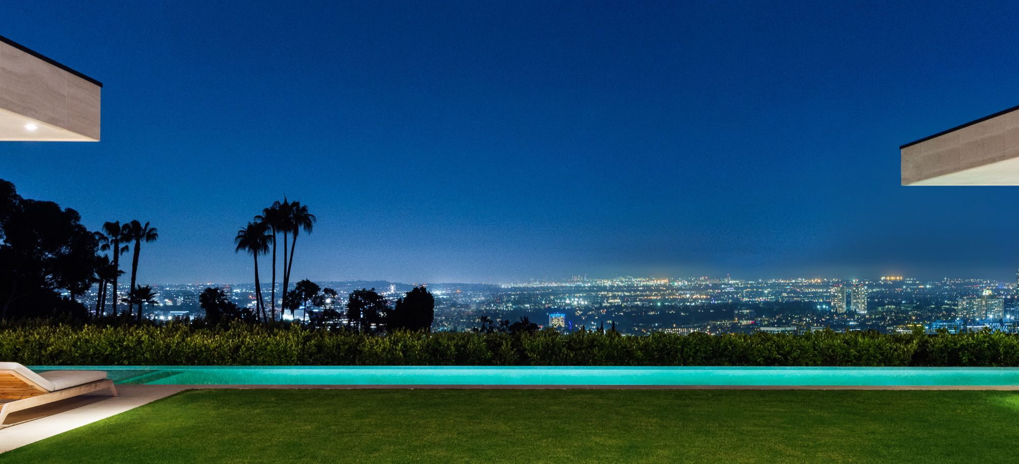 Ascend a long private driveway to a grand motor court leading to this warm sophisticated modern home nestled on an acre of land surrounded by lush landscape overlooking LA city. Unmatched design and quality. Located in the best location of the Sunset Strip.