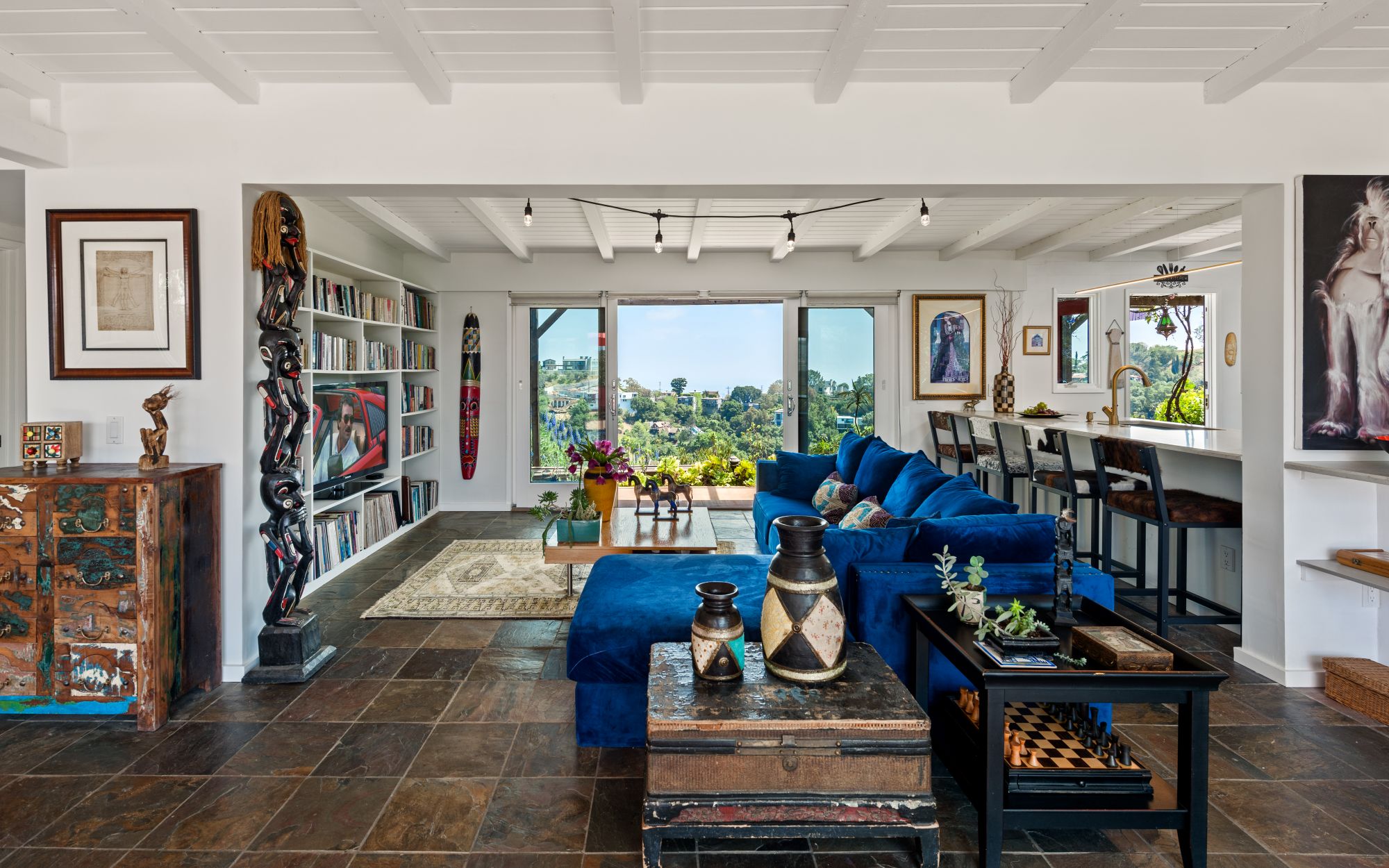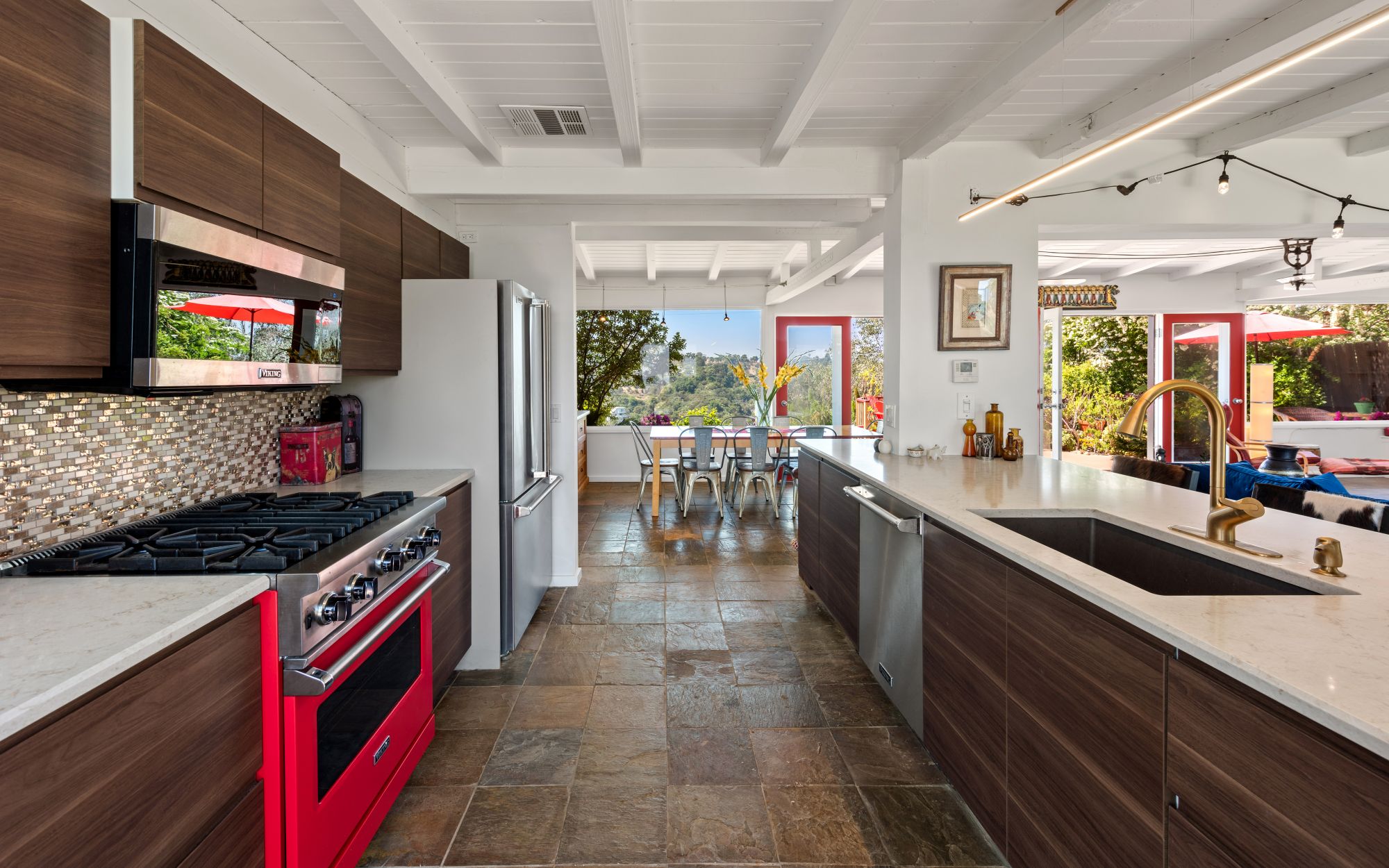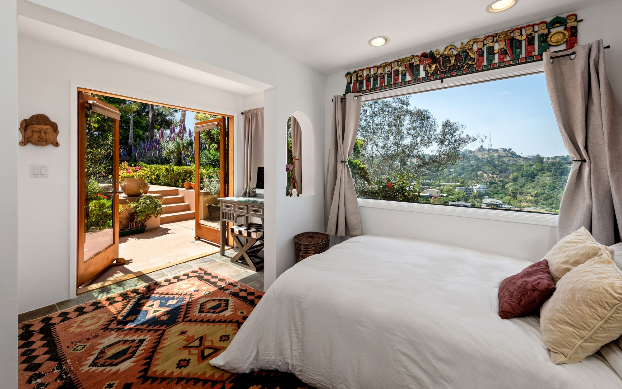Welcome to this Shangri-La Estate, on top of the world, above the clouds where stars and legends of Laurel Canyon gather. It is situated minutes away from the renowned Sunset Strip, where Sunset Plaza kisses Wonderland Avenue, in the heart and soul of the Hollywood Hills. This canyon is where music, art, and dance have been created for the world. Nestled on a massive double lot, this mid-century ranch offers quintessential seamless indoor/outdoor living and your own private pool and spa with cinematic views on both sides of the property. This is not just a house but a sanctuary, where you can be at peace with your spirit animal and reconnect with nature. Hear the sounds of wind rustling through the trees, hawks dancing above, owls whispering at night, and deer lounging nearby. The home boasts 3 beds, 3 baths, and a newly remodeled kitchen featuring a top-of-the-line Viking stove and appliances. Entertain outdoors under the grapevine-adorned dining pergola, providing delicious red grapes to savor on a hot summer day. The spacious upstairs primary suite offers ample closets, and every room and every bathroom have epic views of either the city lights or the canyons. Parking for 4 vehicles is available, and the home is just steps away from the desirable Wonderland Elementary School and two of LA's hidden gems: Pace restaurant and the historic Canyon Country Store, where the iconic rock stars of the 1960s met daily and inspired Jim Morrison's "Love Street: The Store Where the Creatures Meet." That tradition continues to this day. Here's your chance to become one of the legendary local creatures of the Laurel Canyon community and manifest your destiny with Lily's coffee and the best French pastries in town. "There are things known and things unknown, and in between are the doors." Don't let this private Shangri-La with its magical vibe on top of the world get away.