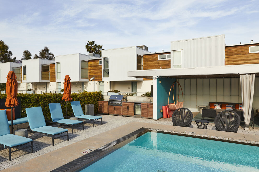 Location. Views. Style. This extremely RARE top floor, industrial chic, modern contemporary loft with polished concrete floors and towering 10' floor-to-ceiling windows with sun-drenched views overlooking the Santa Monica strip and Design Center comes with 2 parking spaces, 2 lockers, stainless steel appliances, ensuite W/D, an upgraded bathroom, a comfortable-sized terrace, smart control HVAC system, a walk-in closet, sliding doors, new roller shades and light fixtures, plus a pool with breathtaking views of the Hollywood Hills. Supermarkets, nightlife, eateries, coffee shops, dry cleaners, retail stores, and easy access to freeways make this unit a gem of a find in the heart of high demand West Hollywood.