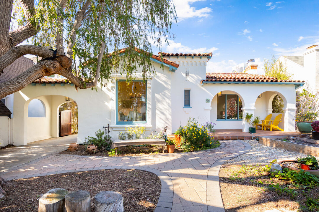 Single Story Spanish Stunner in Miracle Mile Near Museum Row. Located on a beautiful tree lined street central to everything, this fully renovated single story, 3 bed, 2 bath home with high ceilings and detached office/gym is perfect for today's lifestyle. Space for a pool in the large private gated flat backyard. Renovated down to the studs and lived in as a labor of love by the current owners, features include: wood floors throughout, copper piping, fully updated electrical, 3 large bedrooms w/ ample closet space, alarm system, period details, built ins, gas + wood burning fireplace, large picture window in formal dining room overlooking an Australian Bottlebrush tree, large front and rear yards with diverse flora, Silestone quartz counters in the chef's kitchen, custom cabinetry, sunny south facing breakfast nook, farmhouse sink, high end stainless steel appliances: Bosche dishwasher, LG refrigerator, Electrolux 6 burner gas stove and gas oven w/ additional warming drawer, pantry room, hardwired surround speaker system, newer LG washer & dryer, California basement w/ room for a small wine cellar, large primary bedroom w/ en-suite bath w/ Silestone quartz counters, dual vanity sinks, steam shower, jetted tub and direct access from primary suite to sunny backyard, secondary bathroom with Silestone quartz counters and shower w/ bathtub. Large flat backyard, hedged for privacy, includes a large enclosed one-car garage and private office/gym room. Parking for two cars in front and four cars behind the gate. 7,000 square foot lot. Welcome home!