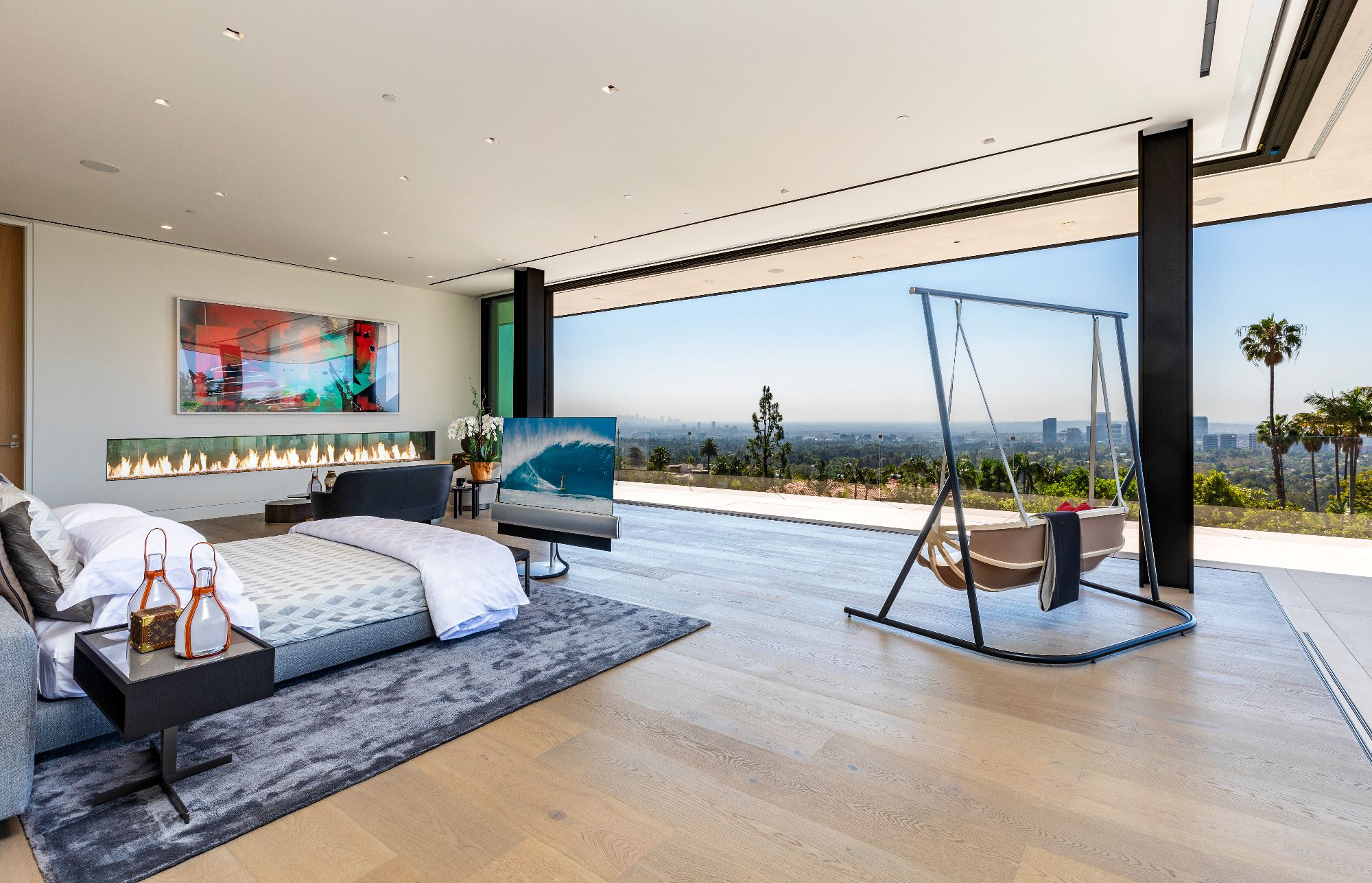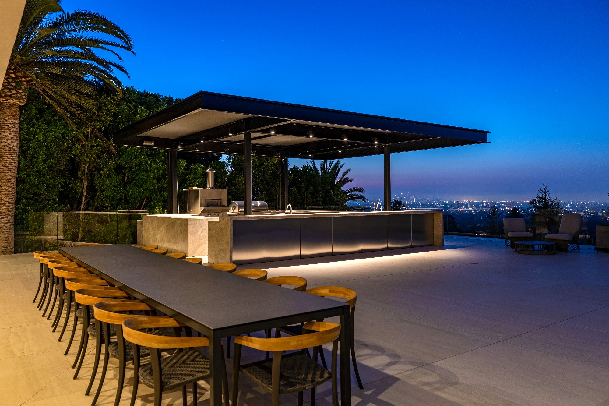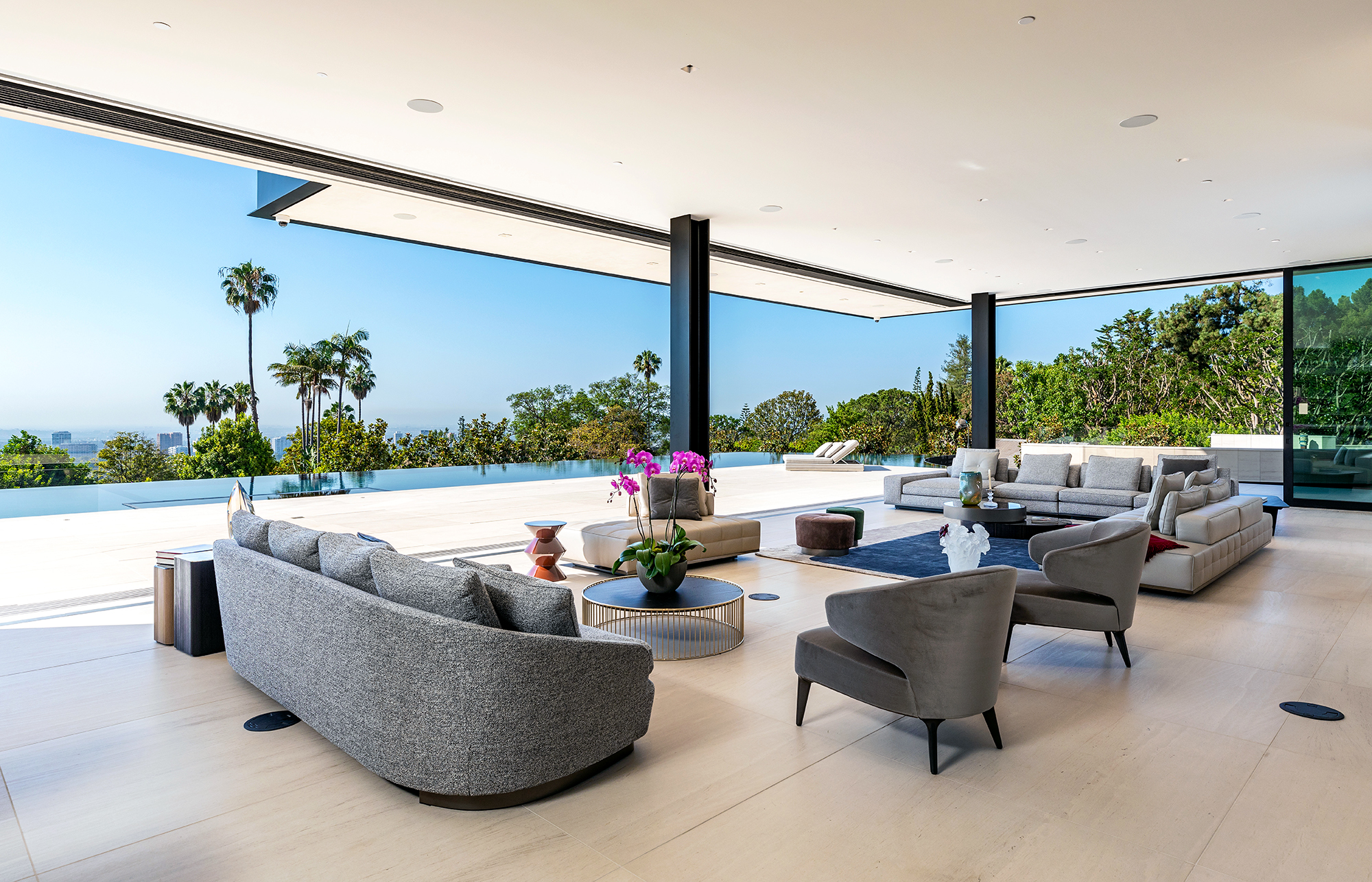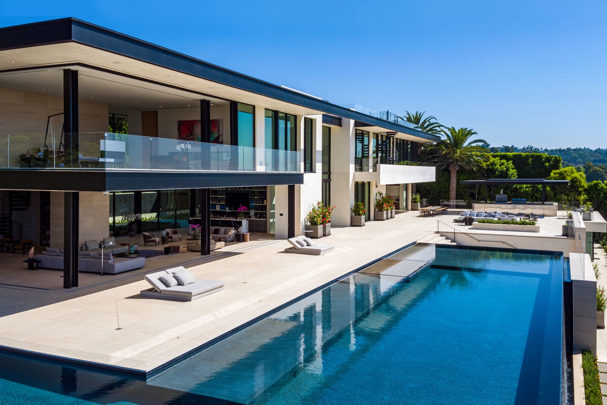 Modern. Exotic. Timeless. Formed with surgical precision. From the lush landscape gardens to the striking water features. An era defining estate that exudes quality from every angle, 908 Bel Air is a masterpiece in every sense of the word. The grand scale is evident from the 29' entryway ceilings to the expansive views spanning the snowcapped mountains of the Angeles forest to the offshore oasis of Catalina. 34,000 square feet of pure perfection. Just moments from Sunset Boulevard, this hilltop nirvana was the ultimate canvas. A culmination of a lifetime of seasoned style, knowledge, skills, and people: the groundwork was laid for this masterpiece. Framing the finest views California has to offer, every space was painstakingly formed around the glorious vistas. From the master suites to the expansive 90-foot infinity pool, nature's beauty greets you at every turn.