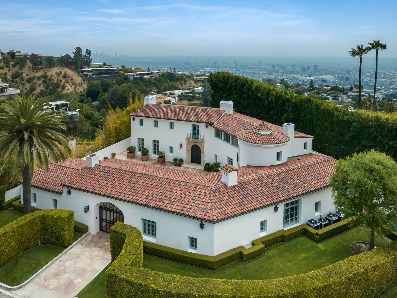 IMPECCABLE ATTENTION TO DETAIL AND NO EXPENSE SPARED ON THIS ICONIC MEDITERRANEAN VILLA LOCATED IN THE COVETED BIRD STREETS. A gated driveway leads you to a stunning courtyard and flagstone entry through monumental double doors framed in limestone. Inside, soaring 12-foot beamed ceilings, solid core doors, walnut, stone and marble flooring throughout. The main floor has a seamless flow, encompassing the living room, library, and a separate wet bar for entertaining. A formal dining room, butler's pantry, and a chef's kitchen with double sinks and exquisite appointments seamlessly connect to the family room, featuring another gorgeous fireplace. A guest suite, two powder rooms, and a separate laundry room offer both convenience and comfort, while a rotunda off the center hall adds architectural intrigue. Ascending the elegant stairwell to the second floor reveals the primary retreat. Here, a spacious sanctuary awaits, complete with a lounge area, wet bar, and 2 fireplaces. The expansive bedroom with his and her baths with luxurious soaking tub and French doors leads to triple Juliette balconies with sweeping city views. Two additional bedroom suites upstairs ensure ample accommodations for guests or family members. The lower level, off the rotunda, unveils further indulgence, including a third powder room, a cinema with a wet bar, and a temperature-controlled wine cellar adorned with built-ins. Throughout the home, quality casement windows invite natural light, while stone fireplaces add warmth and elegance. doors with designer hardware, along with beautiful plank walnut floors and perfectly curated marble and stone, elevate the interior to unmatched levels of sophistication. Outside, flagstone terraces envelop the home, creating an enchanting entertainment space adjacent to the infinity-edge pool, which overlooks the magical cityscape below. A three-car garage, clay tile roof, and expansive grassy area add practicality to the property's opulence, while substantial exterior lighting enhances its allure after dark. This estate is not just a home; it's a masterpiece of quality, design, and craftsmanship, meticulously curated with a highly sophisticated Crestron system throughout, ensuring effortless control of every aspect of modern living. With its unmatched blend of luxury, comfort, and technology, this property offers incomparable value for discerning buyers seeking California living in great style in the coveted Bird Streets.