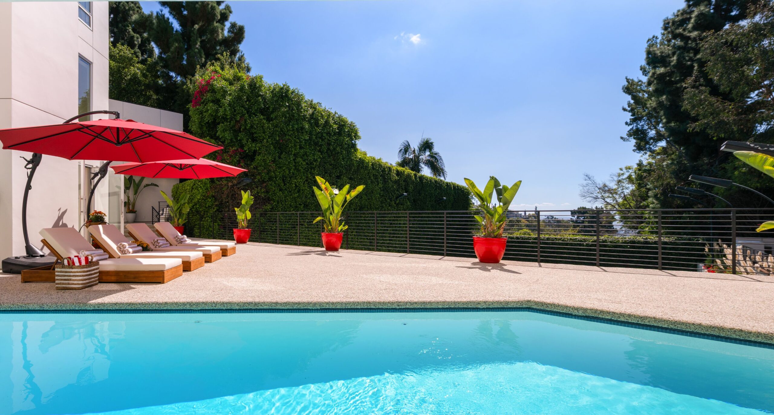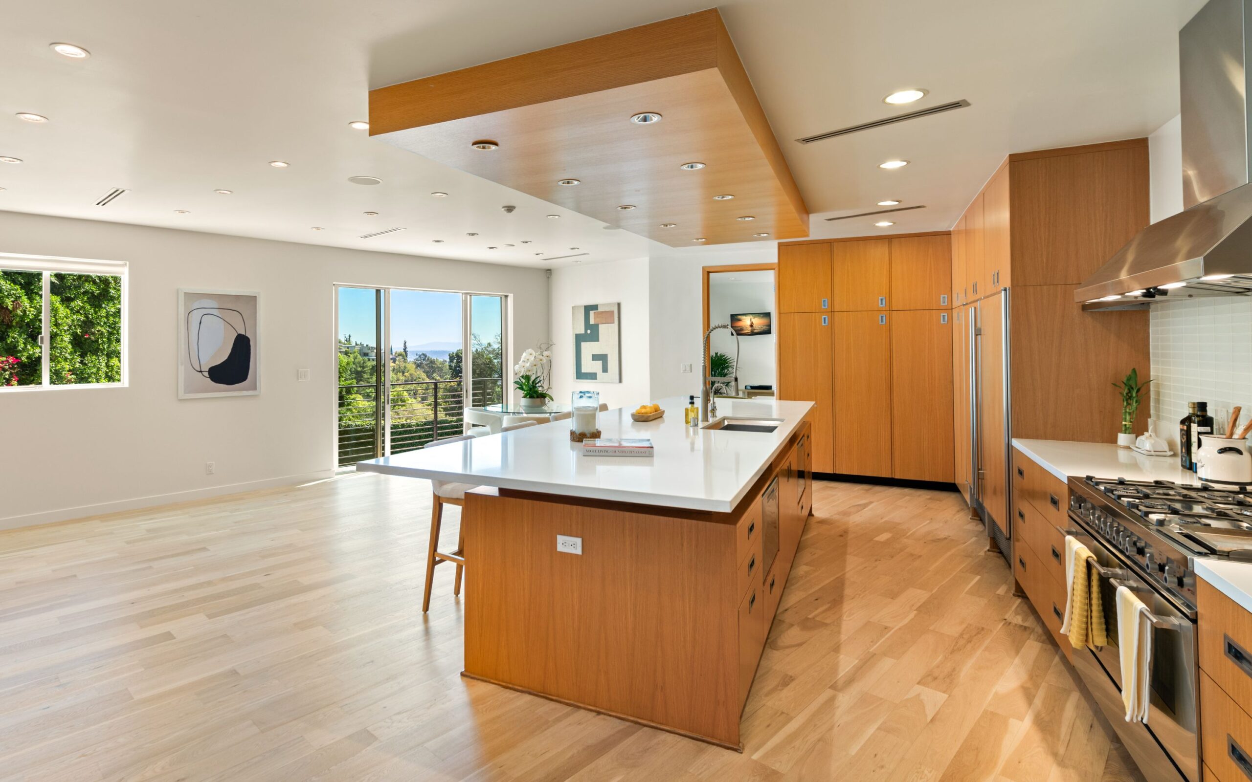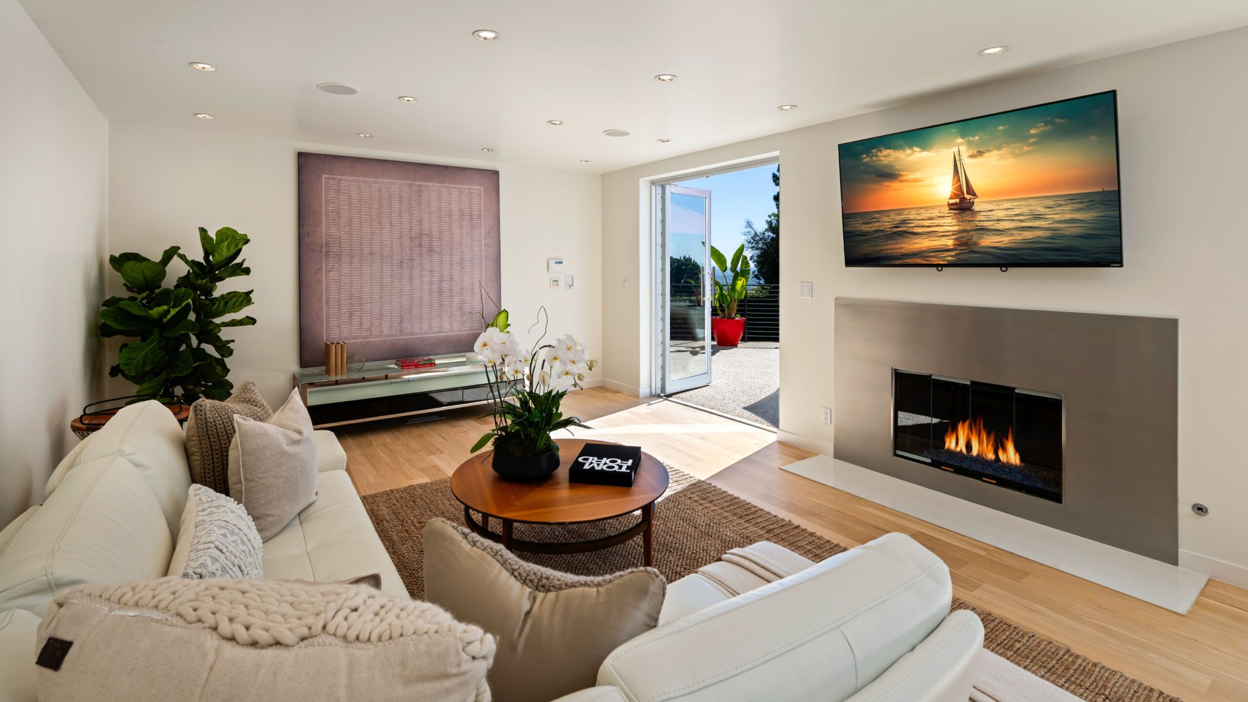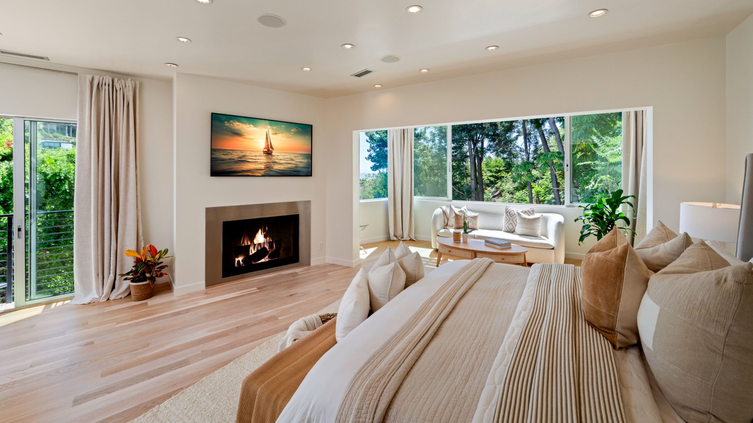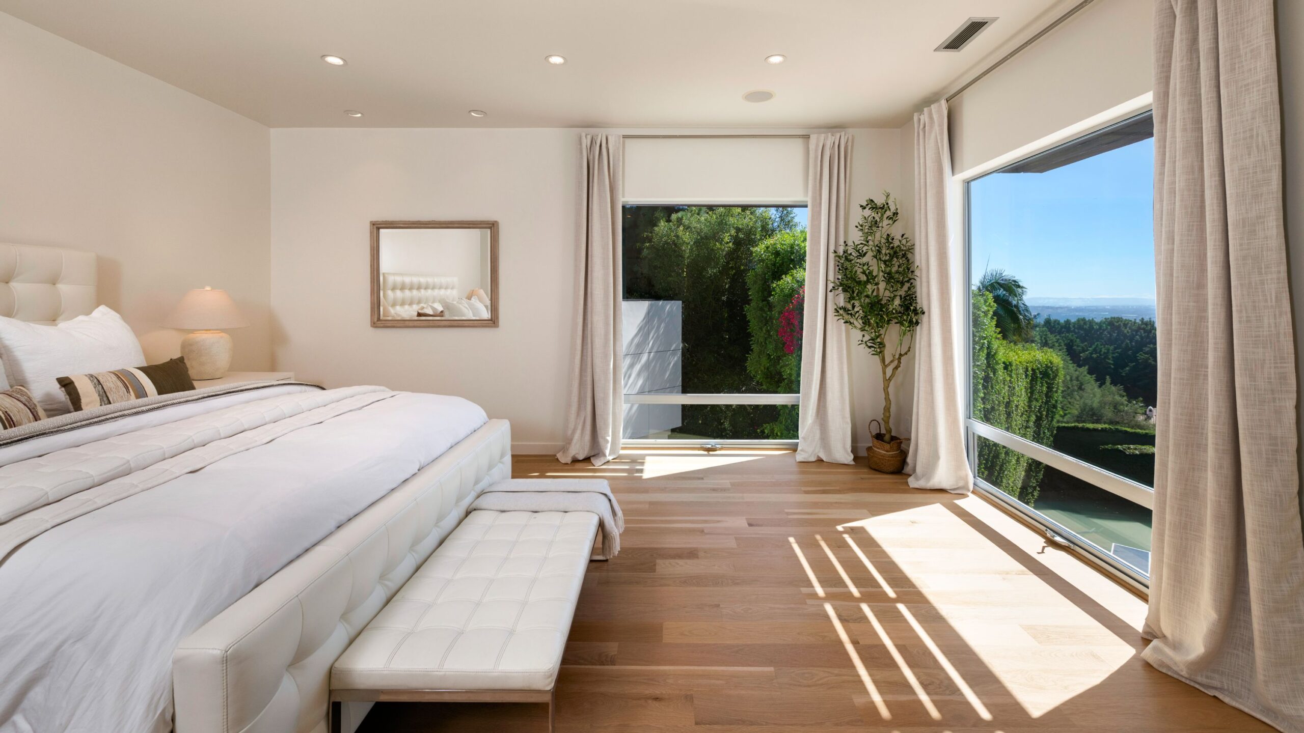 Set behind gates in the exclusive Bird Streets, Warbler Way is a .57-acre tennis court compound where architectural sophistication meets resort-style living. Bold and timeless, this modern masterpiece blends luxurious comfort with sleek design and total privacy. Walls of glass frame sweeping views of the hills and city skyline, while natural light floods the open interiors finished in new organic modern wood floors and curated details throughout. The 4-bedroom residence spans 6,200 square feet with an open-concept layout that includes a gourmet kitchen with Sub-Zero and Viking appliances and an elegant center island, a dining area, and an expansive living room. Amenities include a 12-seat movie theater, full gym, game room with locker and steam, office, maid's quarters, and an additional lower-level family room. A detached guesthouse features a private entrance, walls of glass showcasing sweeping views, and a kitchen and bath perfect for visitors, extended stays, or a serene retreat. The grounds are designed for effortless entertaining, showcasing lush new landscaping, dramatic lighting, a resort-style pool with streaming fountains, BBQ deck, outdoor fireplace, and a newly resurfaced tennis court with lights for night play. Parking includes a 3-car garage plus ample room for 5 additional cars, and 2 guest parking spots above. Just off Doheny and the Sunset Strip, and moments from Beverly Hills, this gated estate is a rare offering an architectural sanctuary where design, luxury, and location converge at the height of Los Angeles living.