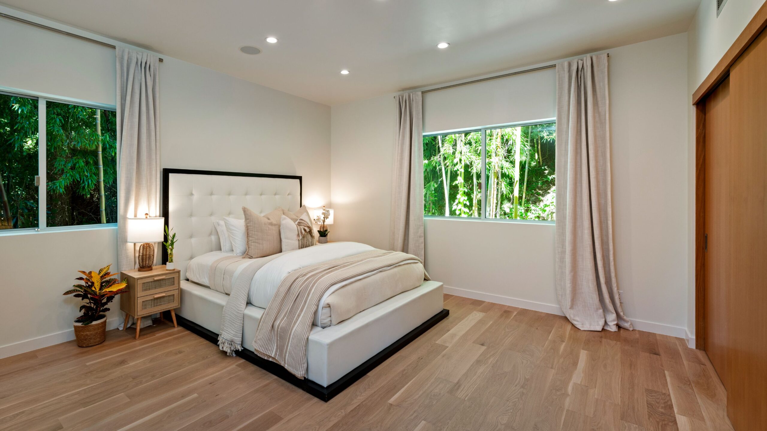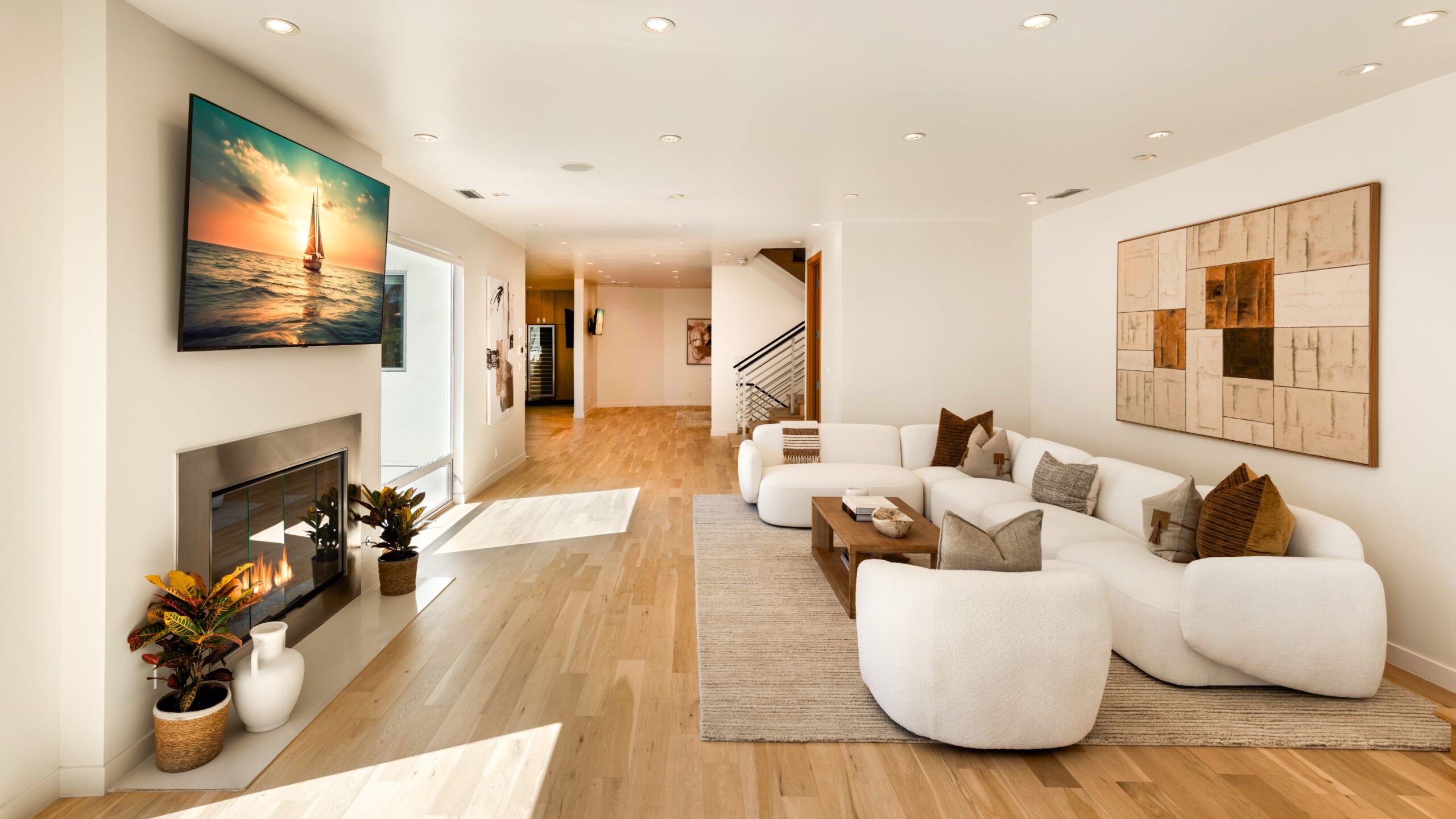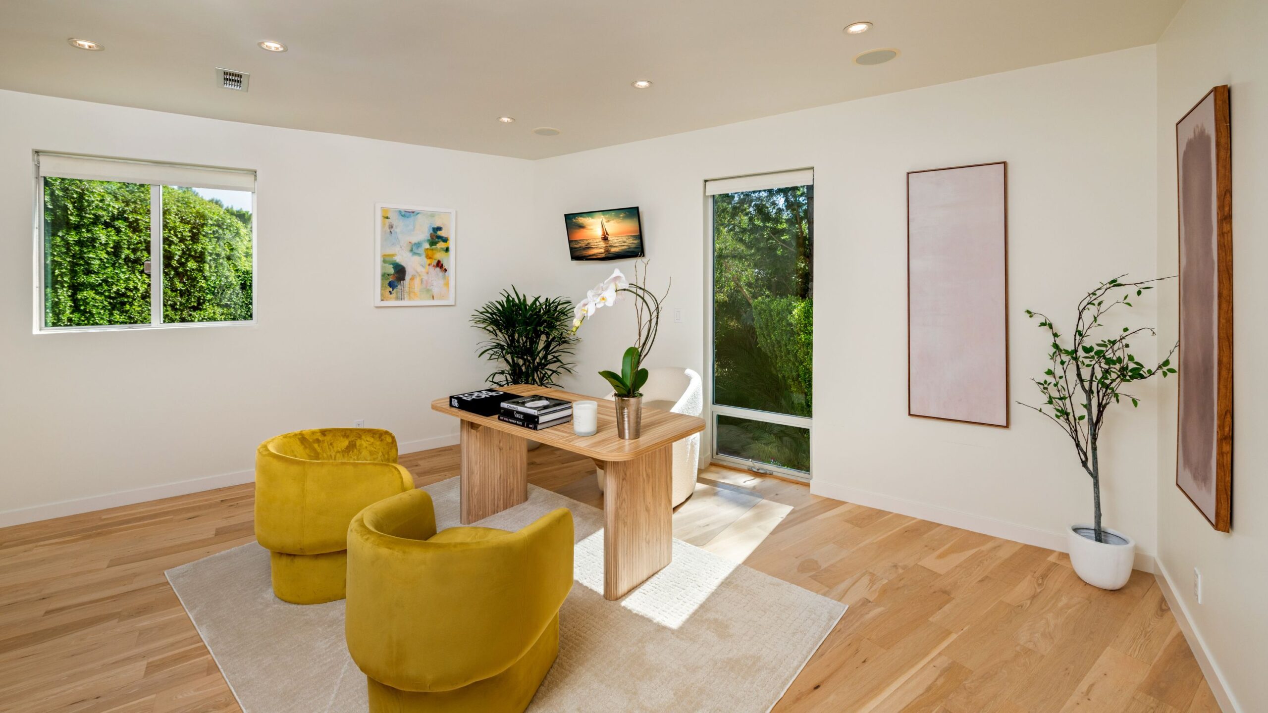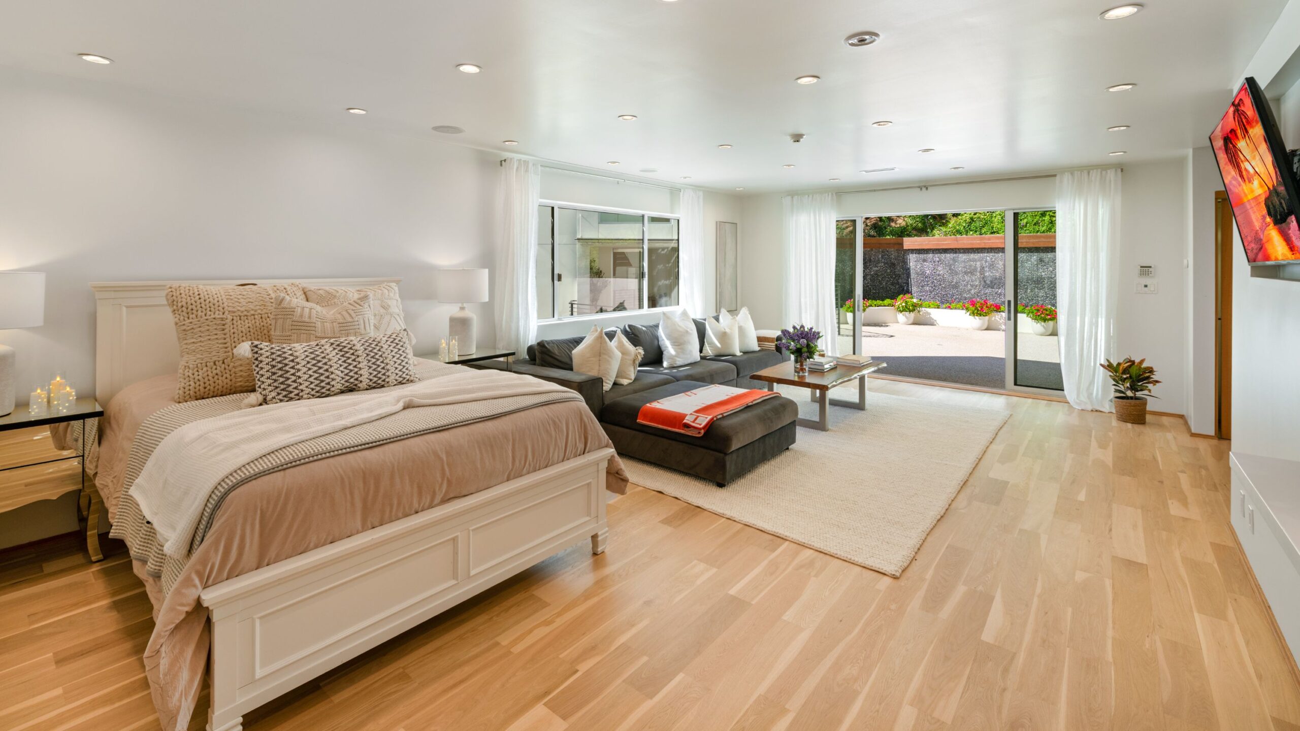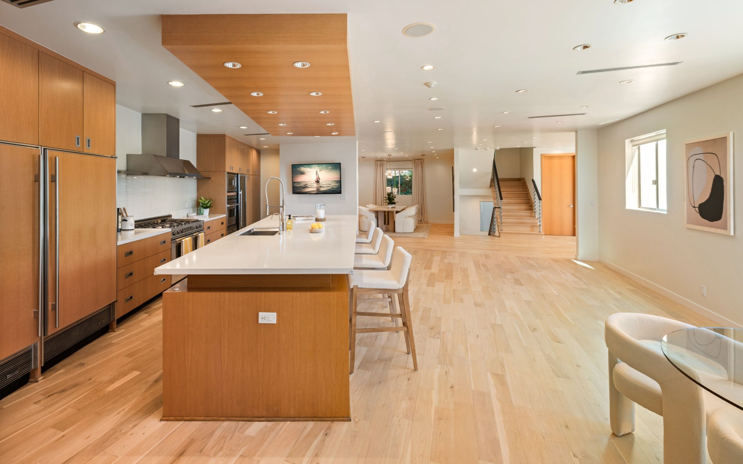 Set behind gates in the exclusive Bird Streets, Warbler Way is a .57-acre tennis court compound where architectural sophistication meets resort-style living. Bold and timeless, this modern masterpiece blends luxurious comfort with sleek design and total privacy. Walls of glass frame sweeping views of the hills and city skyline, while natural light floods the open interiors finished in new organic modern wood floors and curated details throughout. The 4-bedroom residence spans 6,200 square feet with an open-concept layout that includes a gourmet kitchen with Sub-Zero and Viking appliances and an elegant center island, a dining area, and an expansive living room. Amenities include a 12-seat movie theater, full gym, game room with locker and steam, office, maid's quarters, and an additional lower-level family room. A detached guesthouse features a private entrance, walls of glass showcasing sweeping views, and a kitchen and bath perfect for visitors, extended stays, or a serene retreat. The grounds are designed for effortless entertaining, showcasing lush new landscaping, dramatic lighting, a resort-style pool with streaming fountains, BBQ deck, outdoor fireplace, and a newly resurfaced tennis court with lights for night play. Parking includes a 3-car garage plus ample room for 5 additional cars, and 2 guest parking spots above. Just off Doheny and the Sunset Strip, and moments from Beverly Hills, this gated estate is a rare offering an architectural sanctuary where design, luxury, and location converge at the height of Los Angeles living.