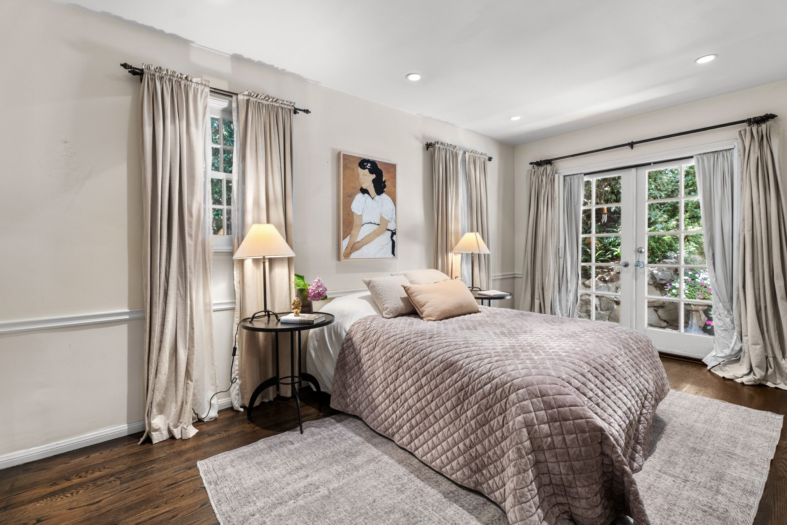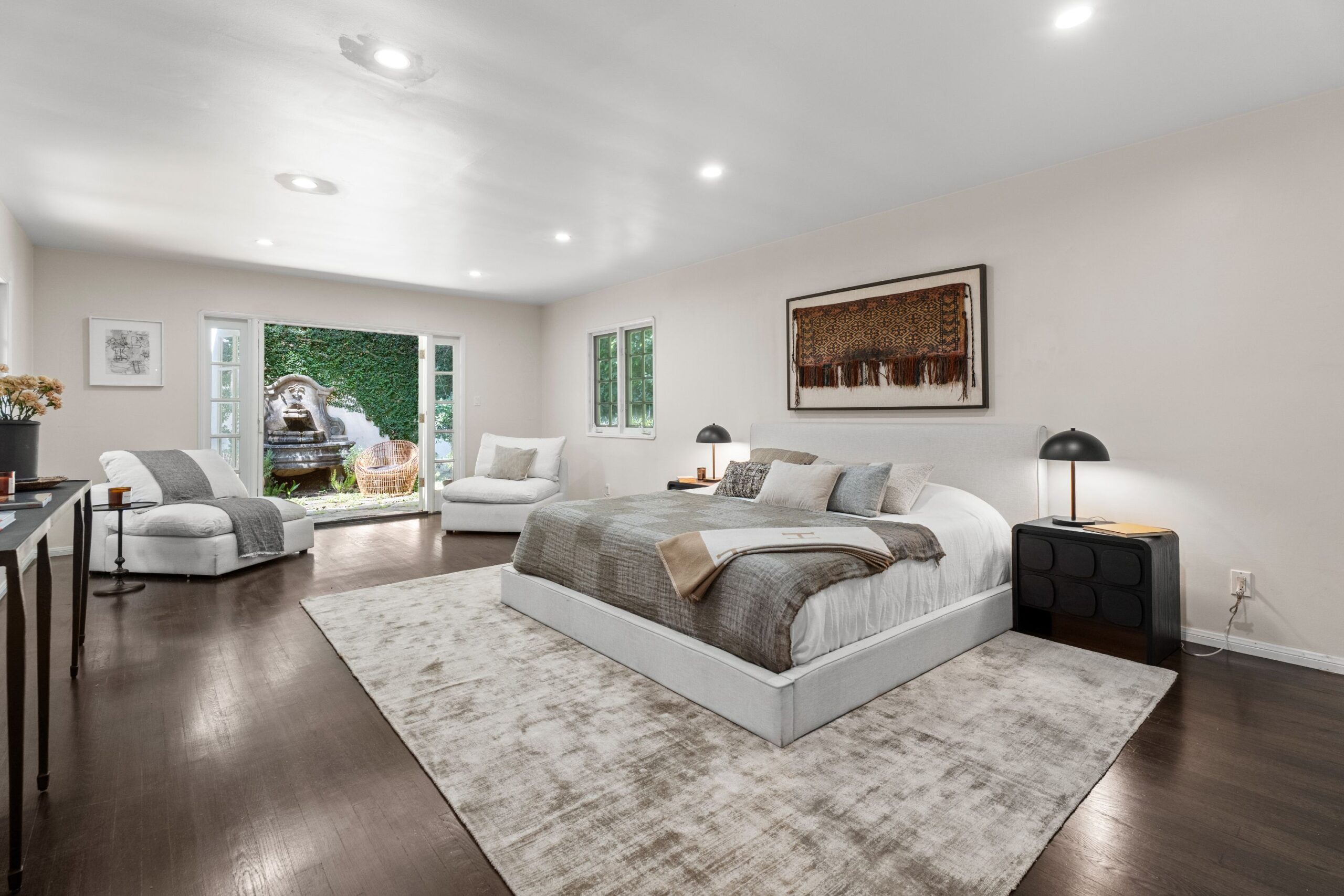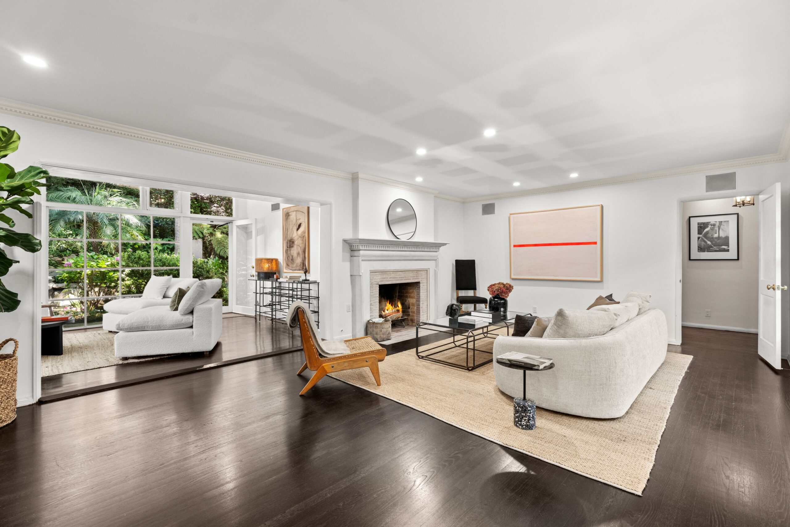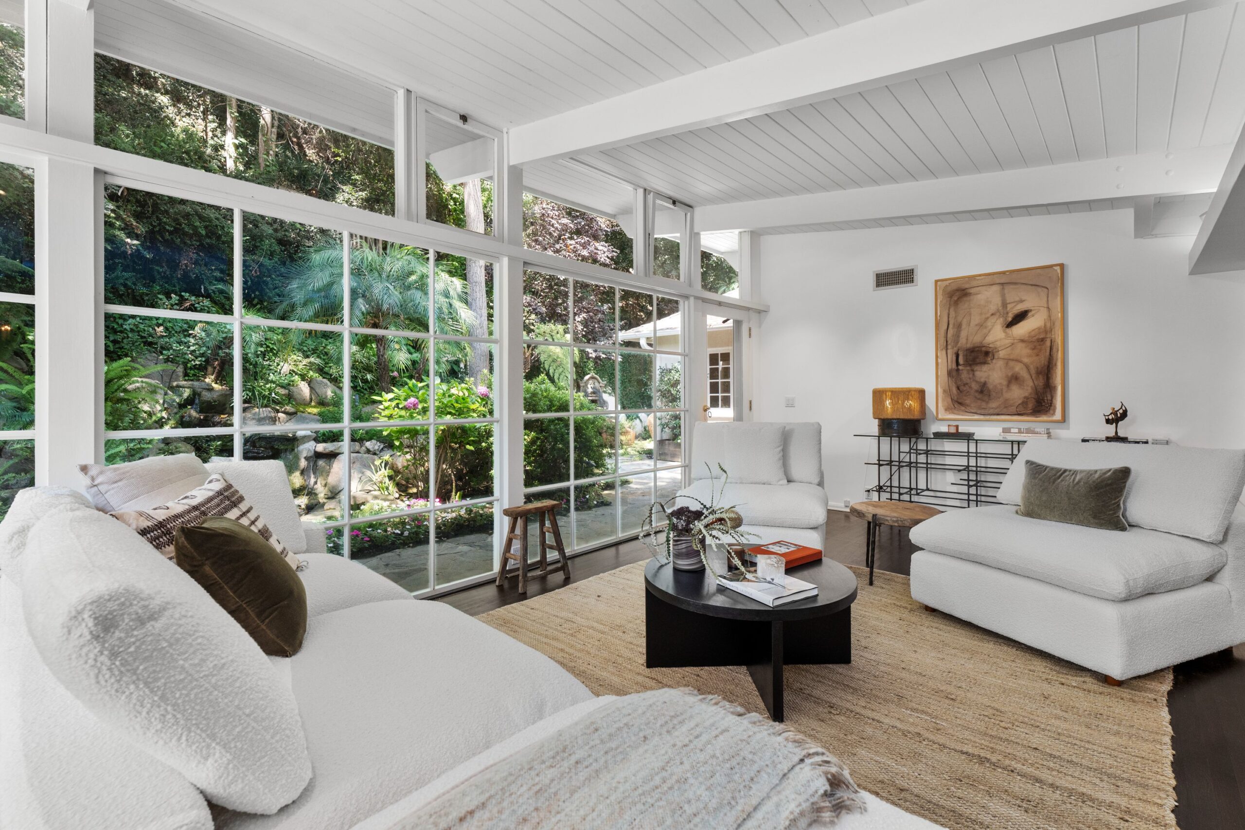 Tucked away in the prestigious enclave of lower Bel Air, this classic residence radiates old-world charm and understated sophistication. Sun-drenched interiors and graceful traditional details create a peaceful escape from the city's pace-offering the ideal turnkey retreat or a stunning canvas for your dream transformation. The home features four spacious bedrooms and a dramatic family room with exposed beams and soaring floor-to-ceiling windows. Rich wood floors flow throughout, enhancing the warm and inviting atmosphere. Outside, the lush, secluded grounds are a true sanctuary-complete with a serene rock waterfall, fire pit, and majestic trees anchoring the landscape. They simply don't build homes like this anymore-this is the Bel Air that defined glamour and gave the neighborhood its iconic status. Don't miss your chance to own a piece of Hollywood history and live like the legends.