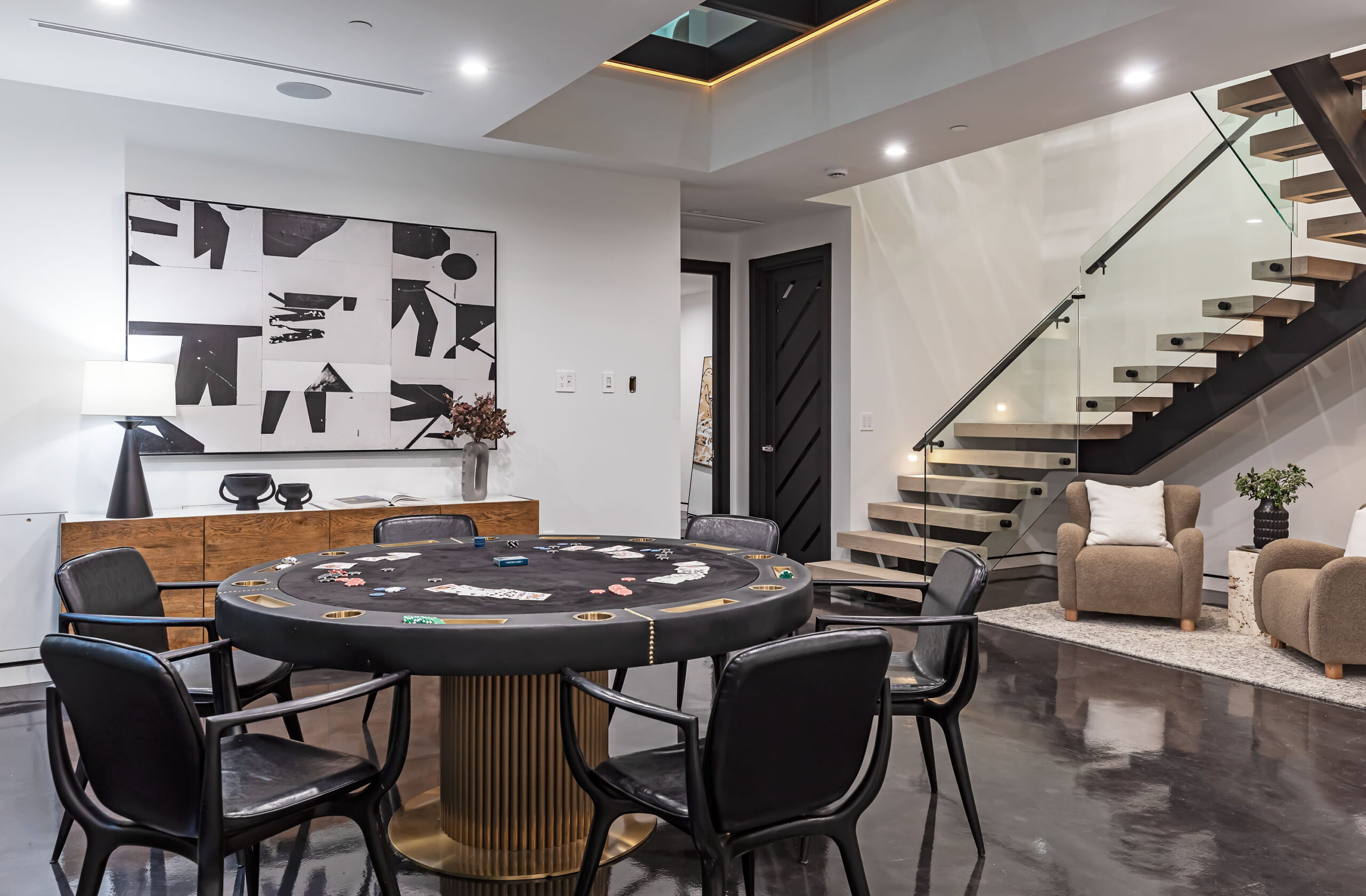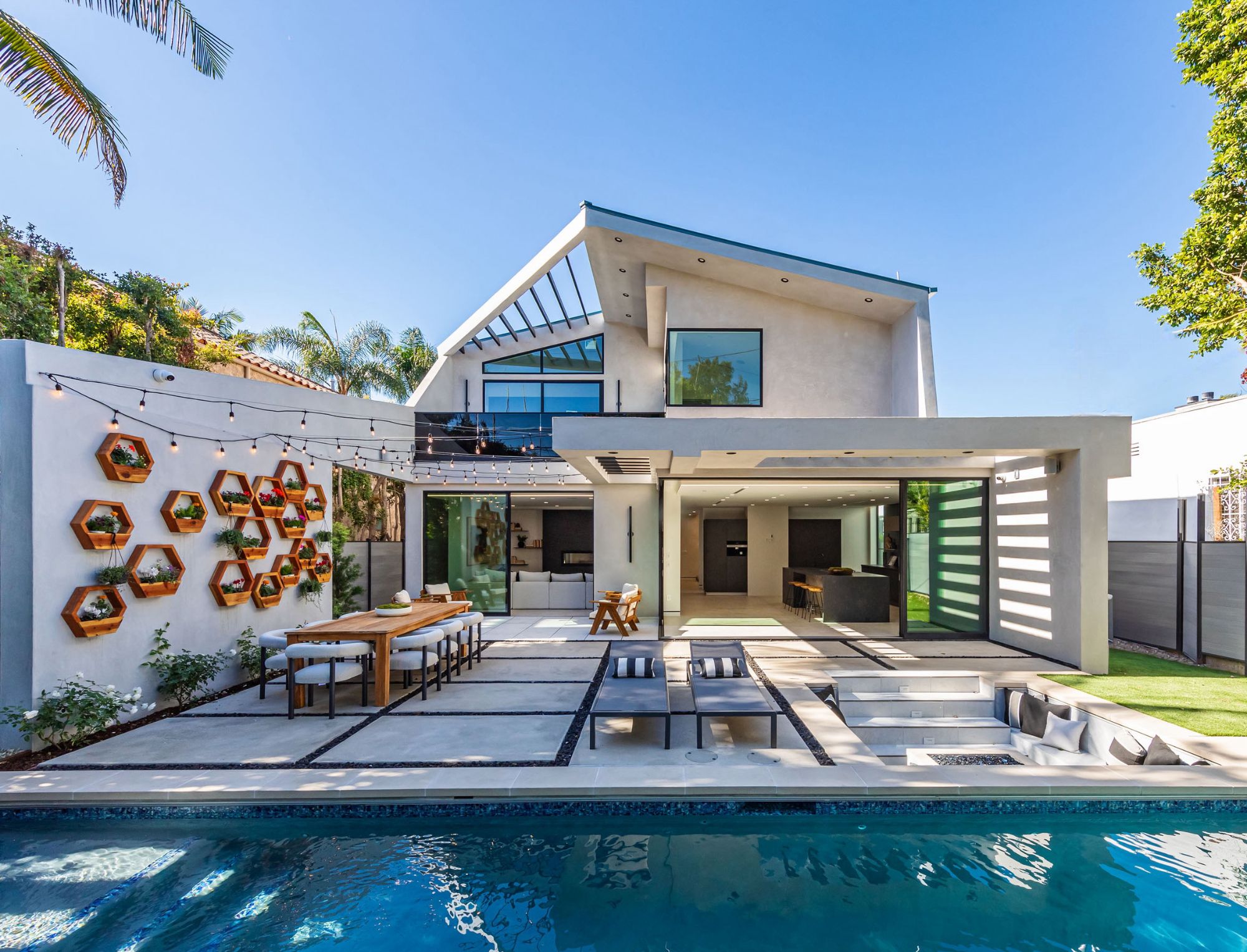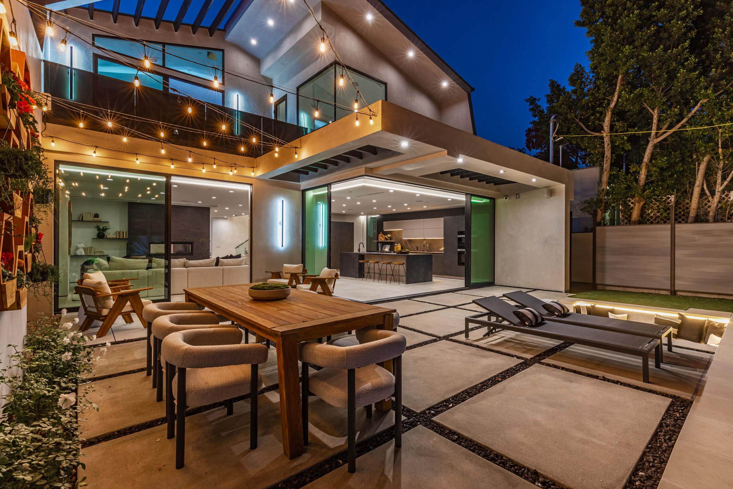 Designed by the renowned firm Amit Apel Design, 930 N La Jolla Avenue is the jewel of the street, a newly built modern architectural masterpiece. Set in the heart of West Hollywood, this stunning home offers unparalleled access to world-class shopping, dining, and entertainment. Enter to an expansive open floor plan that seamlessly blends indoor and outdoor living. Be guided to the formal dining room by a thoughtfully designed black glass floor accent that looks down to the lower level. The dining room features a dramatic chandelier, a fireplace, and a floor-to-ceiling glass wall, creating a perfect atmosphere for both intimate gatherings and grand entertaining. The sleek living room effortlessly flows into the contemporary kitchen, complete with an oversized eat-in waterfall island, German cabinetry, top-of-the-line Miele appliances, and striking Dekton countertops. Disappearing walls of glass open to the entertainer's dream backyard, where you'll find a sunken fire pit seating area, a smart home-ready pool and spa with micro-LED lighting, a built-in pool cover, and ample outdoor space for al fresco living. Upstairs, the second floor boasts an opulent primary suite, highlighted by vaulted ceilings reaching up to 14 feet, a private balcony with views of the yard, and a luxurious ensuite bath featuring a soaker tub, glass shower, dual-sink floating vanity, and two spacious walk-in closets. The guest bedrooms include en suite baths, plus two feature private balconies, each with captivating treetop and Hollywood Hills views. Below awaits the sprawling 2,000 sqft basement, which boasts a large soundproof home theater (can also be converted into a music studio), multiple living spaces, bonus rooms for bedrooms and/or a gym, and a Clear Canadian cedar sauna with a Himalayan salt insert, as well as IPE flooring. This one-of-a-kind property is equipped with cutting-edge technology and finishes, including three HVAC systems, Fleetwood windows and doors, a 'Zoeller' pump system, low-water consumption toilets, central audio, and Wi-Fi extenders. This unique home is the ultimate in luxury living, offering unmatched sophistication and style in one of the most coveted neighborhoods of Los Angeles.