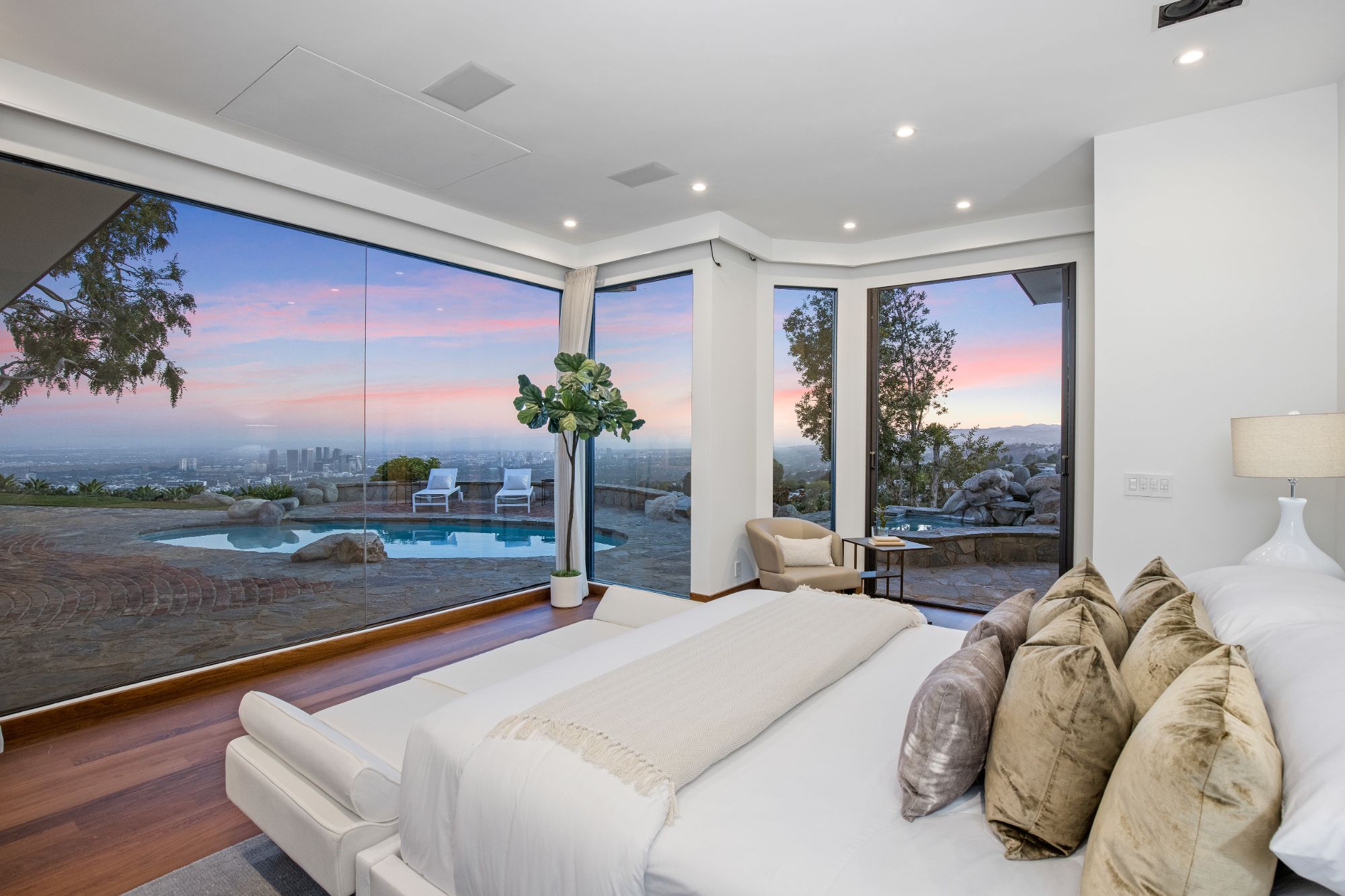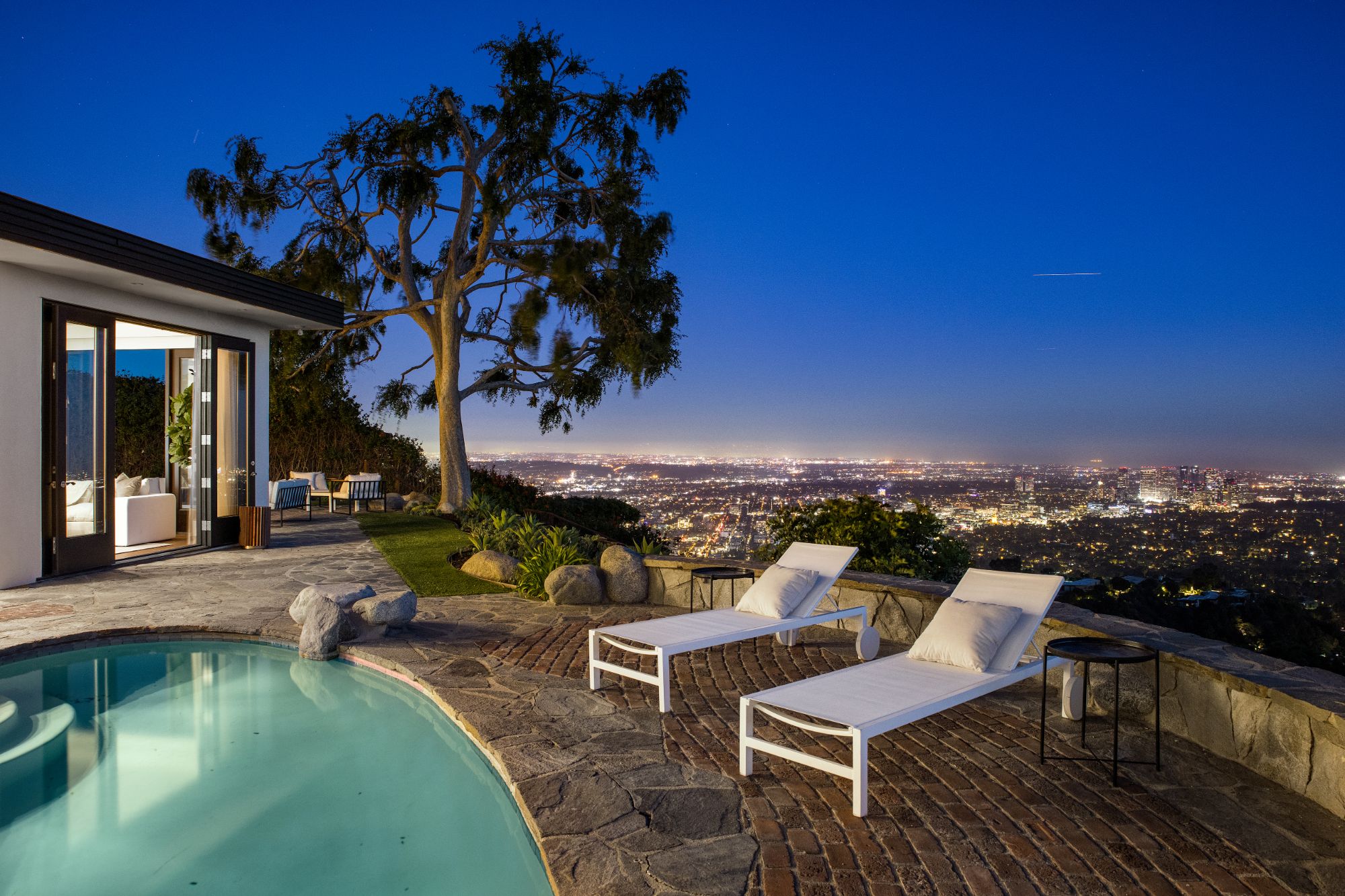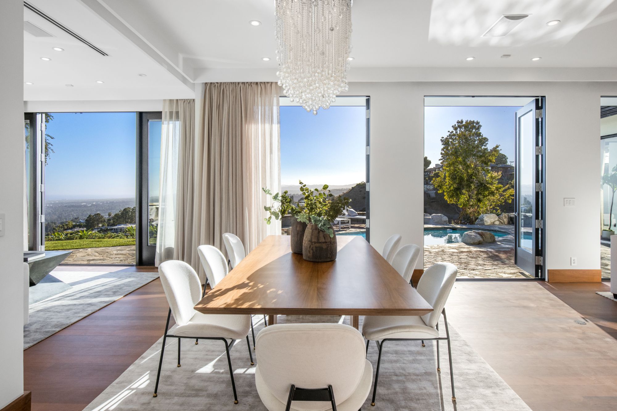 In the enclave of Bird Streets, this organic Mid-century marvel is a stunning mountainside retreat with breathtaking panoramic views from lush canyons, shimmering city lights, all the way to the ocean. Elegant, private, hedged setting with captivating details, luxurious entertaining features and finest hardwood flooring and stonework throughout. Exquisite entrance flanked by koi ponds leads to a captivating foyer with an oversized skylight and a floor aquarium observing colorful koi. Splendid, sun-splashed living room with a formal dining area and French doors throughout opening onto an outdoor entertaining oasis that encompass a swimming pool and jacuzzi with fountain feature, and complete with expansive viewing paths towards the skyline for observing the explosive vistas. Chef grade kitchen with the latest and greatest refinements open onto outdoor dining and BBQ, providing a perfect entertaining flow. Lavish primary suite overlooking the pool and the city features an oversized walk-in closet, and a voluminous bathroom with double vanities, windowed shower, and a soothing tub. Experience the most sensational and elegant lifestyle among the most discerning elite in one of the most desirable neighborhoods.