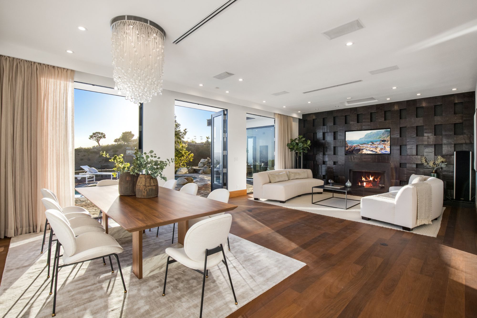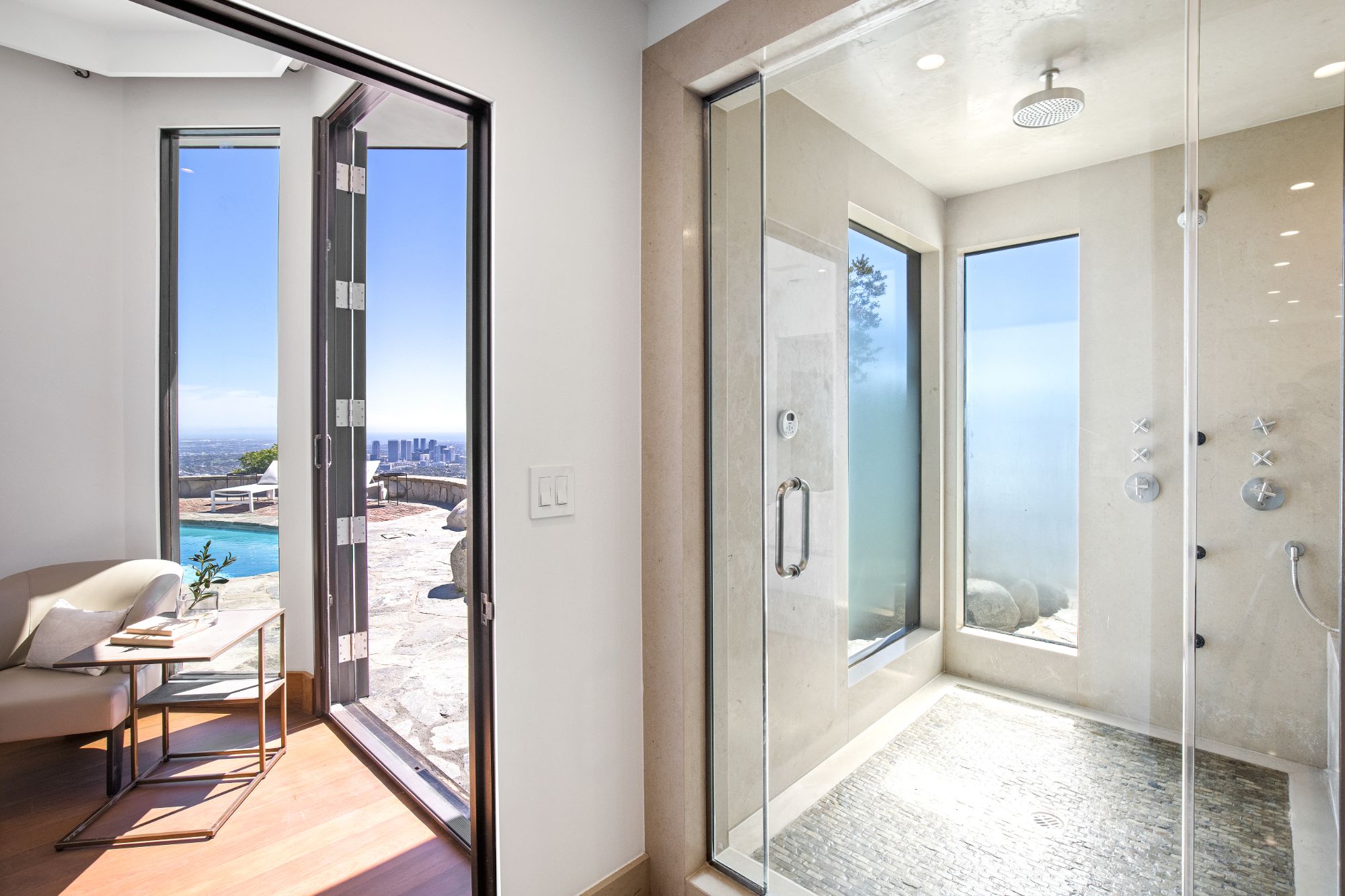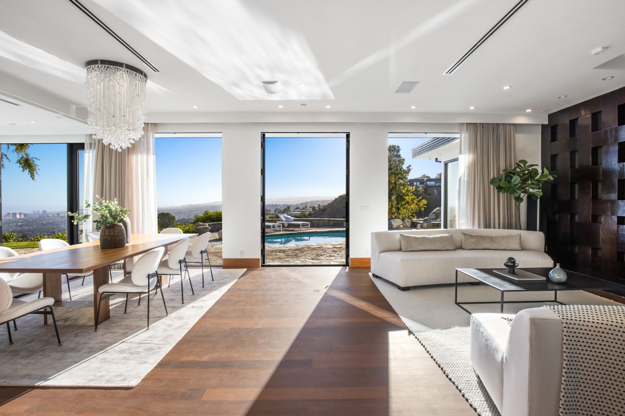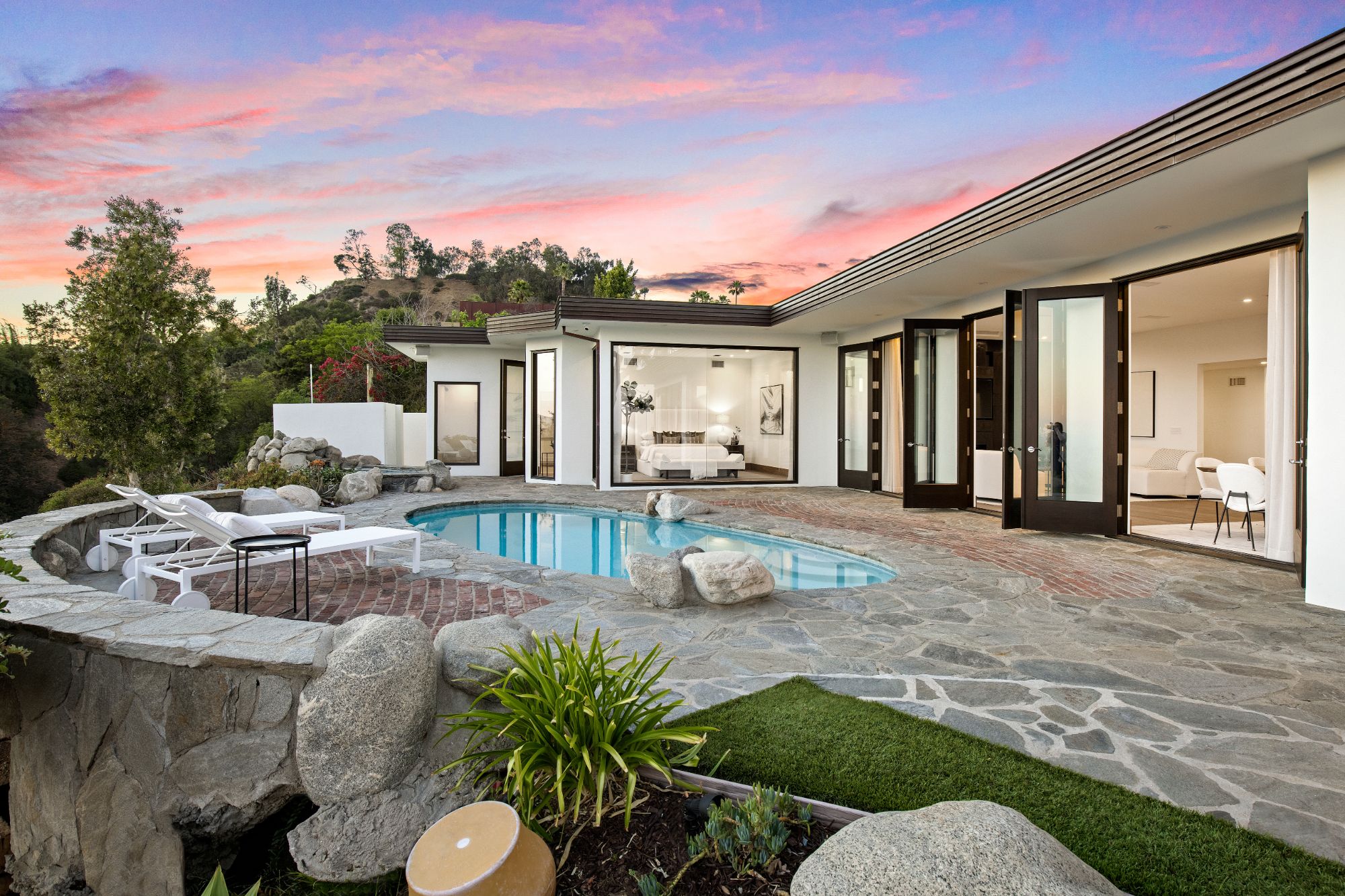 In the enclave of Bird Streets, this organic Mid-century marvel is a stunning mountainside retreat with breathtaking panoramic views from lush canyons, shimmering city lights, all the way to the ocean. Elegant, private, hedged setting with captivating details, luxurious entertaining features and finest hardwood flooring and stonework throughout. Exquisite entrance flanked by koi ponds leads to a captivating foyer with an oversized skylight and a floor aquarium observing colorful koi. Splendid, sun-splashed living room with a formal dining area and French doors throughout opening onto an outdoor entertaining oasis that encompass a swimming pool and jacuzzi with fountain feature, and complete with expansive viewing paths towards the skyline for observing the explosive vistas. Chef grade kitchen with the latest and greatest refinements open onto outdoor dining and BBQ, providing a perfect entertaining flow. Lavish primary suite overlooking the pool and the city features an oversized walk-in closet, and a voluminous bathroom with double vanities, windowed shower, and a soothing tub. Experience the most sensational and elegant lifestyle among the most discerning elite in one of the most desirable neighborhoods.