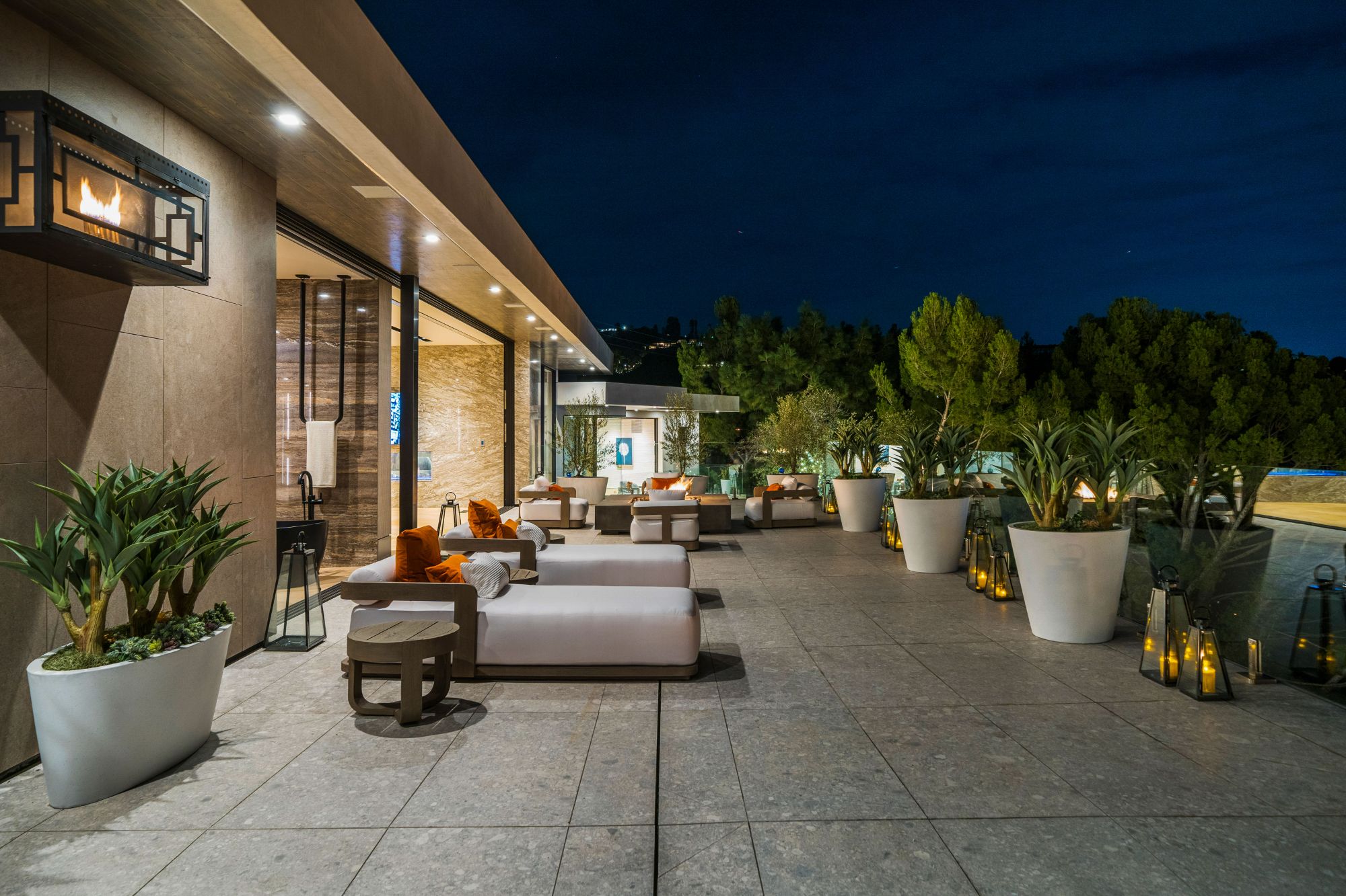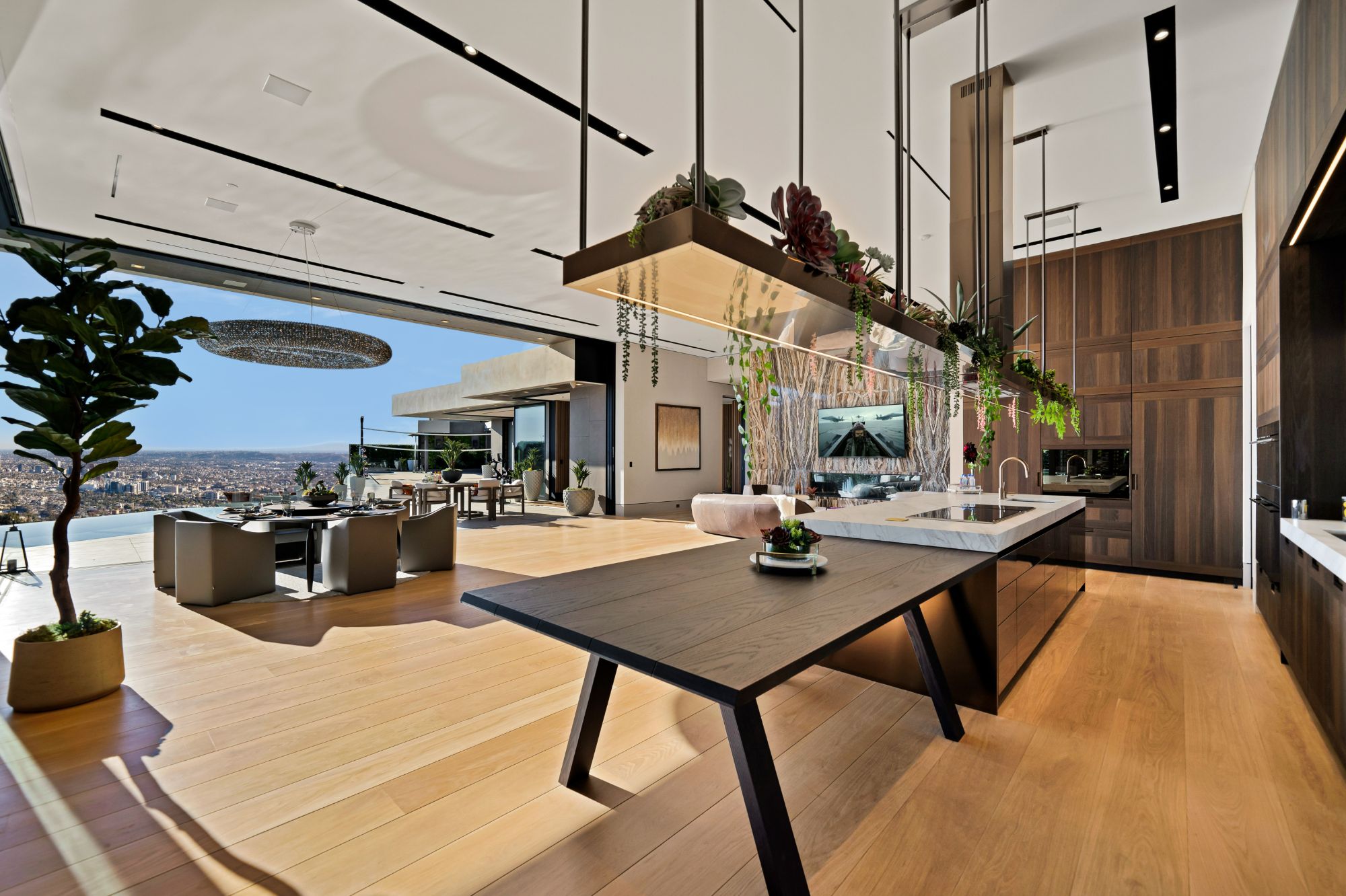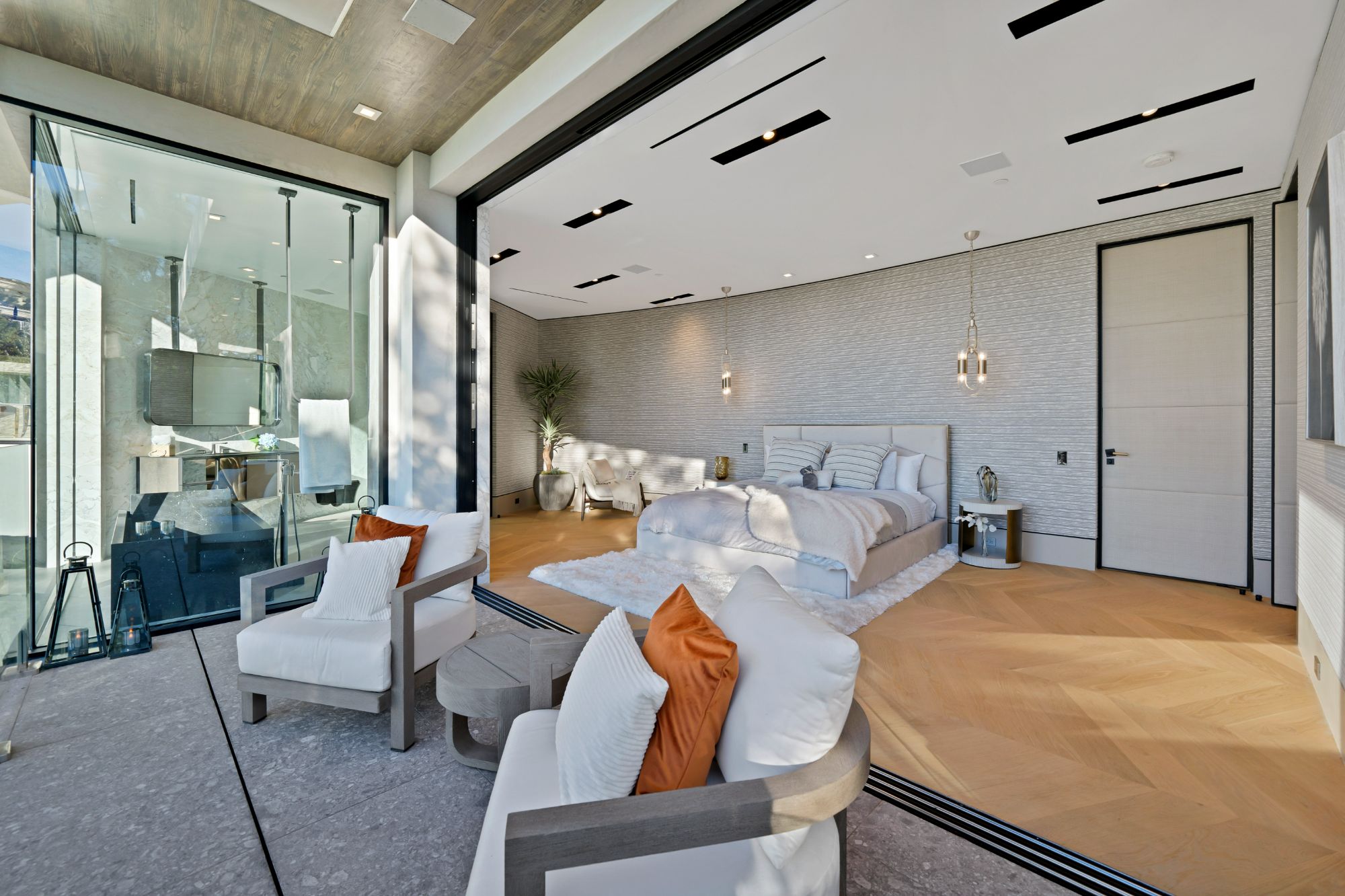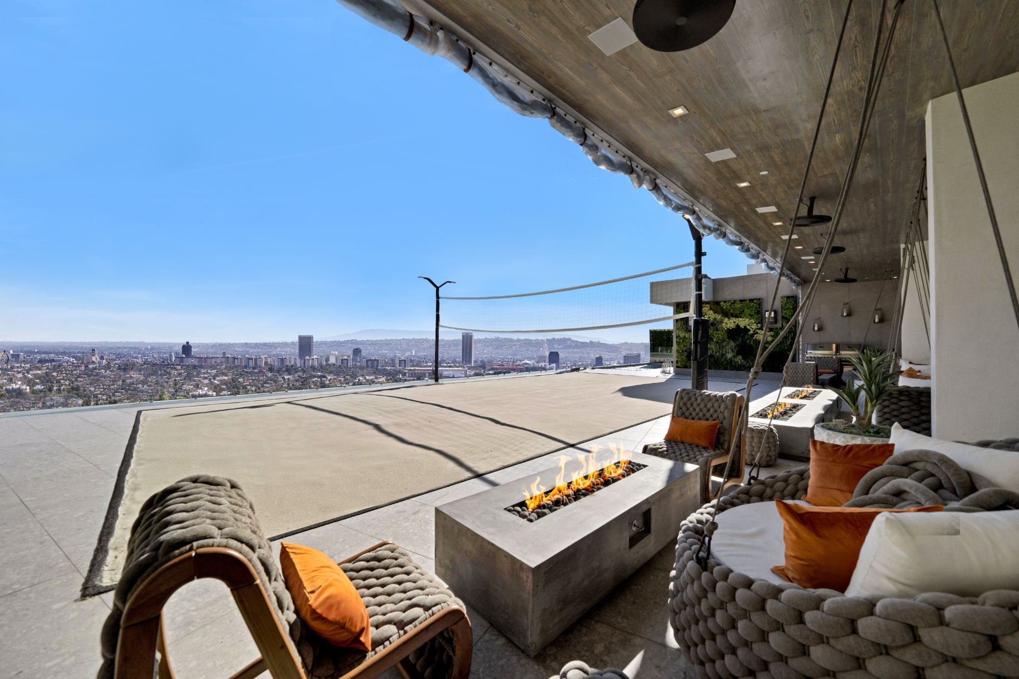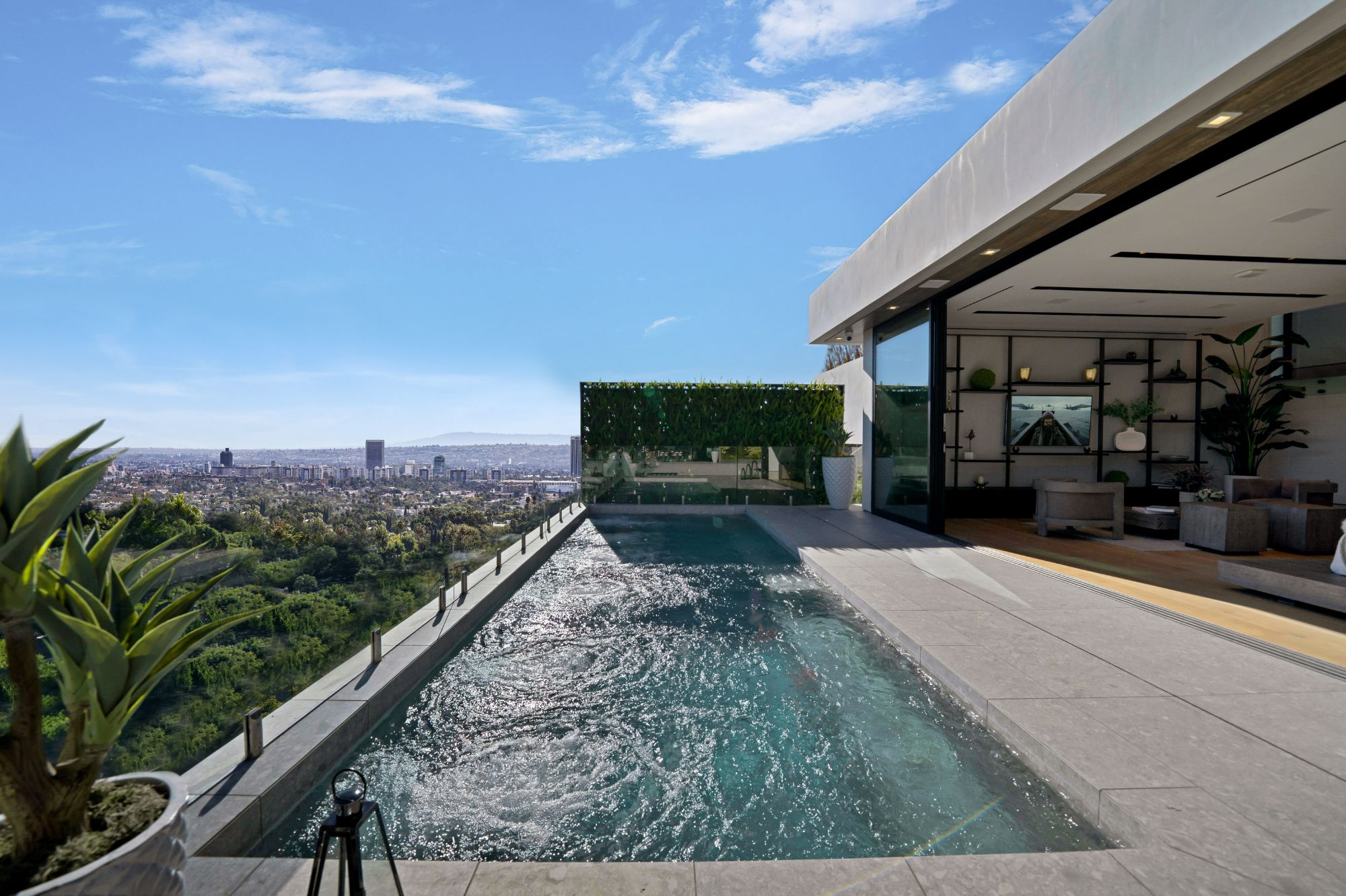 Seller accepts crypto! Conceived and executed with the modern mogul's ambition top of mind, this newly constructed palace offers sweeping, uninterrupted views of the canyon and Los Angeles skyline, spanning 500 feet of frontage in a coveted Bird Streets enclave. Enter beneath a bespoke chandelier and cascading fountains into a 13-foot living room anchored by layered stone fireplaces. The Arclinea kitchen opens to a European-inspired wine room illuminated by a sculptural pendant. Floor-to-ceiling glass panels dissolve the line between indoors and outdoors, revealing expansive terraces with an 18-foot sunken fire pit, a 100-foot infinity pool, a 30-person spa, and a sand volleyball court, each set against sweeping vistas. The primary suite serves as a private retreat, featuring a reading vestibule, a 1,500-square-foot balcony with Jacuzzi and fire features, dual dressing rooms, and a travertine-clad bath with twin soaking tubs and panoramic views. Tailored for both comfort and spectacle, the home also includes a command center-style office, a full screening room, a gym, hookah and meditation lounges, a panic room, a shoeshine station, and more. Designed with intent, the residence is as functional as it is striking. Revel in the pinnacle of modern elegance, all while being enveloped by some of Southern California's most breathtaking views.
