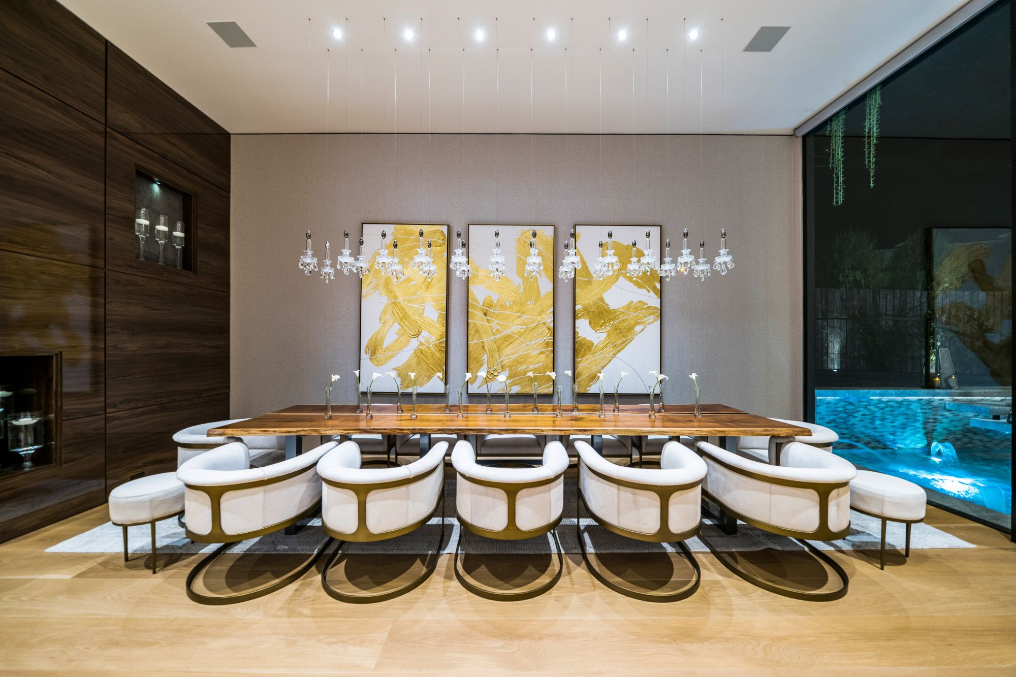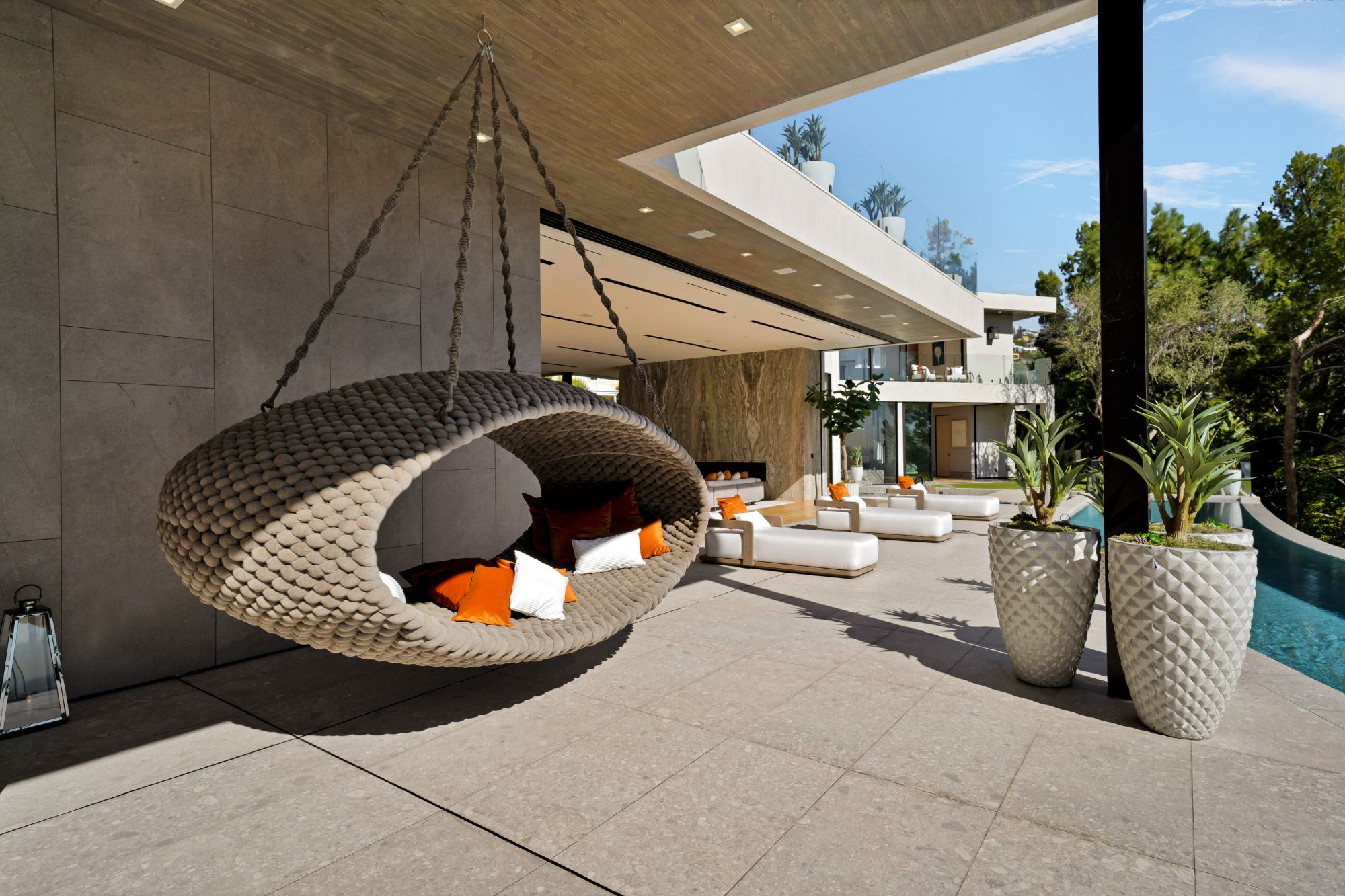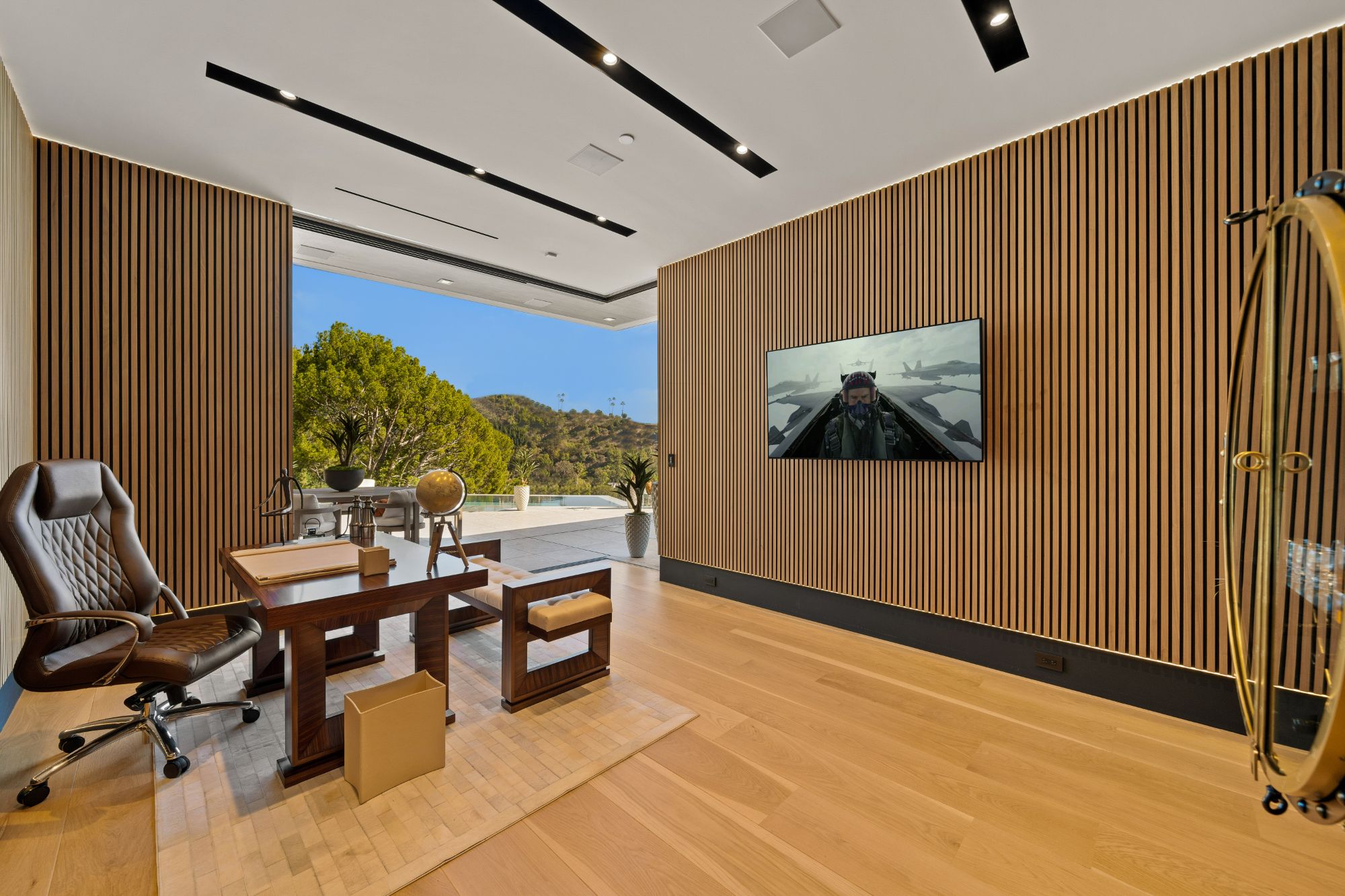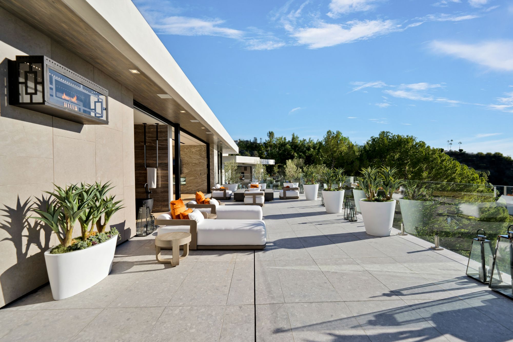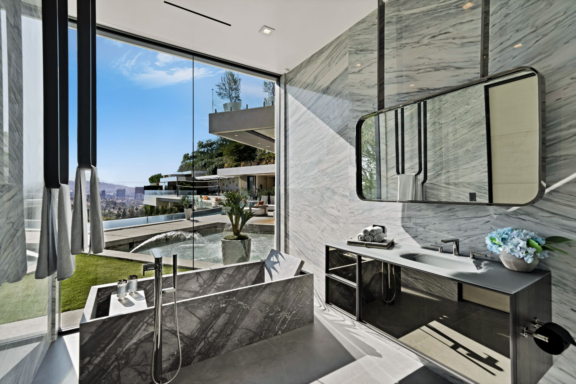 Seller accepts crypto! Conceived and executed with the modern mogul's ambition top of mind, this newly constructed palace offers sweeping, uninterrupted views of the canyon and Los Angeles skyline, spanning 500 feet of frontage in a coveted Bird Streets enclave. Enter beneath a bespoke chandelier and cascading fountains into a 13-foot living room anchored by layered stone fireplaces. The Arclinea kitchen opens to a European-inspired wine room illuminated by a sculptural pendant. Floor-to-ceiling glass panels dissolve the line between indoors and outdoors, revealing expansive terraces with an 18-foot sunken fire pit, a 100-foot infinity pool, a 30-person spa, and a sand volleyball court, each set against sweeping vistas. The primary suite serves as a private retreat, featuring a reading vestibule, a 1,500-square-foot balcony with Jacuzzi and fire features, dual dressing rooms, and a travertine-clad bath with twin soaking tubs and panoramic views. Tailored for both comfort and spectacle, the home also includes a command center-style office, a full screening room, a gym, hookah and meditation lounges, a panic room, a shoeshine station, and more. Designed with intent, the residence is as functional as it is striking. Revel in the pinnacle of modern elegance, all while being enveloped by some of Southern California's most breathtaking views.