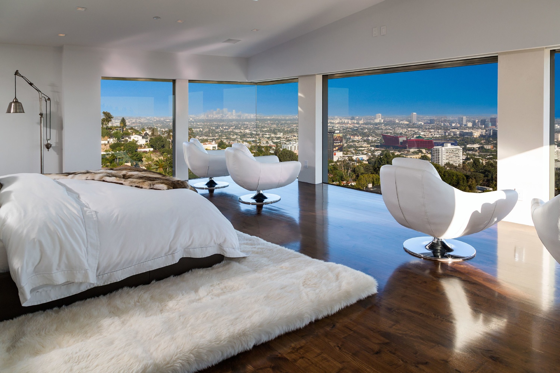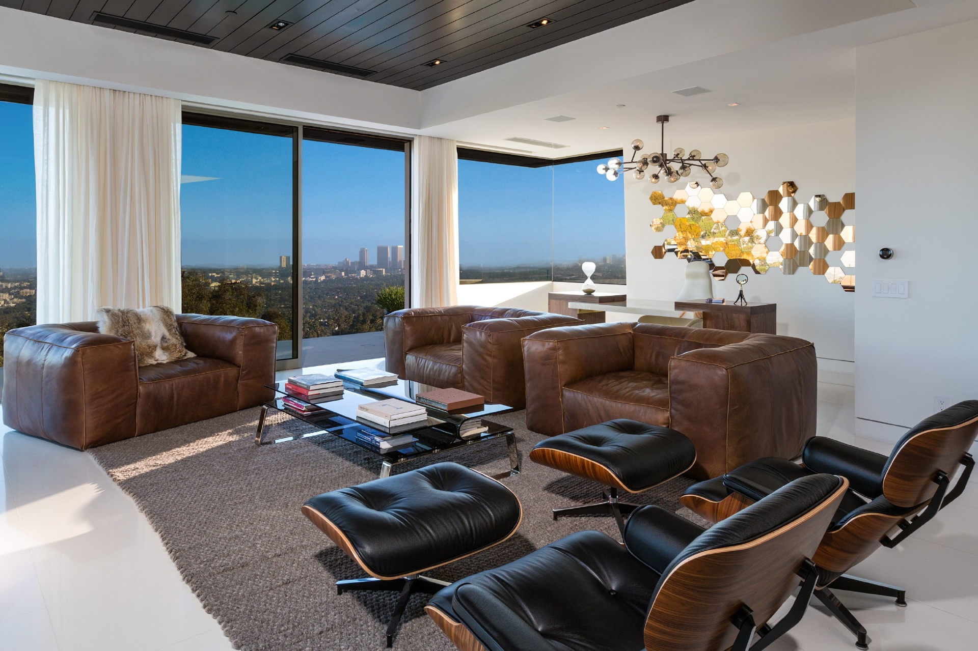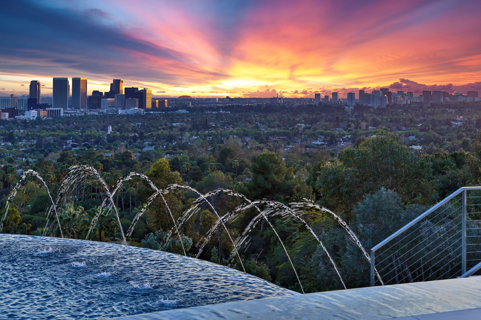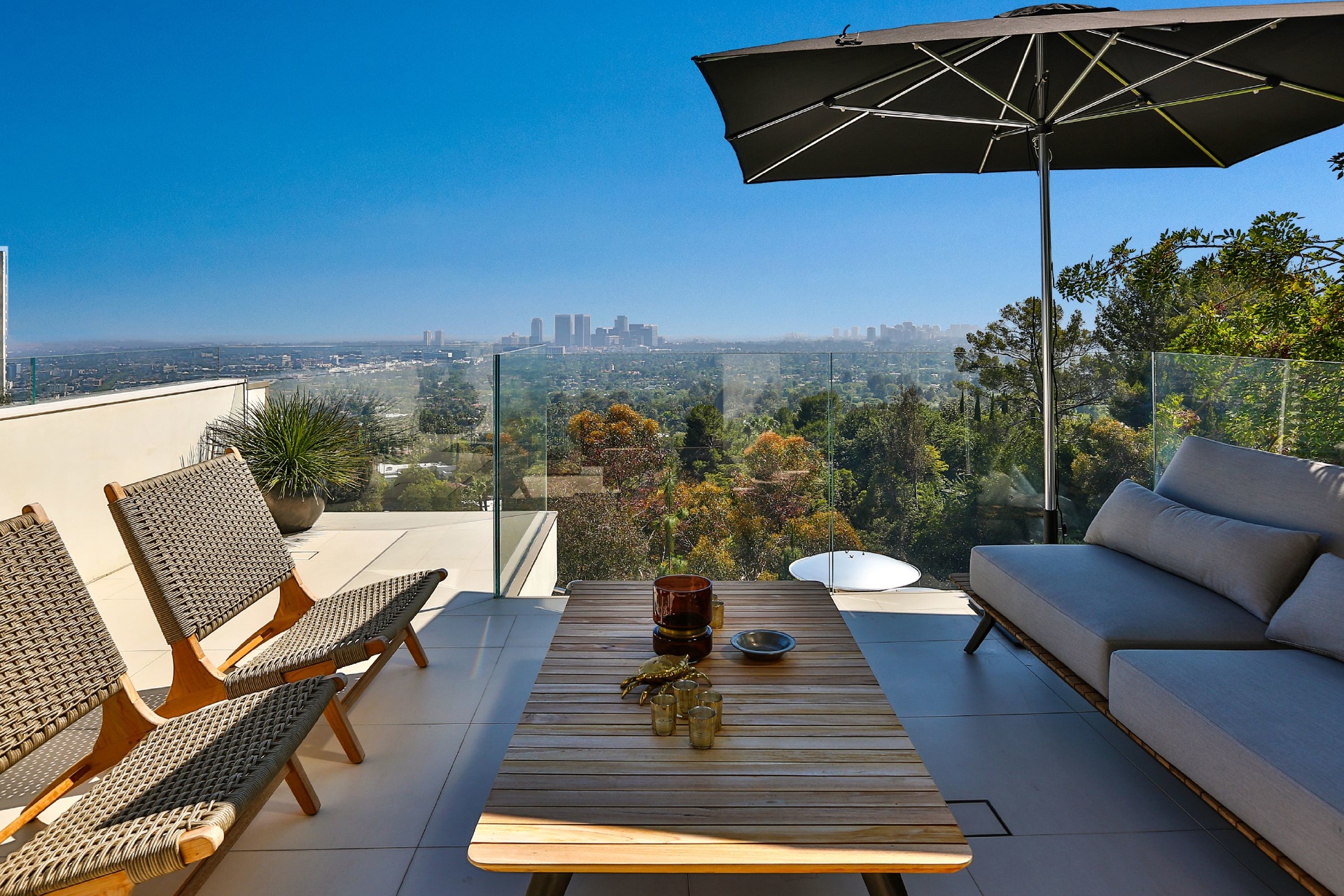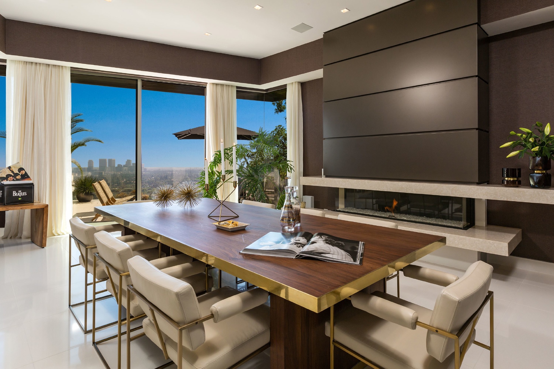 Modern architecture with all the latest & greatest amenities, built on one of the Bird Streets finest promontories with explosive views from downtown to the ocean & everything in between. This luxury residence is a true modern work of art located on a quiet cul-de-sac above the Sunset Strip. A spacious, luxurious master suite includes skylights, large closets, separate handbag & shoe rooms and American walnut flooring throughout. A top-of-the-line Italian kitchen with amenities that include Thermador appliances, Caesarstone countertops, two ovens & two dishwashers. Dining area includes Tiffany dining table & Delfin swivel chairs. Outdoor entertainment deck boasts an 1,800 SF infinity pool, 8-ft. fire pit, alfresco dining areas & more. Complete w/ every modern amenity imaginable including a home theater w/ seating for ten in plush reclining sofas, LED lighting, home automation system & a home gym. Live among the stars & titans of industry in the iconic trophy estate.