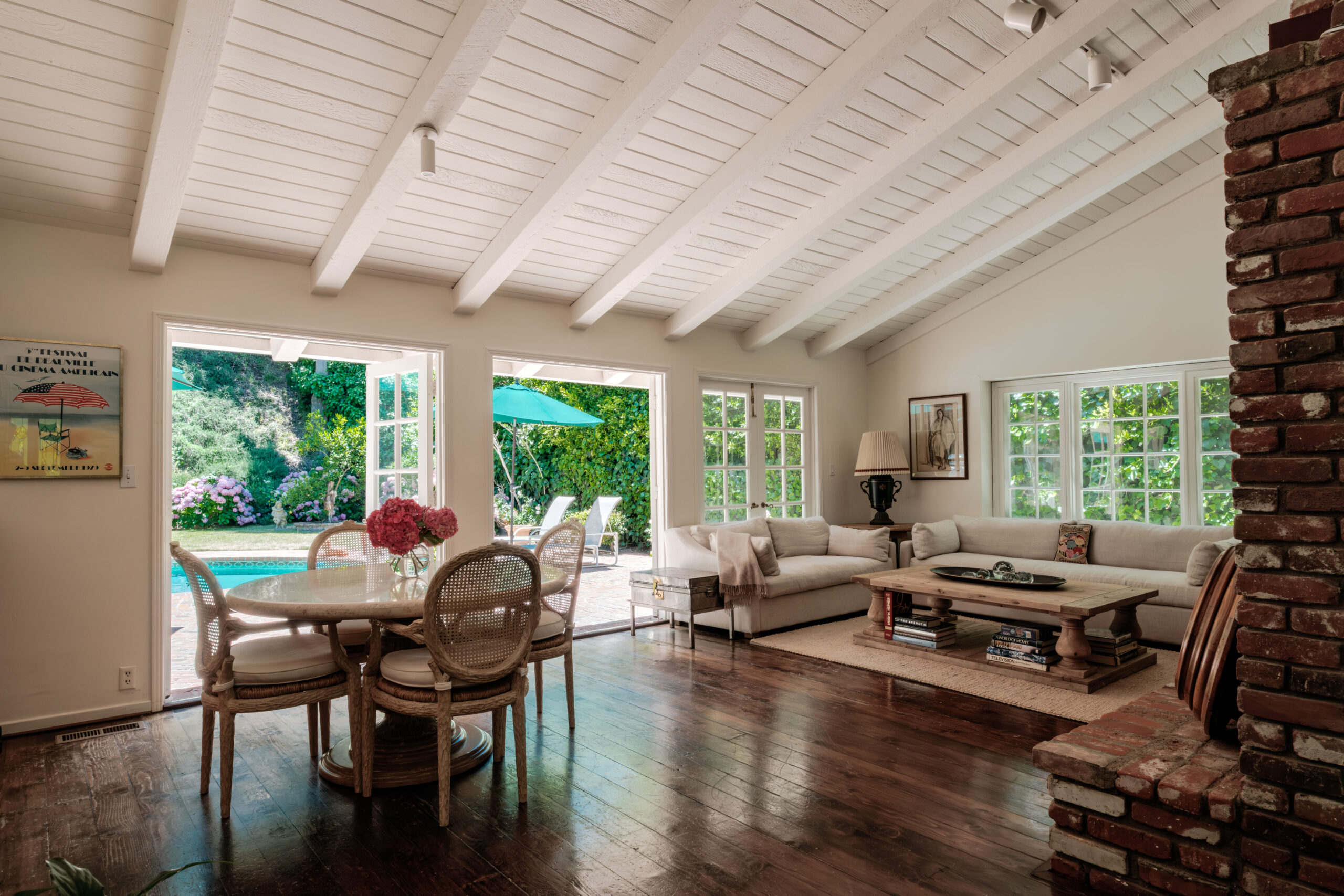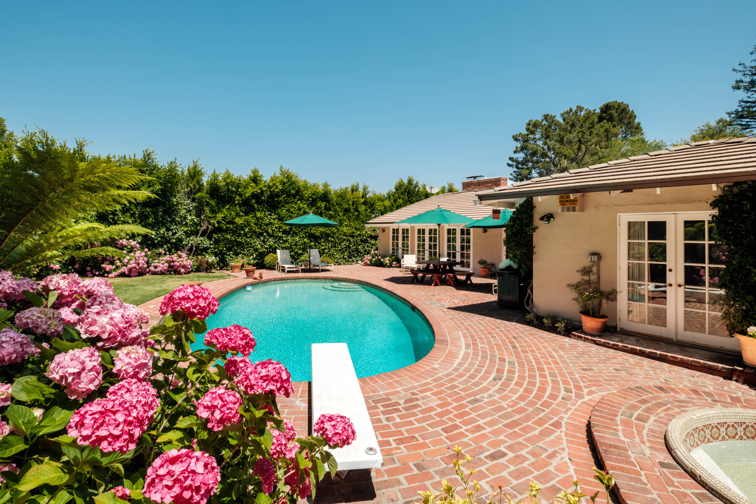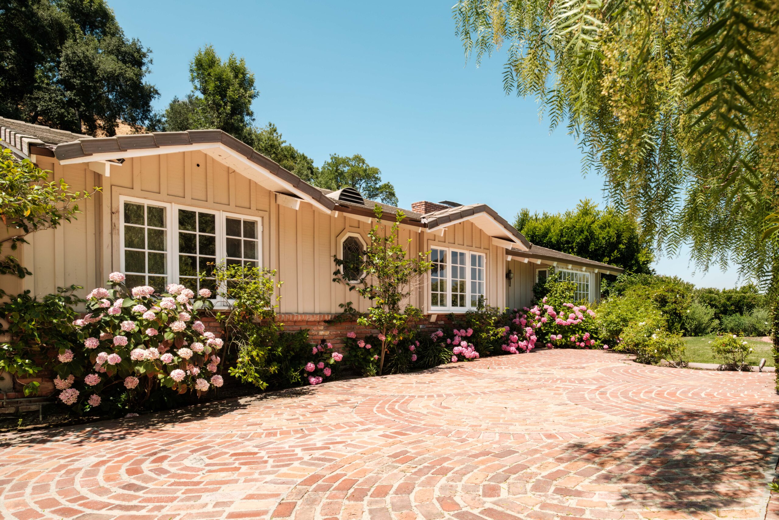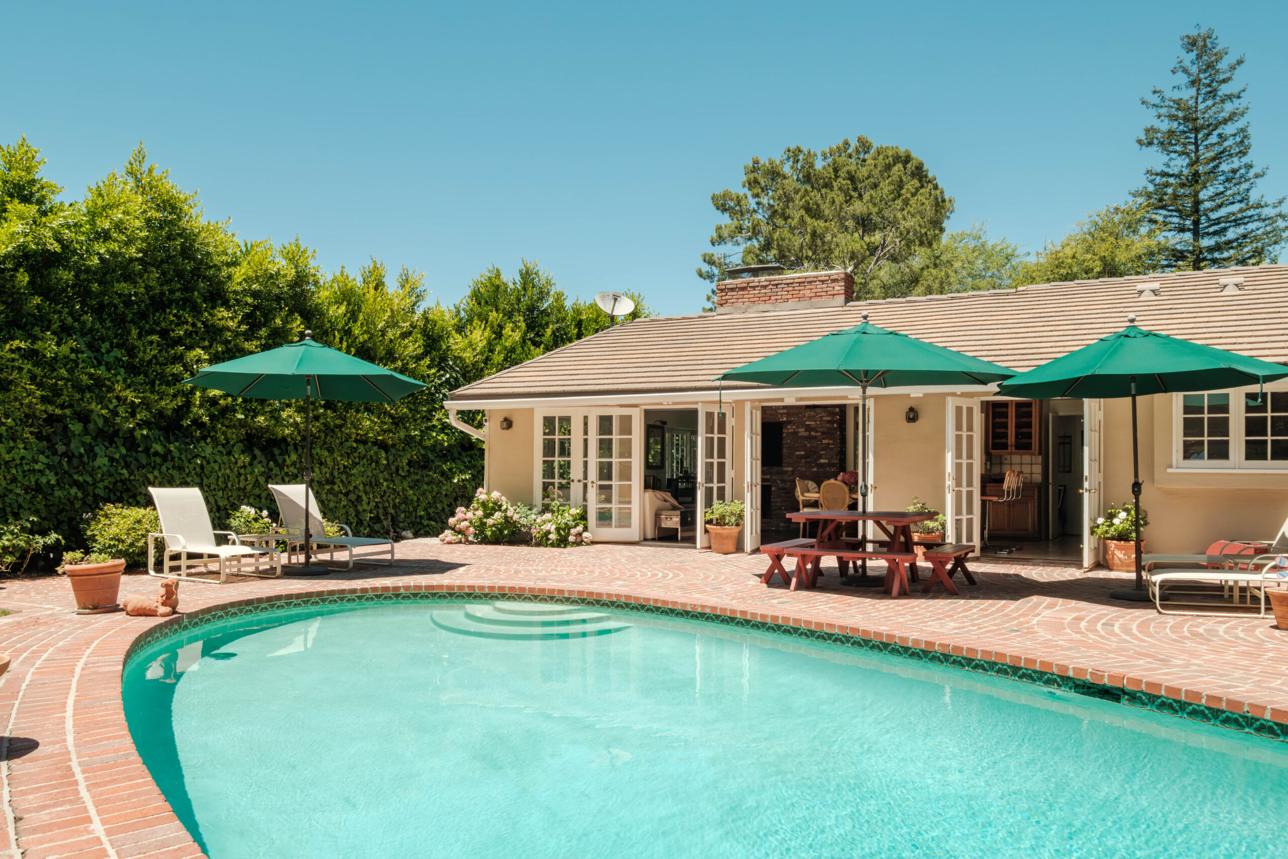 First time on the market in over 50 years! Welcome to this storybook California Ranch-style home, set back from the street with a brick driveway that enhances its timeless curb appeal. Framed by flourishing hydrangeas and lush greenery, the home exudes classic character and warmth throughout. Inside, you'll find three spacious bedrooms, two bathrooms, and sun-drenched living spaces designed for comfort and connection. The living and den areas are seamlessly connected by a charming dual-sided fireplace and feature wood-beamed ceilings that infuse the space with rich character and architectural appeal. The kitchen offers picturesque views of the beautifully landscaped yard and features a built-in counter for casual seating, perfect for enjoying a morning coffee or embracing the easy indoor-outdoor lifestyle. French doors open to a private backyard retreat with a sparkling pool and spa, ideal for relaxing, entertaining, and making the most of sunny California days. Set on an expansive lot with a covered garage, the property presents a rare opportunity to enjoy as-is or add your personal touch over time. A special offering filled with soul, space, and potential ready to be cherished by its next owner.