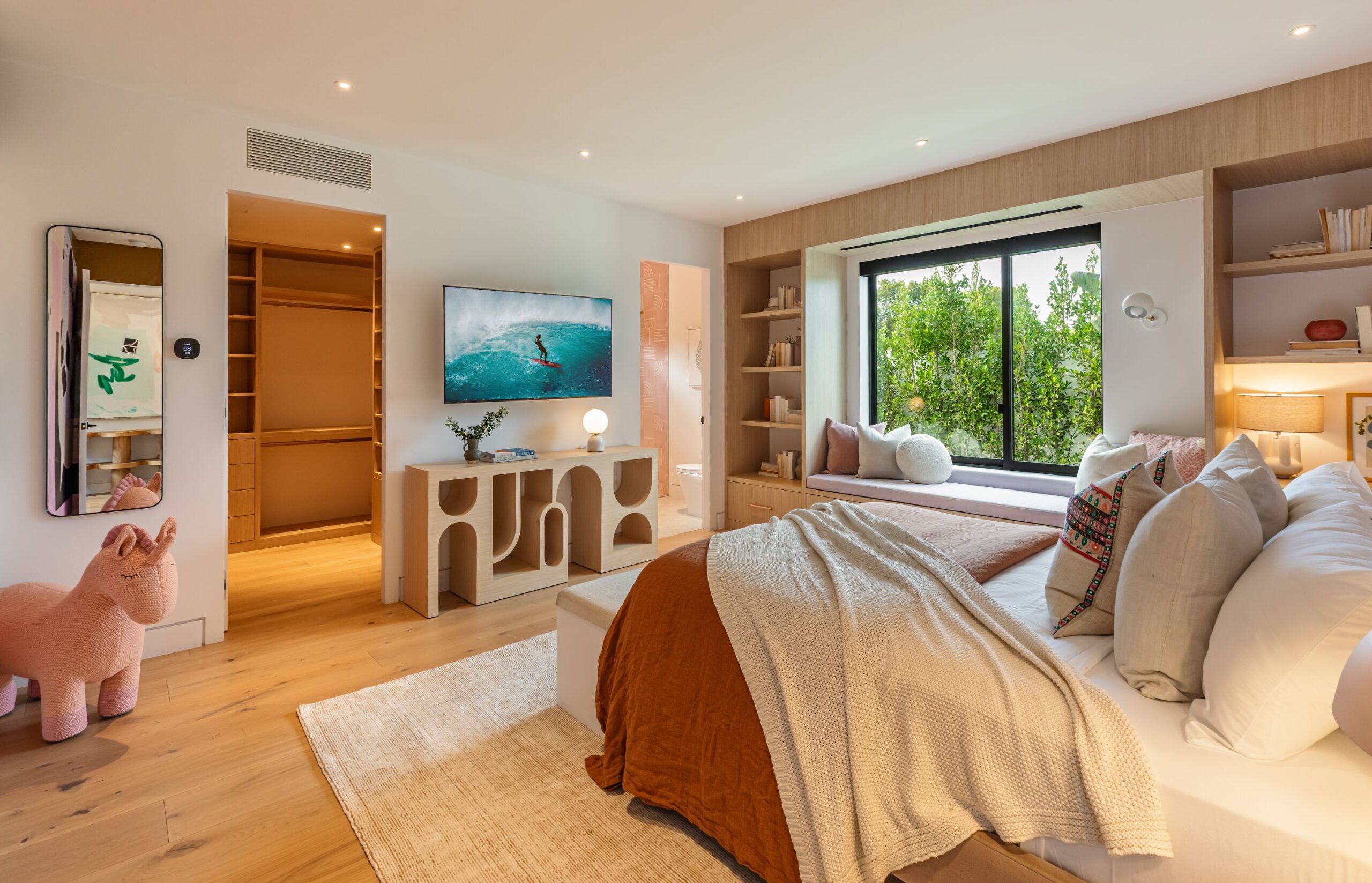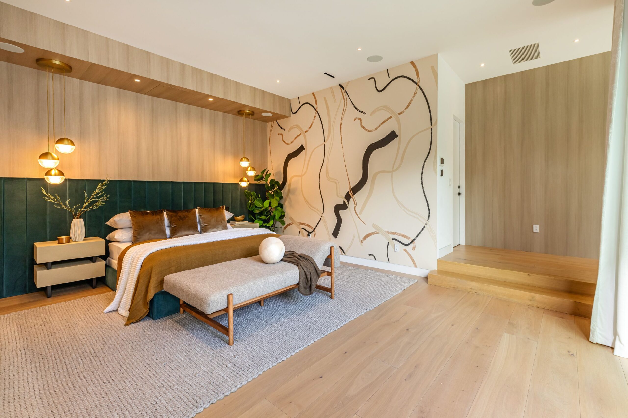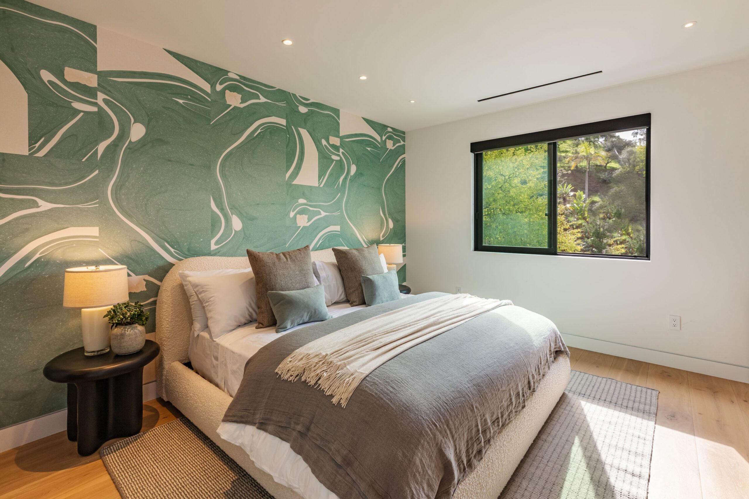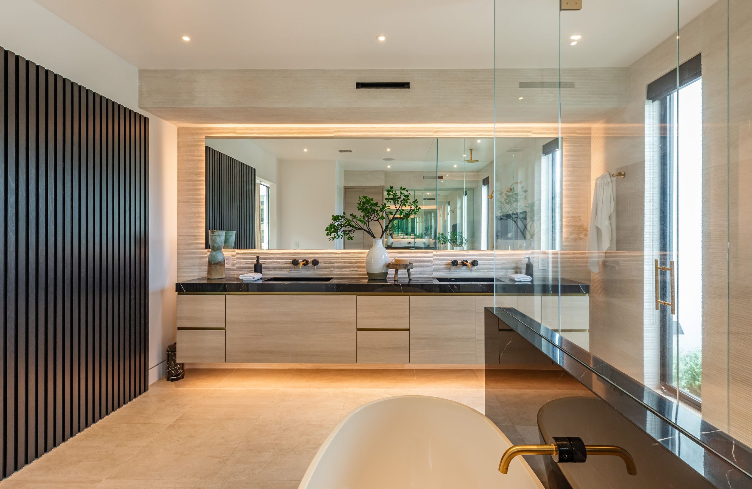 Fully renovated modern home in BHPO on a quiet street in Coldwater Canyon. Just beyond the front door, the formal living room has beamed ceilings and looks out to the spacious backyard. The dining room conveniently blends into the kitchen which features gorgeous black porcelain counters and high-end appliances, including double Sub-Zero refrigerators and 48-inch Wolf range. Glass walls allow natural light to fill the space and highlight the beautiful finishes and textures of the home, Fleetwood windows and doors throughout. The spacious primary suite features build projector and drop-down 130-inch screen, and offers a tranquil spa-like bathroom. Oversized sliding doors open for seamless indoor/outdoor living and entertaining featuring six-zone audio system. The sparkling pool with oversized spa is surrounded by areas for lounging, a built-in fire pit with seating, room for dining al fresco, and lush landscaping. This exquisite home flawlessly combines luxury and tranquility, making it the perfect retreat for sophisticated living and entertaining.