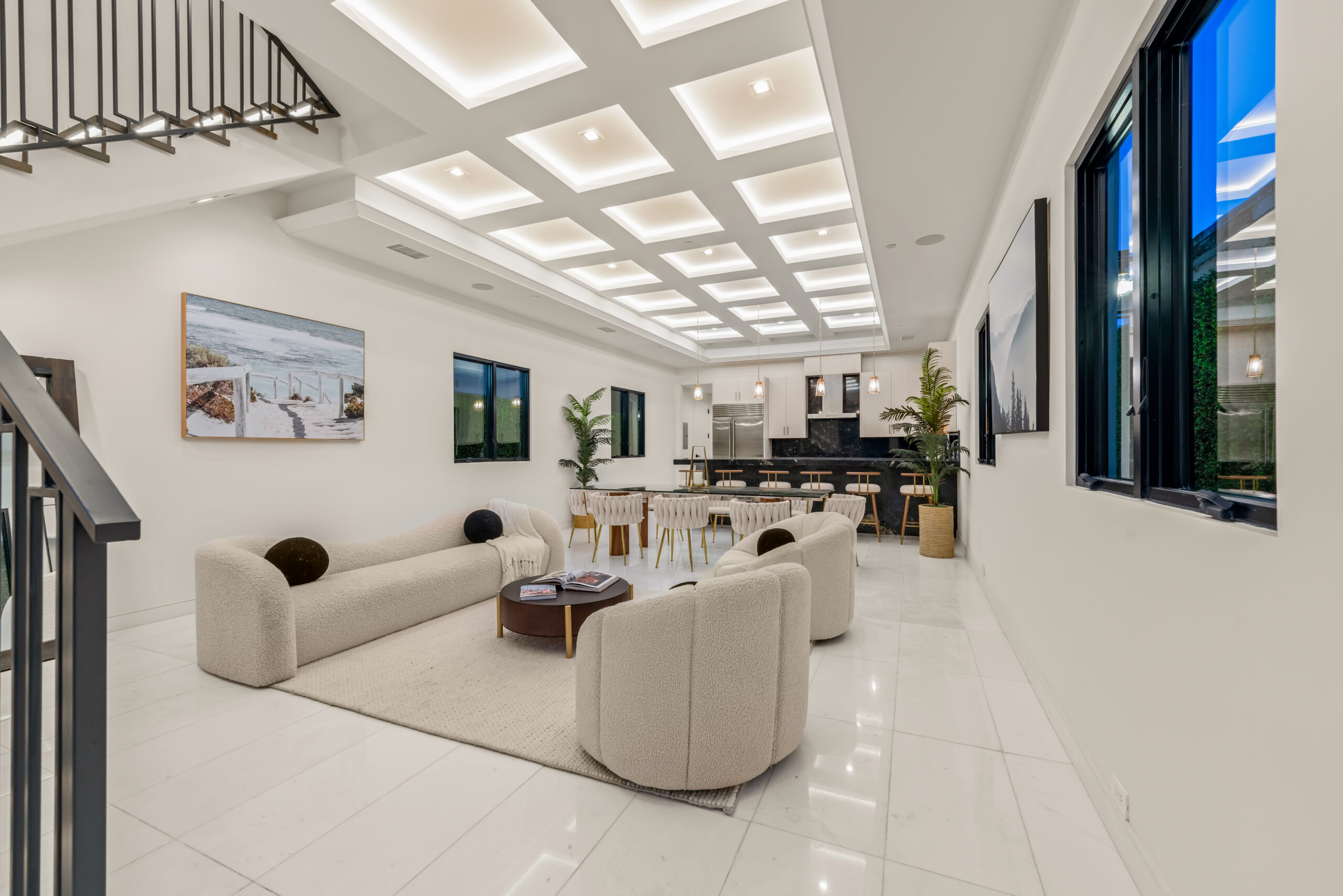 Welcome to 9511 National, where luxury living meets modern convenience. This stunning residence boasts meticulous attention to detail and an array of premium features, making it a haven for those who appreciate the finer things in life. As you step inside, you're greeted by the elegance of Greek Thassos marble flooring adorning the expansive living spaces. Coffered ceilings with LED ambient lighting create a warm and inviting atmosphere, complemented by wide plank oak hardwood flooring and a custom oak staircase with LED under lighting. The heart of the home is the gourmet kitchen, equipped with professional-grade stainless steel appliances including a Subzero refrigerator and Miele gas range. The granite countertops with waterfall edge, custom maple cabinetry, and Lutron smart home lighting integration elevate the culinary experience to new heights. With 4 bedrooms and 3 bathrooms, including a luxurious primary suite featuring Phylrich fixtures and hand-laid Travertine tile, this home offers comfort and privacy for the whole family. En suite closets provide ample storage, while the primary bathroom boasts electronic bidet for added convenience. Entertain in style on the expansive rooftop deck, spanning 1,030 square feet and featuring slate flooring. Whether hosting gatherings or enjoying quiet moments under the stars, this outdoor oasis offers the perfect retreat. Conveniently located just minutes from Downtown Culver City, fine dining, and entertainment, this home offers the best of both worlds: a tranquil retreat in a vibrant urban setting. Additional features include a detached 2-car garage that can seamlessly be converted to an ADU, security camera system, surround sound, alarm system, gated entry, custom wine rack, laundry room with LG washer and dryer, LED vanity mirrors, and bathroom vanities with Carrara marble countertops. Don't miss your chance to experience luxury living at its finest. Total square footage includes 476 square feet garage.