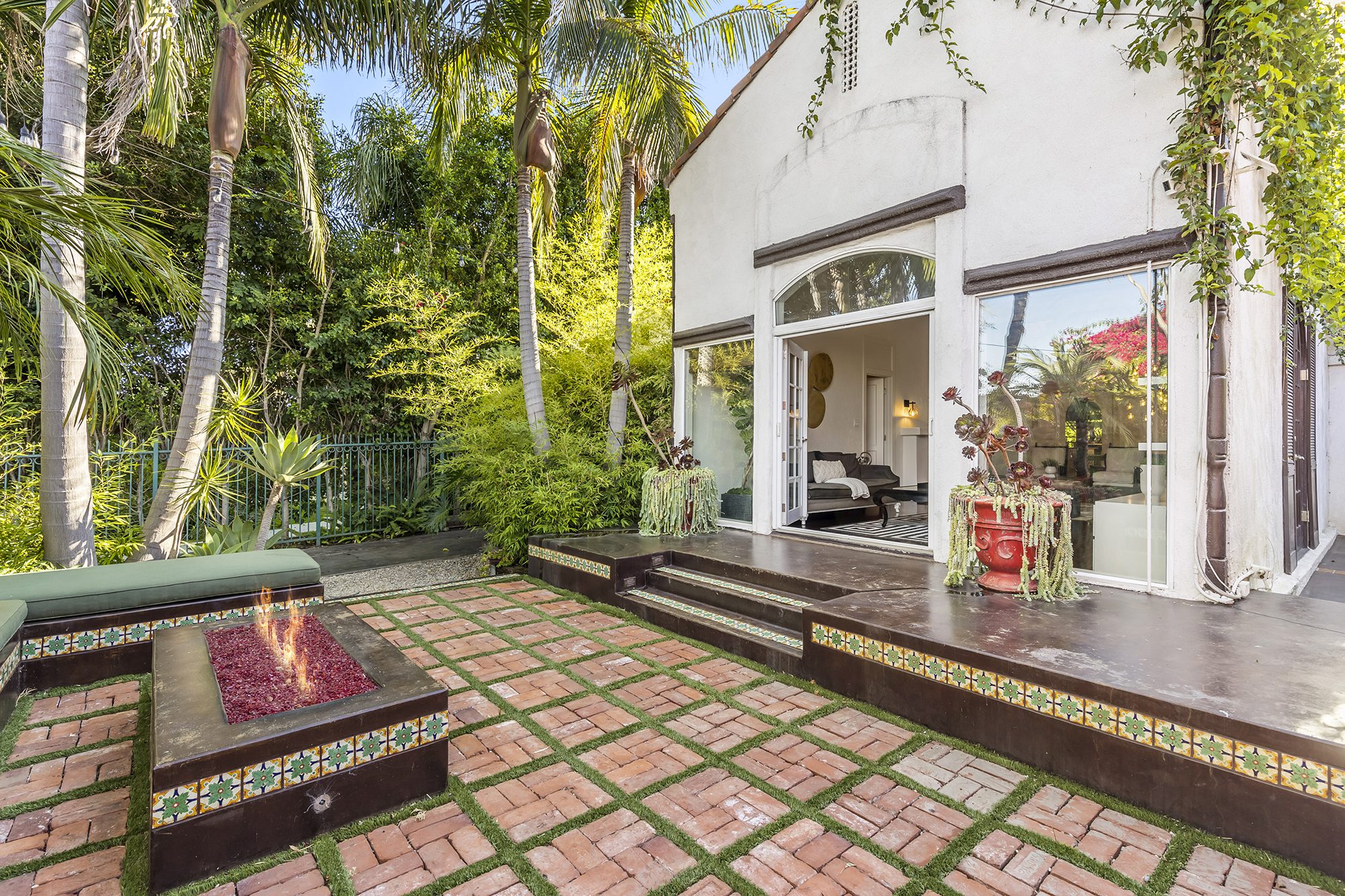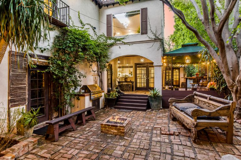 Welcome to this gated and ultra private magical Spanish zen retreat. Set on an enchanting, sprawling lot with multiple seating areas, ponds and fire features, thisspacious residence offers incredible indoor outdoor living and entertaining. First level offers updated kitchen, open living and dining room with fireplace and three generousbedrooms. Second level offers an enormous primary suite with vaulted ceiling, which occupies the entire second floor and includes large walk in closet, spa bath andfireplace. Offered fully furnished, this sophisticated hideaway has it all.