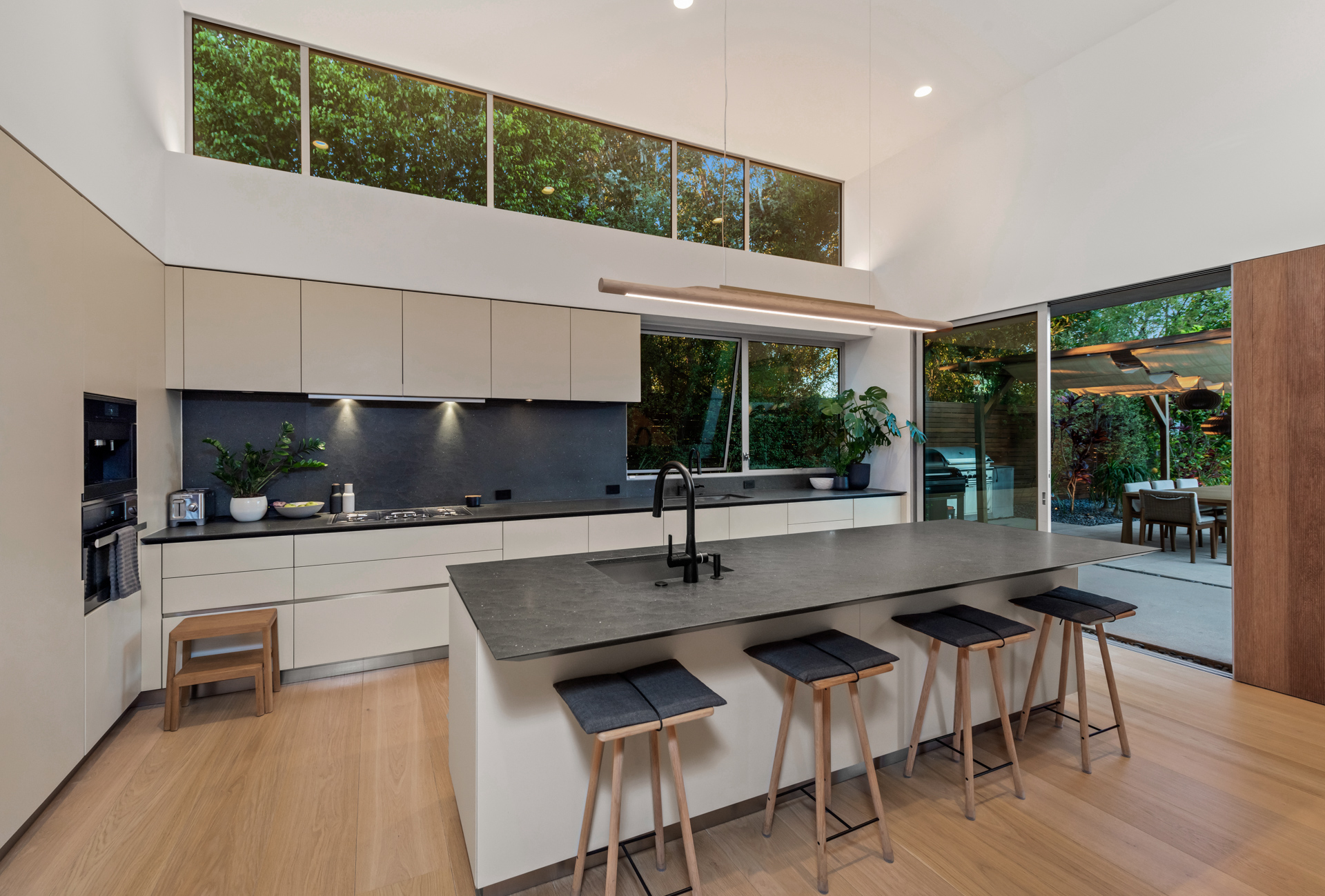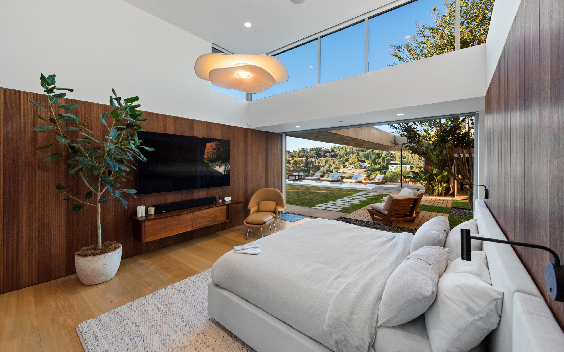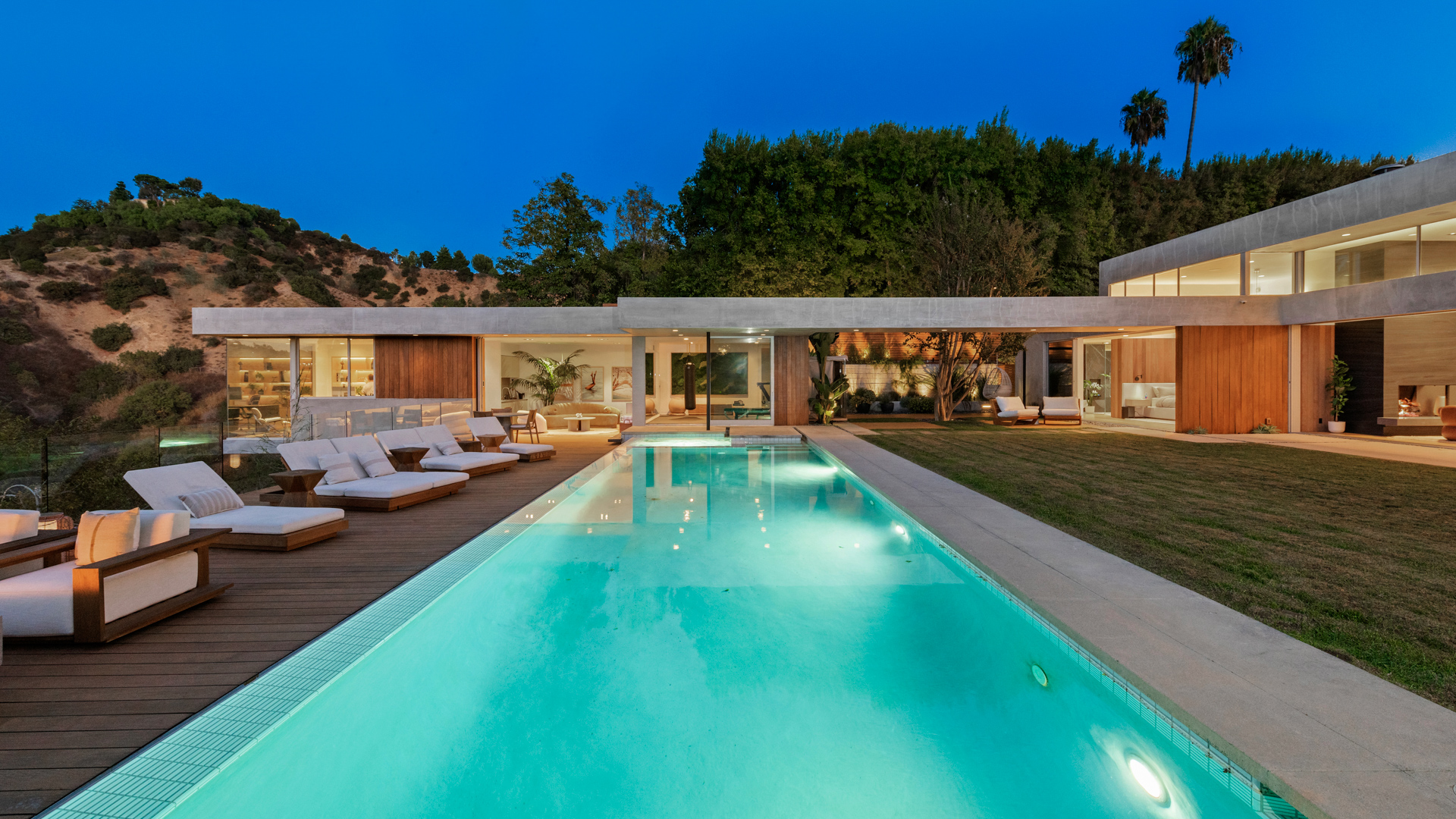This modern architectural retreat in the heart of Beverly Hills offers a seamless blend of resort-style luxury, premier amenities, and ultimate privacy. Situated on a quiet cul-de-sac and secured behind private gates, the home welcomes you with a striking pivot door, unveiling a sunlit open-concept layout framed by stunning canyon views. Expansive living areas flow effortlessly between indoor and outdoor spaces, creating a harmonious and inviting atmosphere.Every detail has been thoughtfully designed, featuring a formal living room with a fireplace, an elegant dining area, five impeccably appointed bedrooms, five bathrooms, a media room/library, and a sophisticated kitchen complete with a spacious pantry and laundry room.The primary suite is a serene sanctuary with seamless outdoor access, a spa-inspired bathroom with a soaking tub, standalone shower, dual vanities, and a motion-sensor walk-in closet.At the heart of the property, a floating guest house serves as a tranquil retreat, offering a yoga studio/gym, an infrared sauna, and a refined office overlooking breathtaking canyon views.The backyard sanctuary is an entertainer's dream, with multiple lounging areas, a zero-edge pool and spa, outdoor dining, a BBQ, and a pizza oven, all set against panoramic canyon vistas. Combining cutting-edge design and technology, luxurious amenities, and unparalleled tranquility, this home is a true masterpiece in one of Beverly Hills' most coveted neighborhoods.