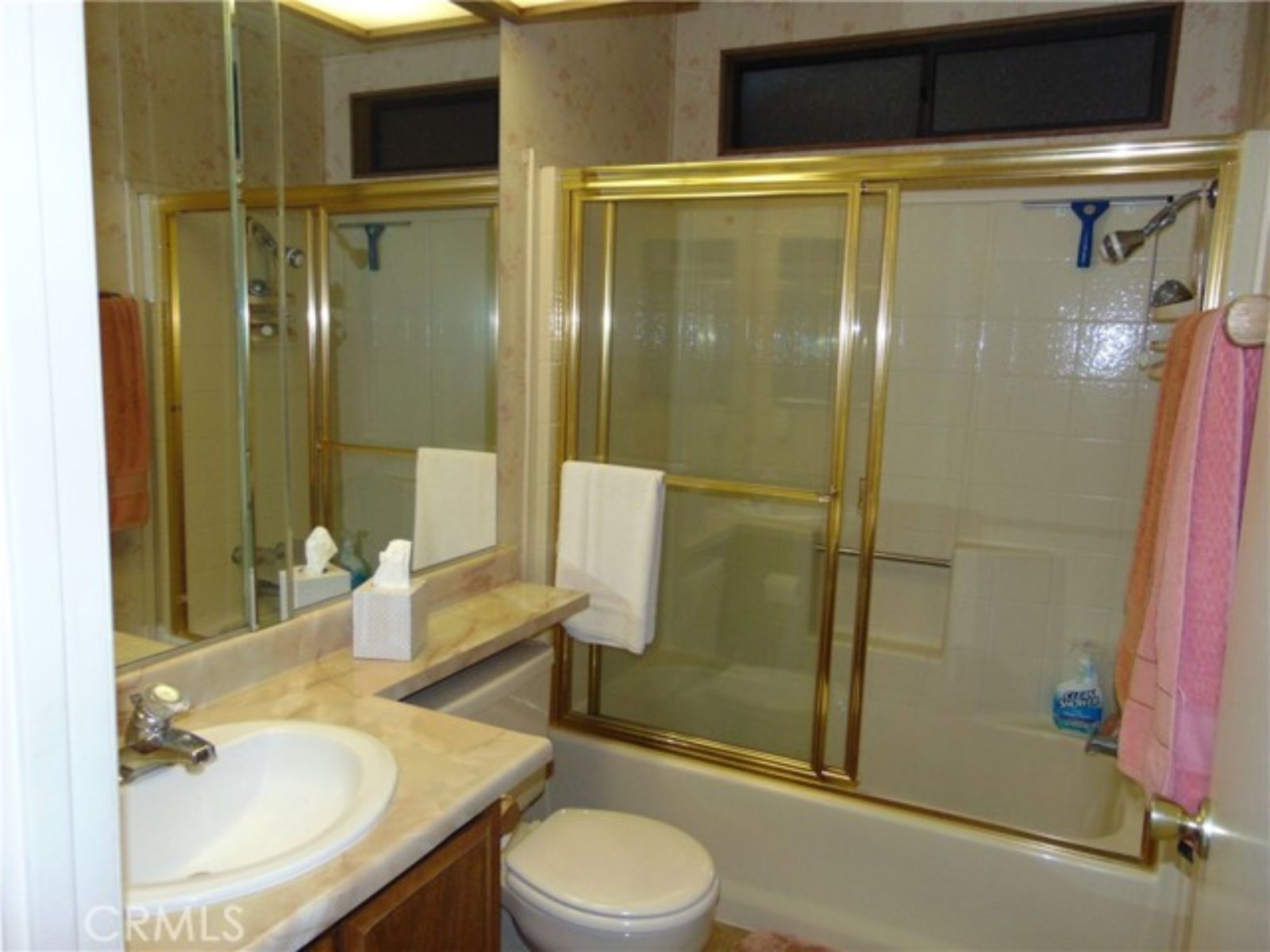 Senior Community 55+ located in one of Calimesa's most desirable community where you own the land. Home is on a 433 permanent foundation. 2 bedroom, 2 bath home. Kitchen has breakfast counter, stand alone gas range, pantry. Built in hutch in dining area. newer flooring about 4-5 yrs old. Wet bar in family room area. Bar stools are included. Ceiling fans throughout the home. Dual sinks in master bath. separate shower. Covered back patio. A/C approximately 2 years old. roof approximately 10 years and Hot water heater about 5 years. Oversized garage. covered carport parking too, fenced yard. Refrigerator, Range, washer and dryer included. Area in Laundry room for a second refrigerator or upright freezer. HOA includes salt water pool and spa, metered water, and sewer also included, club house, banquet room, billiard table, ping pong table, exercise equipment, library, and enjoyment of greenbelts throughout the community.
