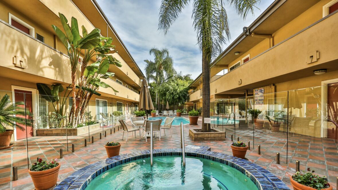 Centrally located in the heart of West Hollywood, this resort like living building offers the perfect California lifestyle with an amazing pool / spa area including a barbecue and outdoor dining area. The living space is filled with natural light and a view of the lush greens & pool area. The oversized window has a privacy coat so you can enjoy the view while enjoying your privacy. The open kitchen offers great counter space, Frigidaire professional equipment, stainless steel deep sinks, multifunctional faucet and Insinkerator Disposal System. The en suite primary bedroom includes a bathroom with dual shower heads and dual control. Second bedroom could also be used as an office with a full bathroom just across the hall. There is imported tile flooring in common rooms and oakwood hardwood in the bedrooms. The community laundry room is conveniently located on the same floor. Walking distance to shops, restaurants, Sunset strip and all what West Hollywood has to offer!