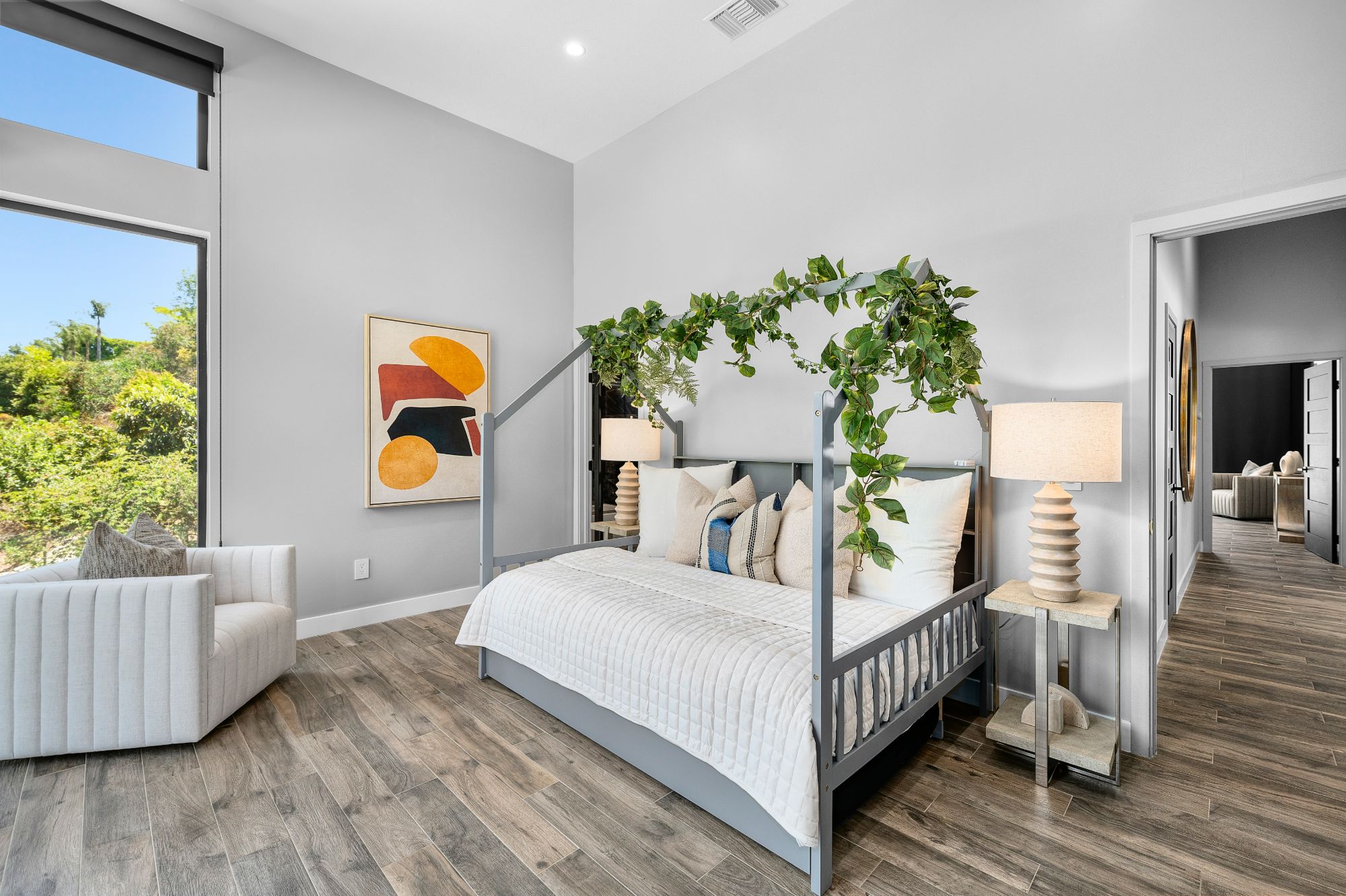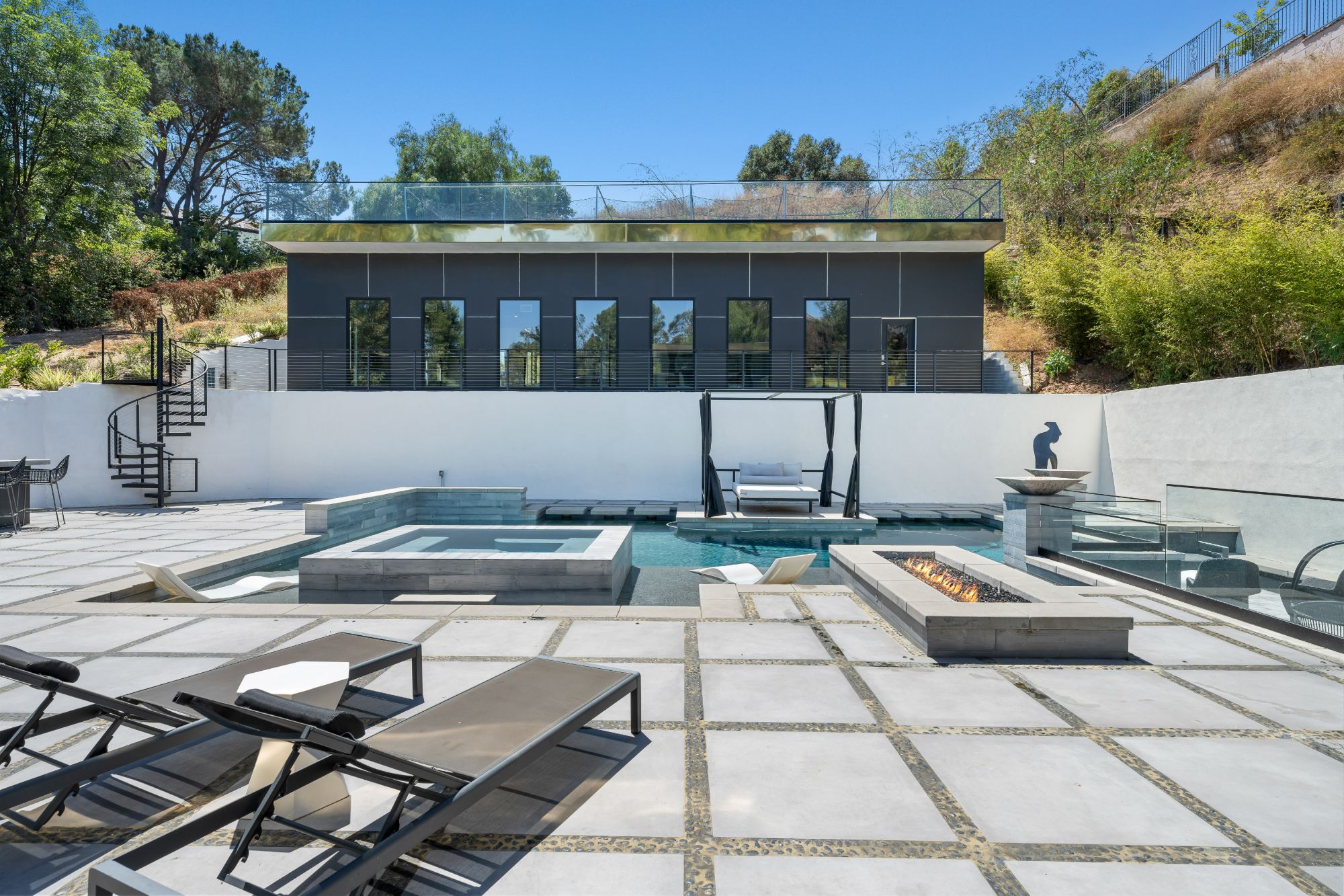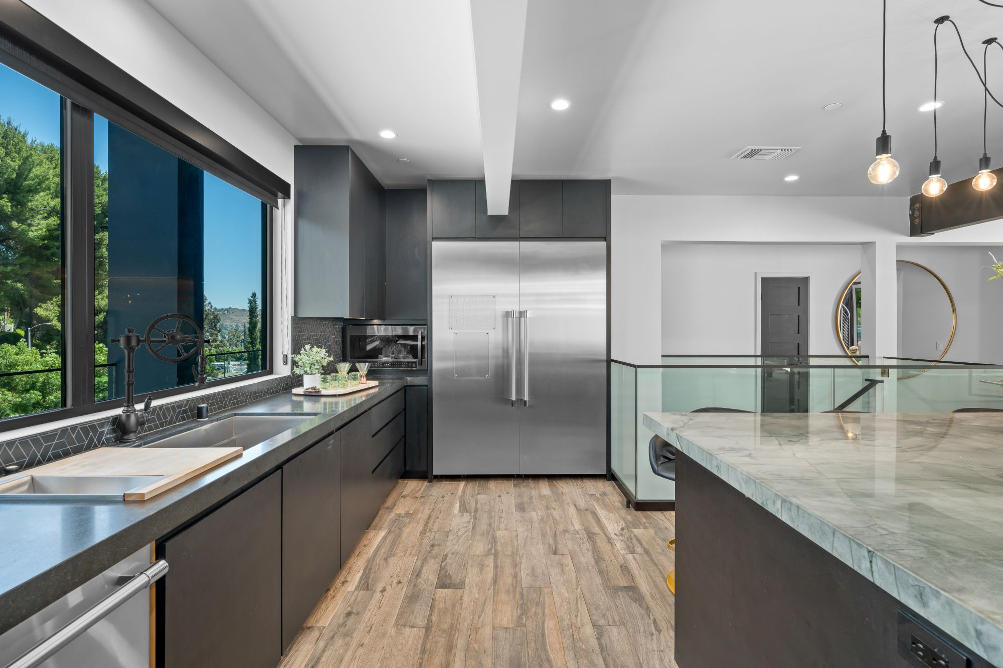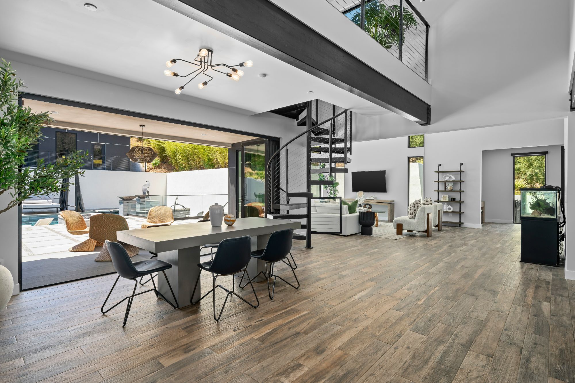 Welcome to 9701 Cannon Street, a stunning contemporary masterpiece nestled in the heart of Villa Park, a city celebrated for its small-town charm, top-rated schools, and exceptional quality of life. Spanning nearly 5,000 square feet, this meticulously designed two-story residence offers 4 bedrooms, 6 bathrooms, and an additional detached structure featuring a fully equipped gym. Designed for quintessential California indoor-outdoor living, the main living space seamlessly blends luxury and functionality. The chef's kitchen is a true showpiece, boasting an oversized quartz-topped island, a 60-inch range oven, and a premium Thermador refrigerator, making it a dream for culinary enthusiasts. For those who love to entertain, the accordion sliding glass doors open to an expansive backyard oasis, featuring a saltwater pool, spa, overflowing Baja pool, three fire pits, a sunken seating area, and a fully equipped BBQ island, perfect for hosting unforgettable gatherings. Every detail of this home exudes craftsmanship and luxury, from custom cabinetry by Derrick Wayne and sleek ceramic flooring to designer plumbing fixtures and a massive stone soaking tub. Thoughtful upgrades ensure modern convenience, including solar panels, two tankless gas water heaters for uninterrupted hot water, and a 2-inch water line for exceptional water pressure. The three-car garage is equally impressive, featuring a walk-in safe, additional storage, and a 220V electric car charger. Tucked away in one of Orange County's best-kept secrets, Villa Park offers a peaceful, close-knit community with easy access to major cities, blending tranquility with convenience.