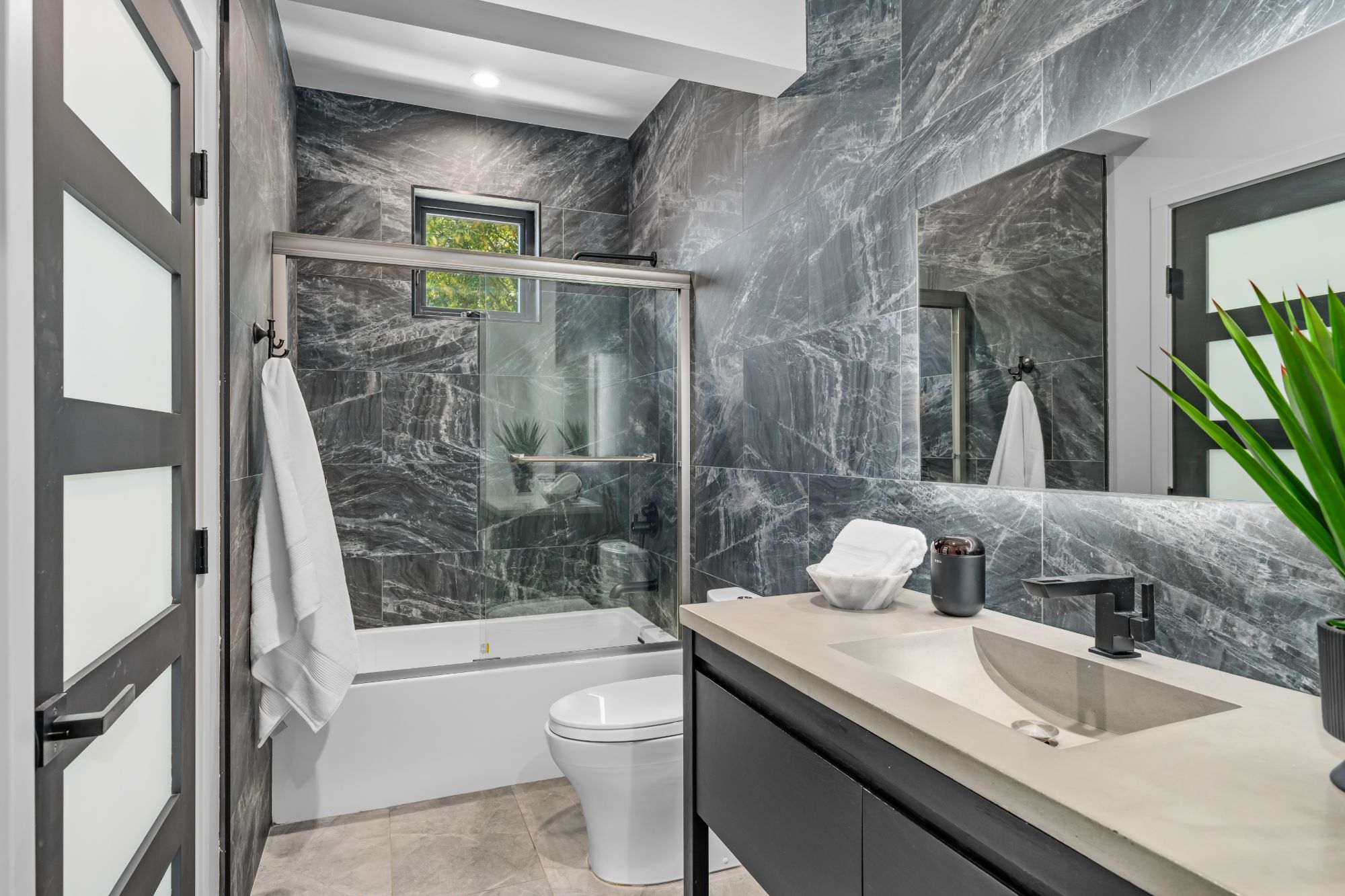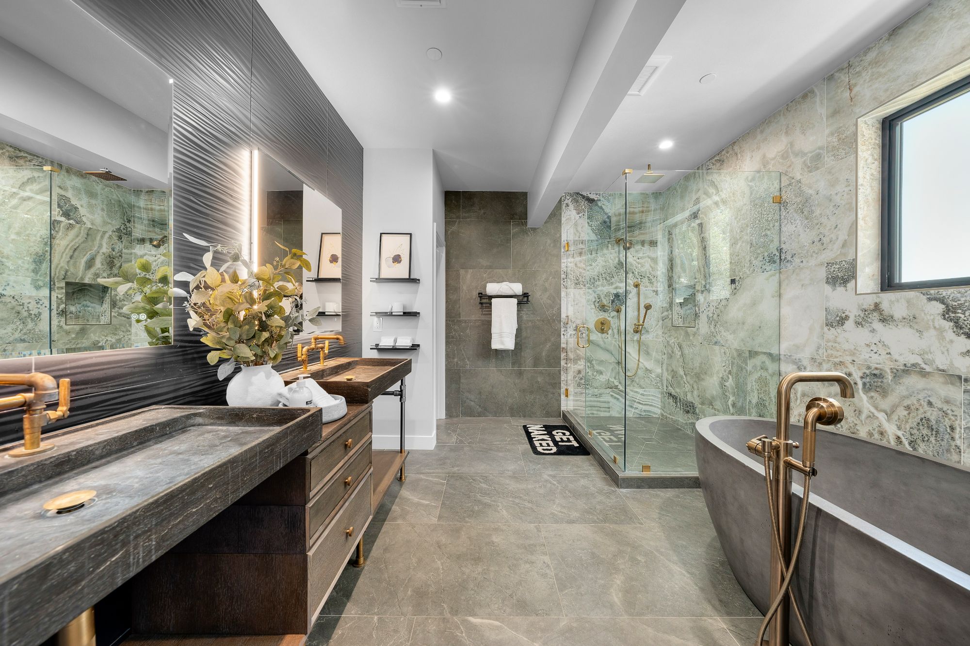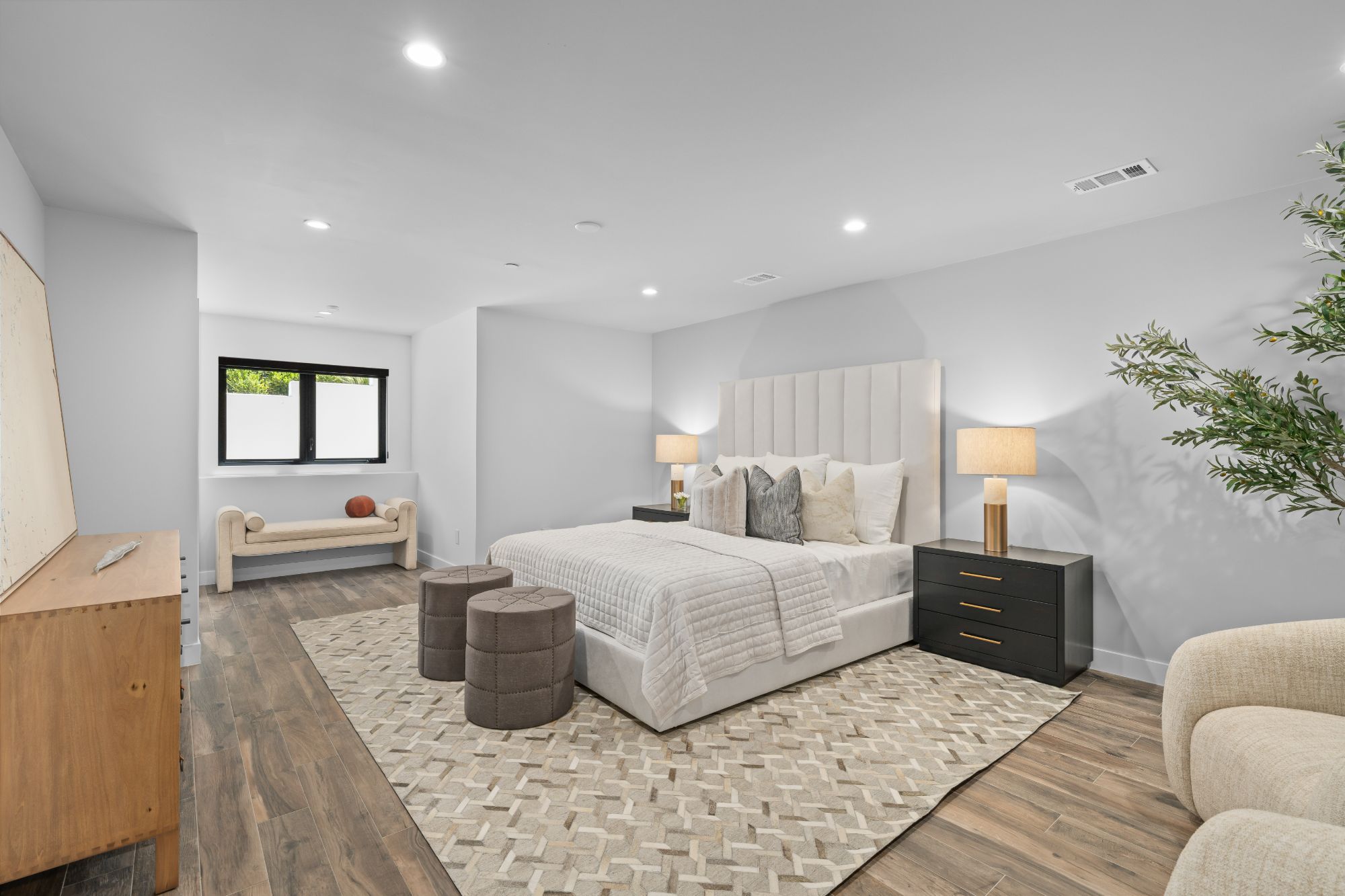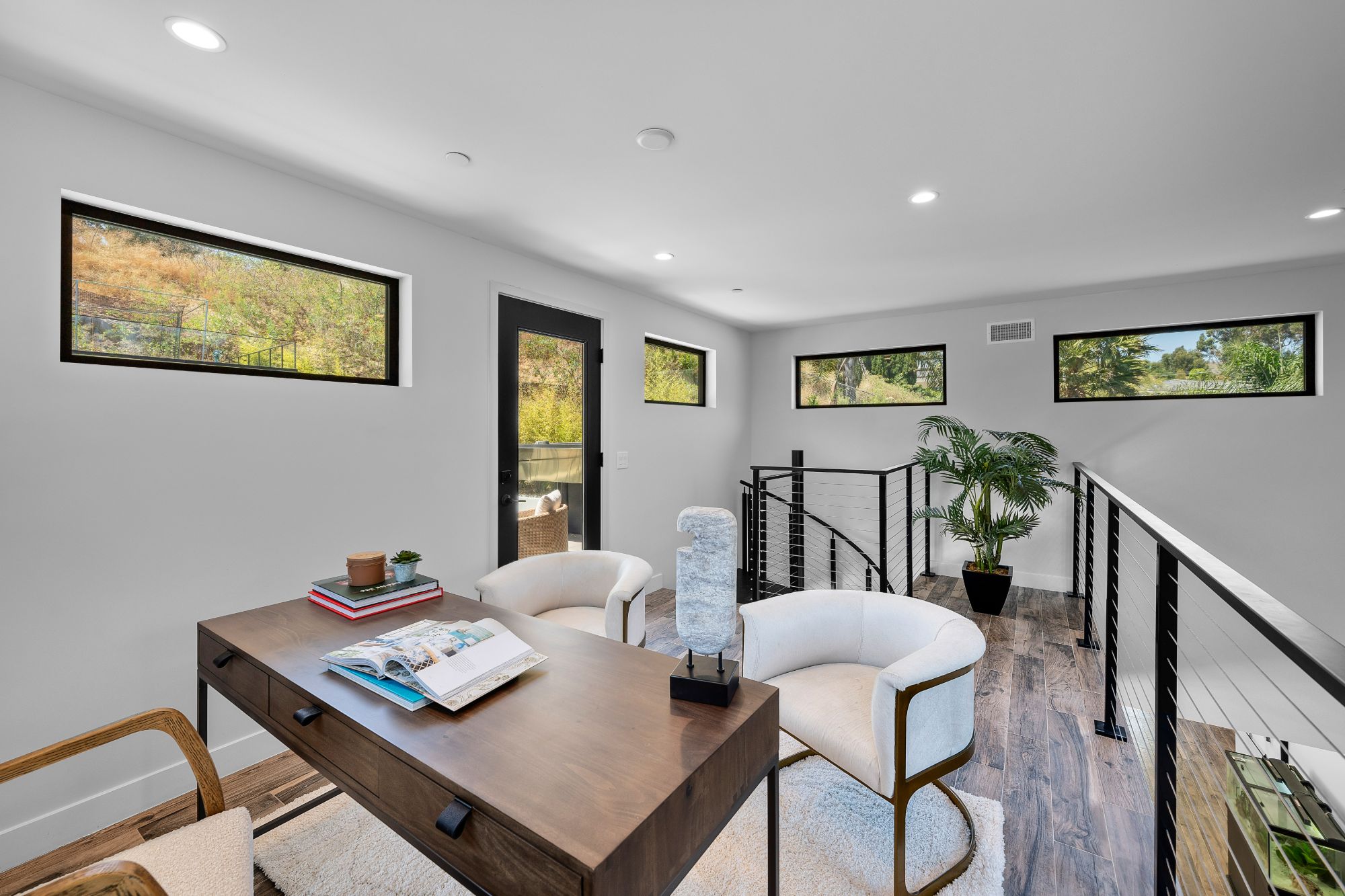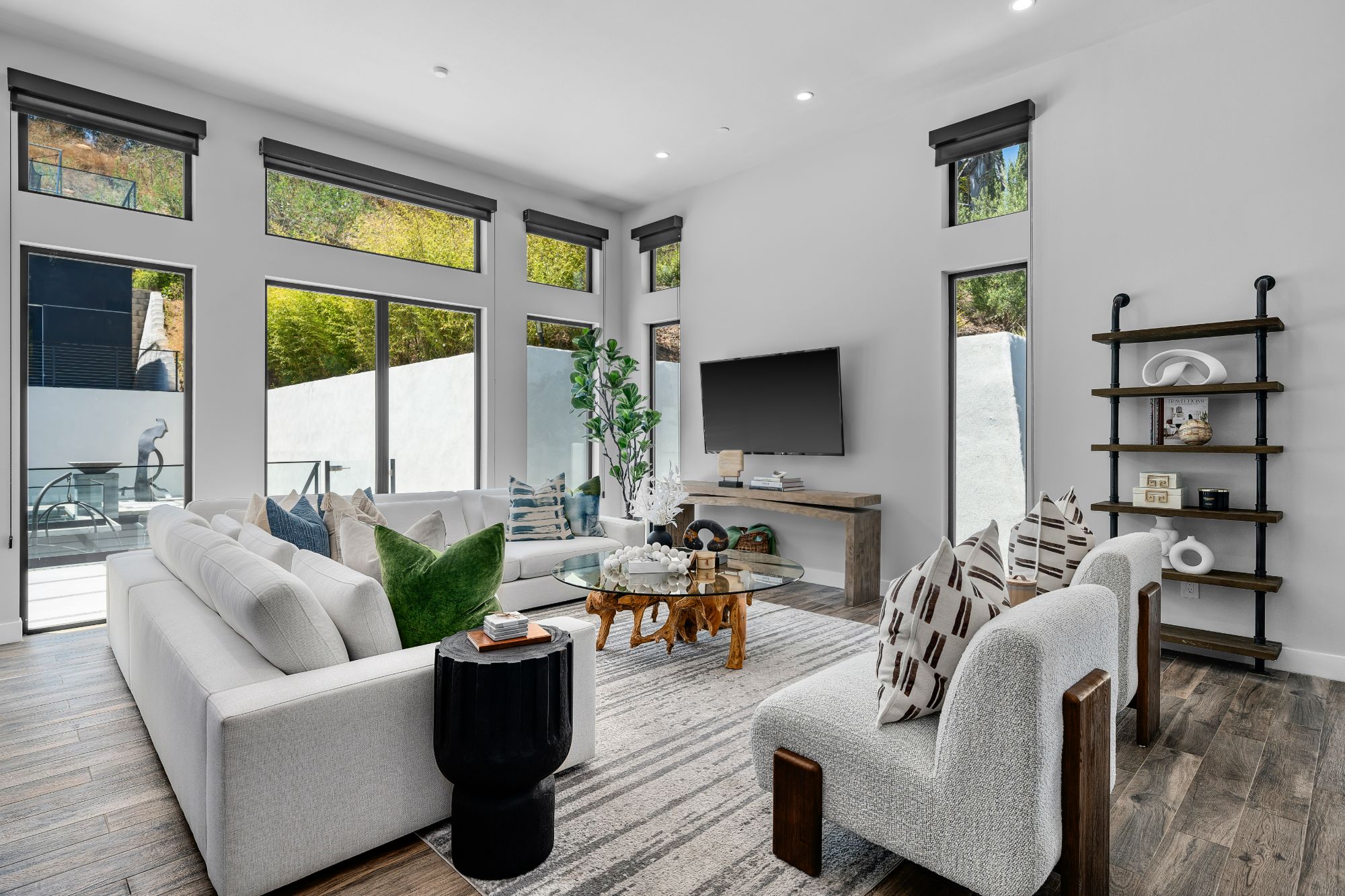 Welcome to 9701 Cannon Street, a stunning contemporary masterpiece nestled in the heart of Villa Park, a city celebrated for its small-town charm, top-rated schools, and exceptional quality of life. Spanning nearly 5,000 square feet, this meticulously designed two-story residence offers 4 bedrooms, 6 bathrooms, and an additional detached structure featuring a fully equipped gym. Designed for quintessential California indoor-outdoor living, the main living space seamlessly blends luxury and functionality. The chef's kitchen is a true showpiece, boasting an oversized quartz-topped island, a 60-inch range oven, and a premium Thermador refrigerator, making it a dream for culinary enthusiasts. For those who love to entertain, the accordion sliding glass doors open to an expansive backyard oasis, featuring a saltwater pool, spa, overflowing Baja pool, three fire pits, a sunken seating area, and a fully equipped BBQ island, perfect for hosting unforgettable gatherings. Every detail of this home exudes craftsmanship and luxury, from custom cabinetry by Derrick Wayne and sleek ceramic flooring to designer plumbing fixtures and a massive stone soaking tub. Thoughtful upgrades ensure modern convenience, including solar panels, two tankless gas water heaters for uninterrupted hot water, and a 2-inch water line for exceptional water pressure. The three-car garage is equally impressive, featuring a walk-in safe, additional storage, and a 220V electric car charger. Tucked away in one of Orange County's best-kept secrets, Villa Park offers a peaceful, close-knit community with easy access to major cities, blending tranquility with convenience.